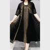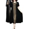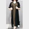 9303 Big Aimei Yiyuan 2023 Nuevo Vestido Largo de Media Manga con Cuello Redondo Adelgazante de Verano para Mujer Moda para Mujer Adelgazante Industria Pesada Perforación en Caliente