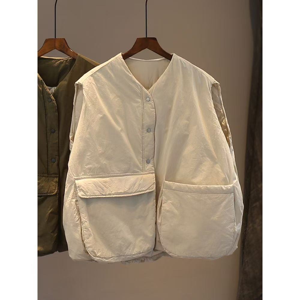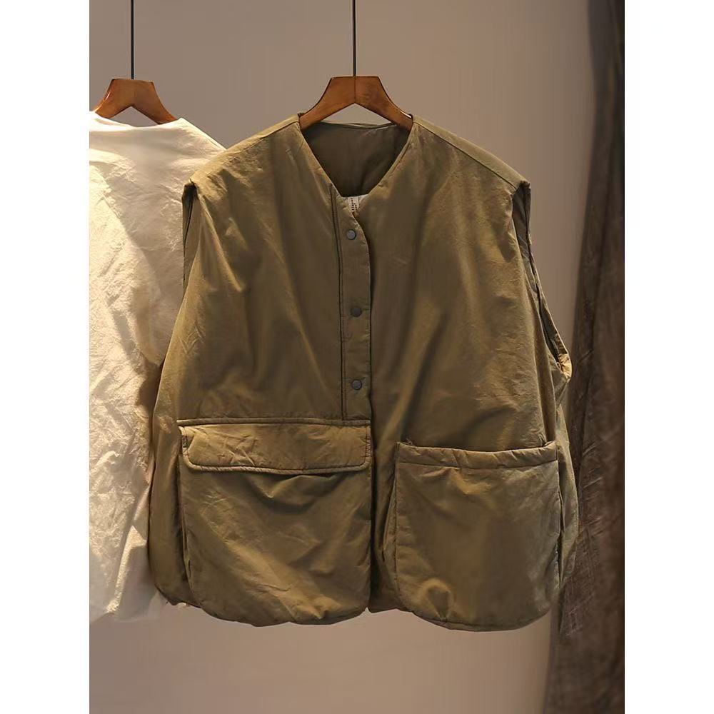 Literario Talla Grande Sencillo Cómodo Grueso Bolsillo Grande Chaleco Acolchado de Algodón Chaqueta sin Mangas Invierno para Mujer Casual Chaqueta sin Mangas