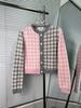 Suéter cárdigan de punto para mujer Tb Directo de Fábrica de Alta Calidad, Nuevo para Primavera y Otoño, a Cuadros Contrastantes, Cuello Redondo, Manga Larga, Cinco Botones