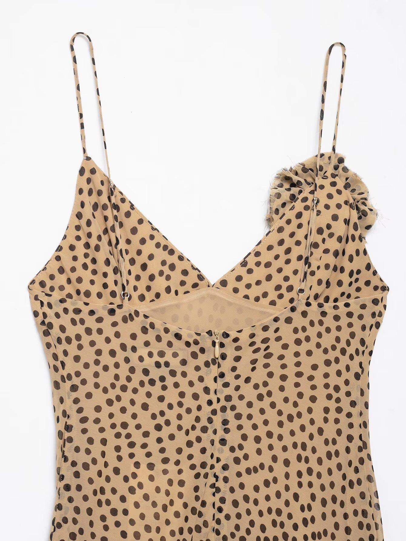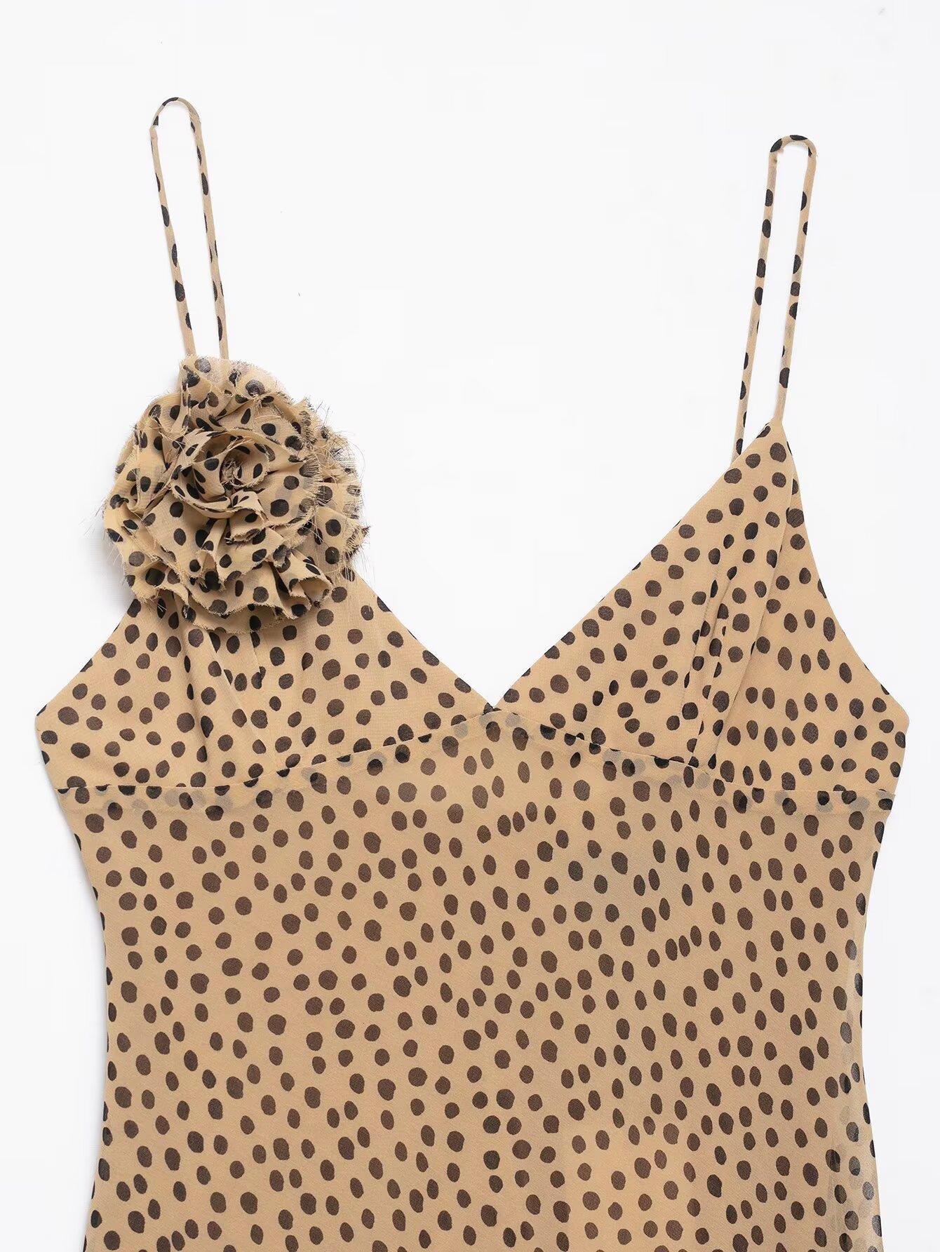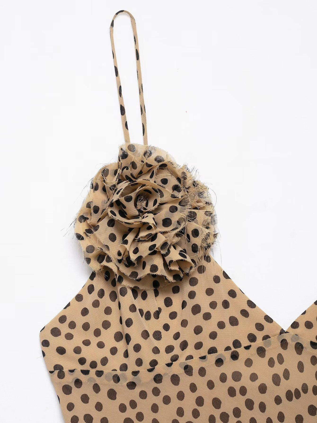Exportación Transfronteriza Ropa de Mujer 2025 Verano Estilo Europeo y Americano Vestido de Tirantes sin Espalda Decorado con Flores de Lunares para Mujer A36526F