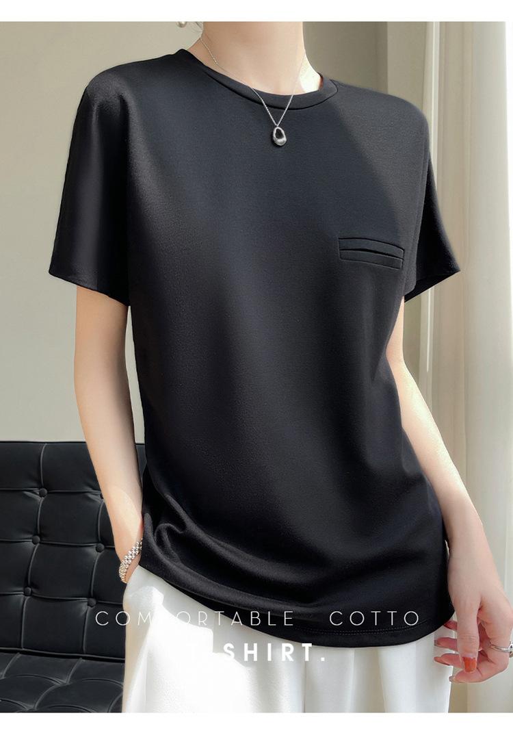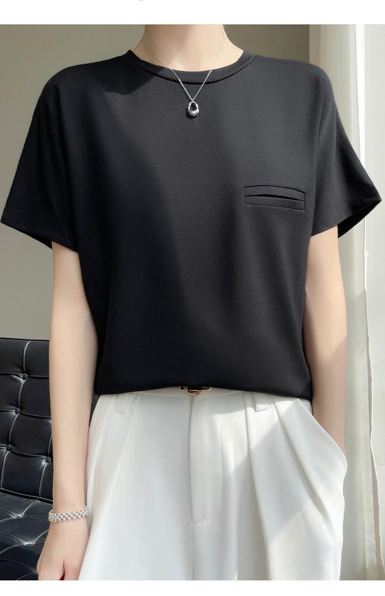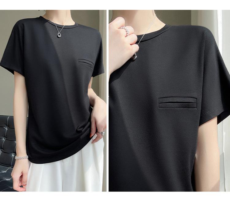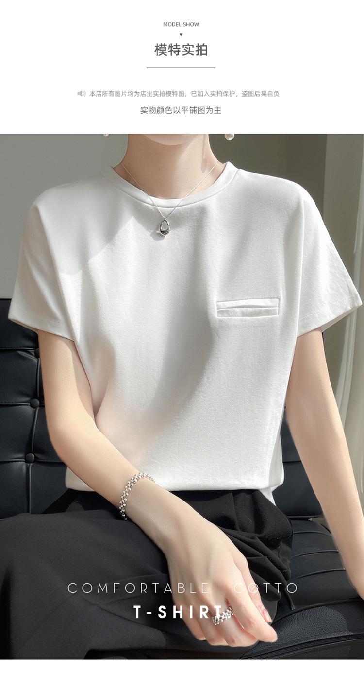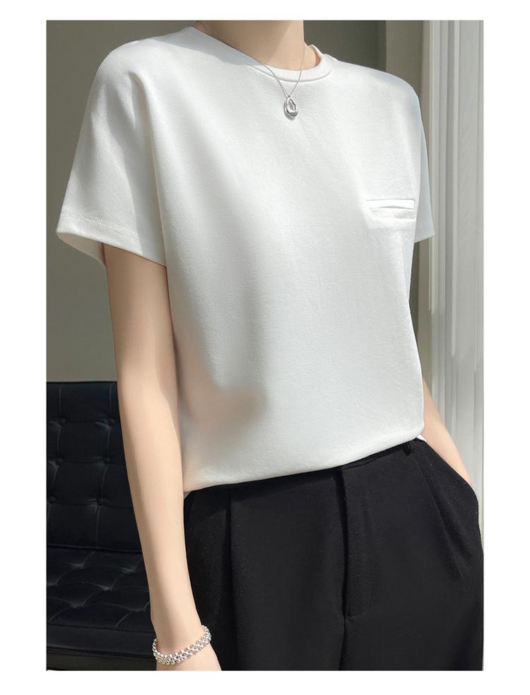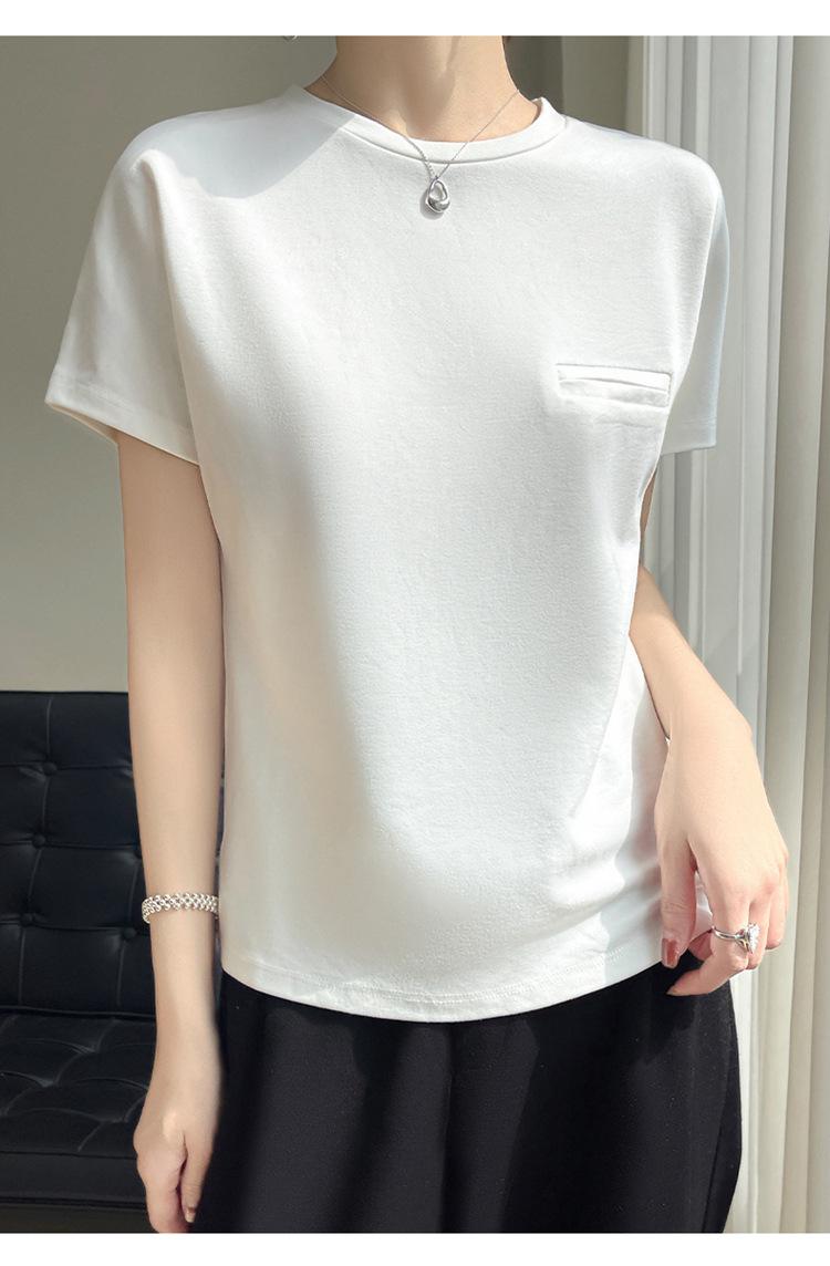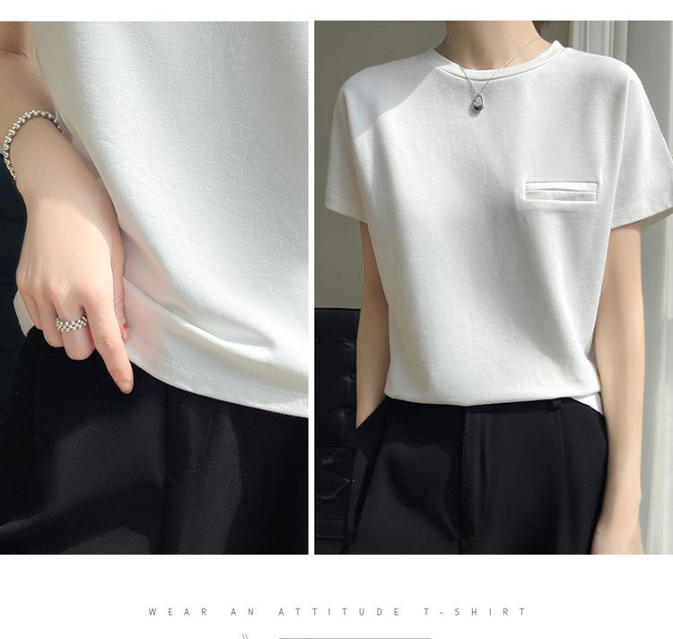 Playera blanca manga corta primavera y verano 2024 nueva algodón puro cuello redondo sentido del diseño nicho ancho de hombros top suelto para mujer
