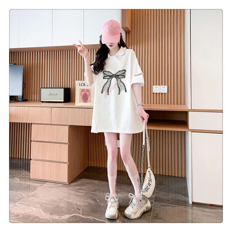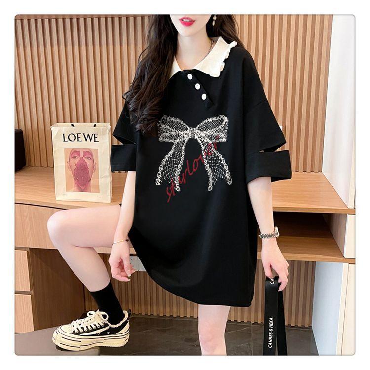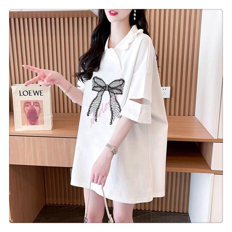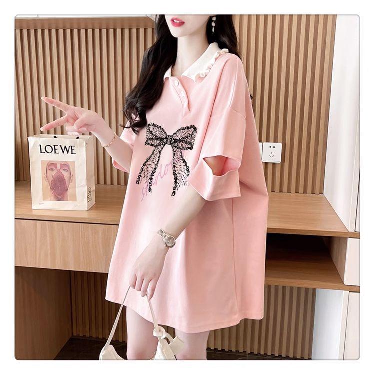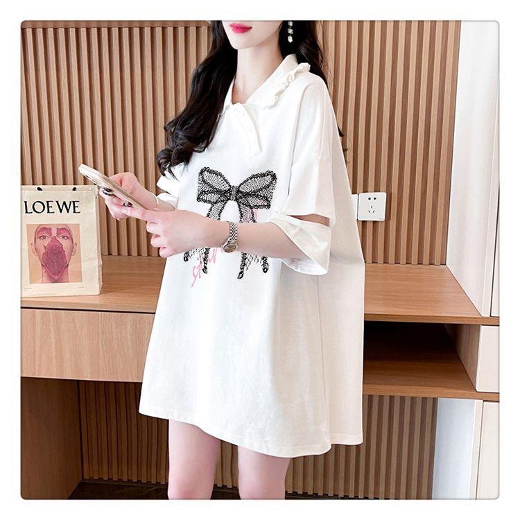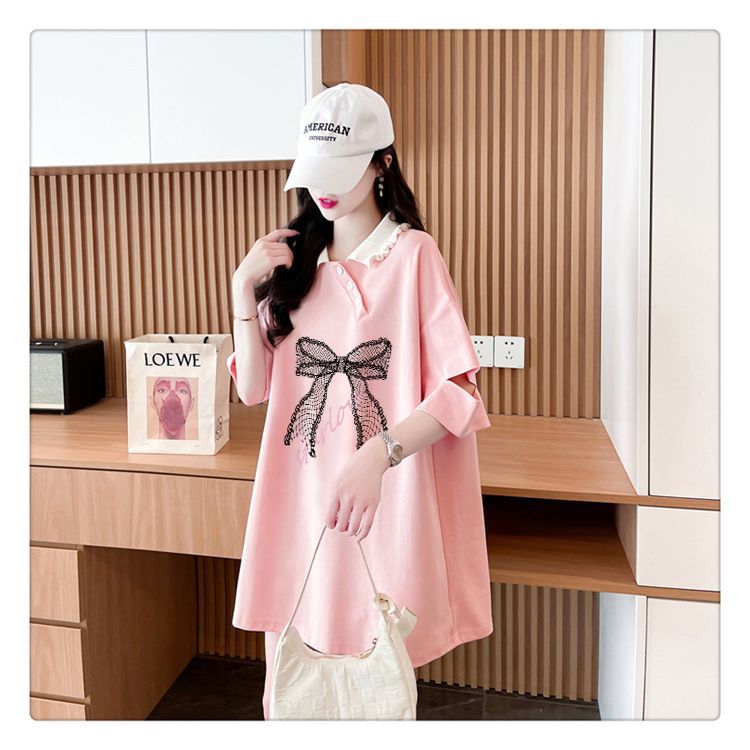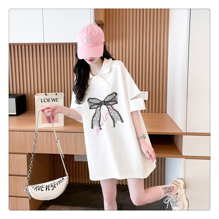Camiseta de largo medio con cuello polo, moderna y rejuvenecedora, de manga corta para mujer, verano 2025, nuevo diseño holgado, top versátil