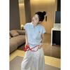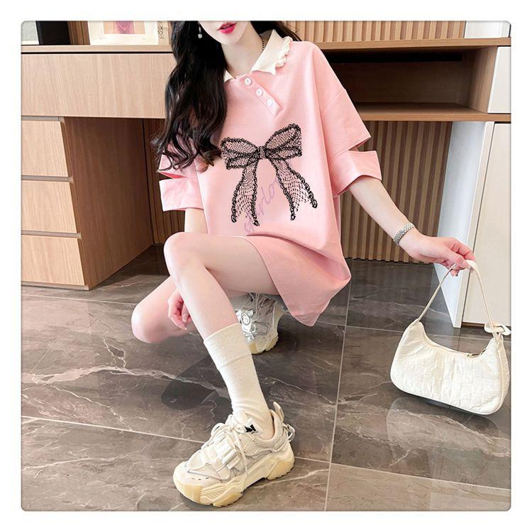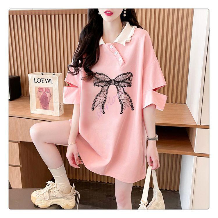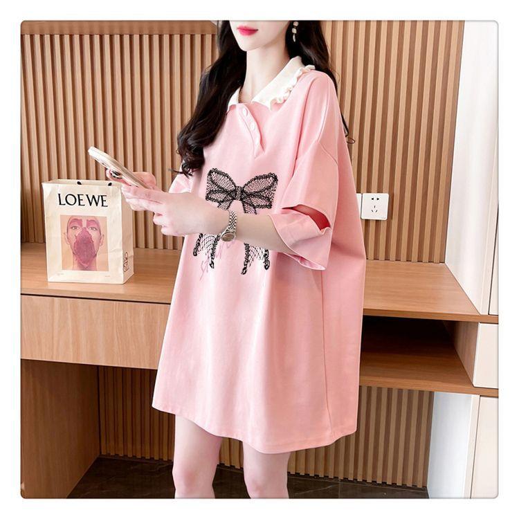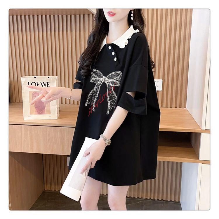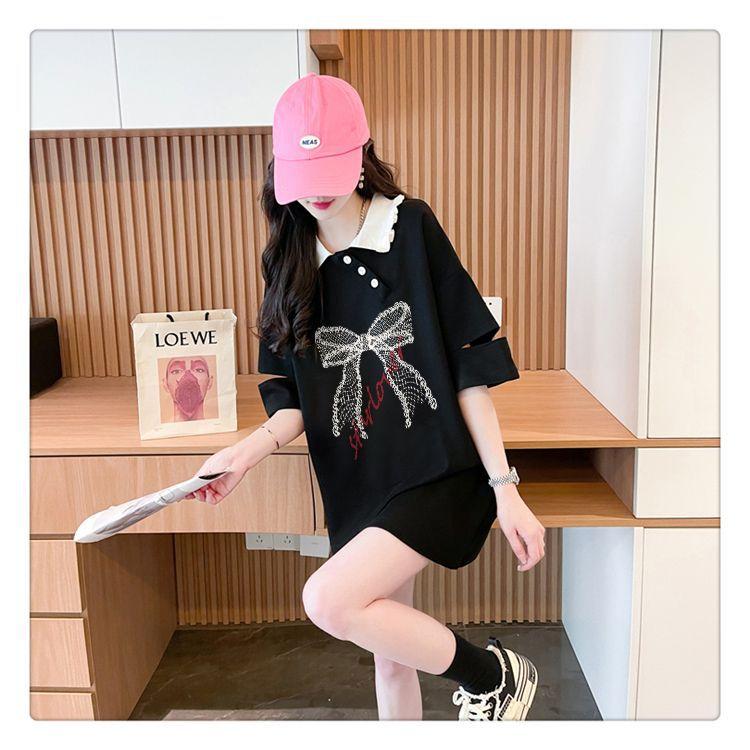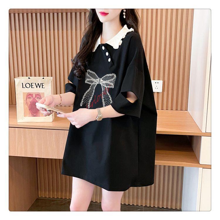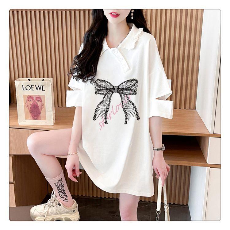 Camiseta de largo medio con cuello polo, moderna y rejuvenecedora, de manga corta para mujer, verano 2025, nuevo diseño holgado, top versátil