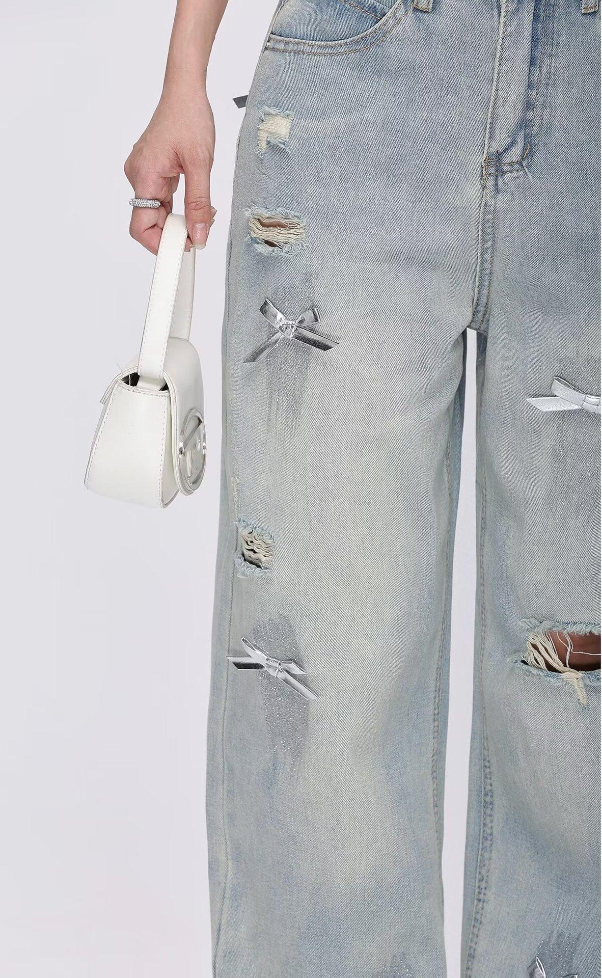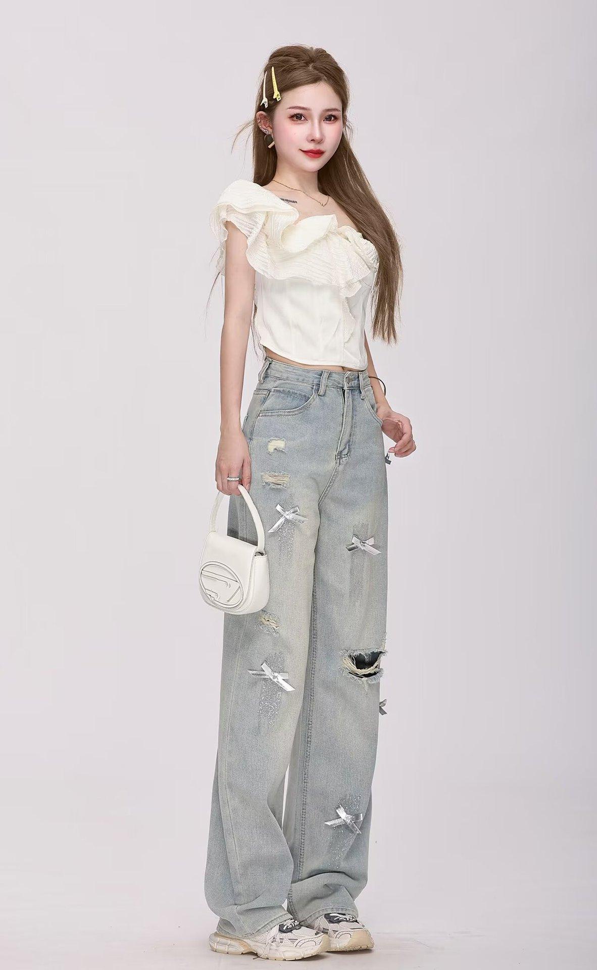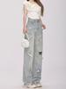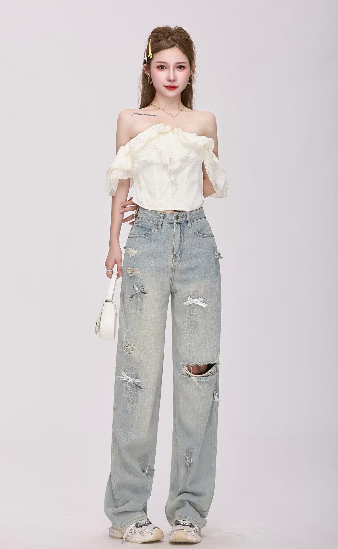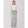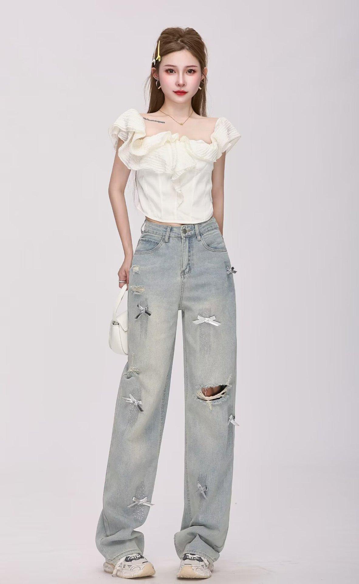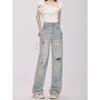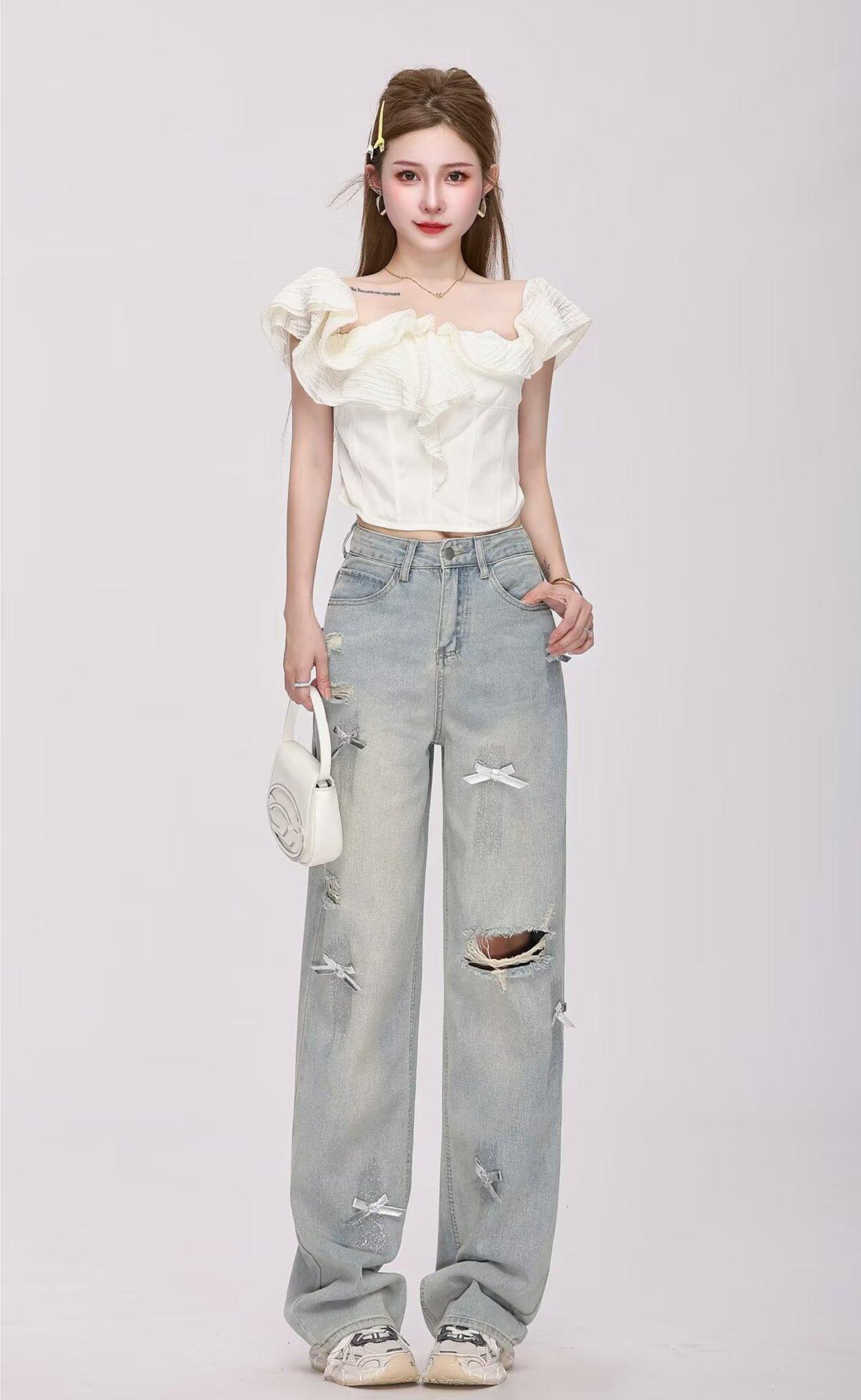 Jeans de Diseño Nicho Lazo Cintura Alta Adelgazantes para Mujer Verano Delgados Combinan con Todo Rotos Rectos