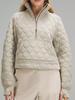 Chaqueta lulu acolchada de algodón con cuadros de diamante para mujer, ropa exterior deportiva casual, media cremallera, holgada, cuello chimenea, acolchada, corta de algodón