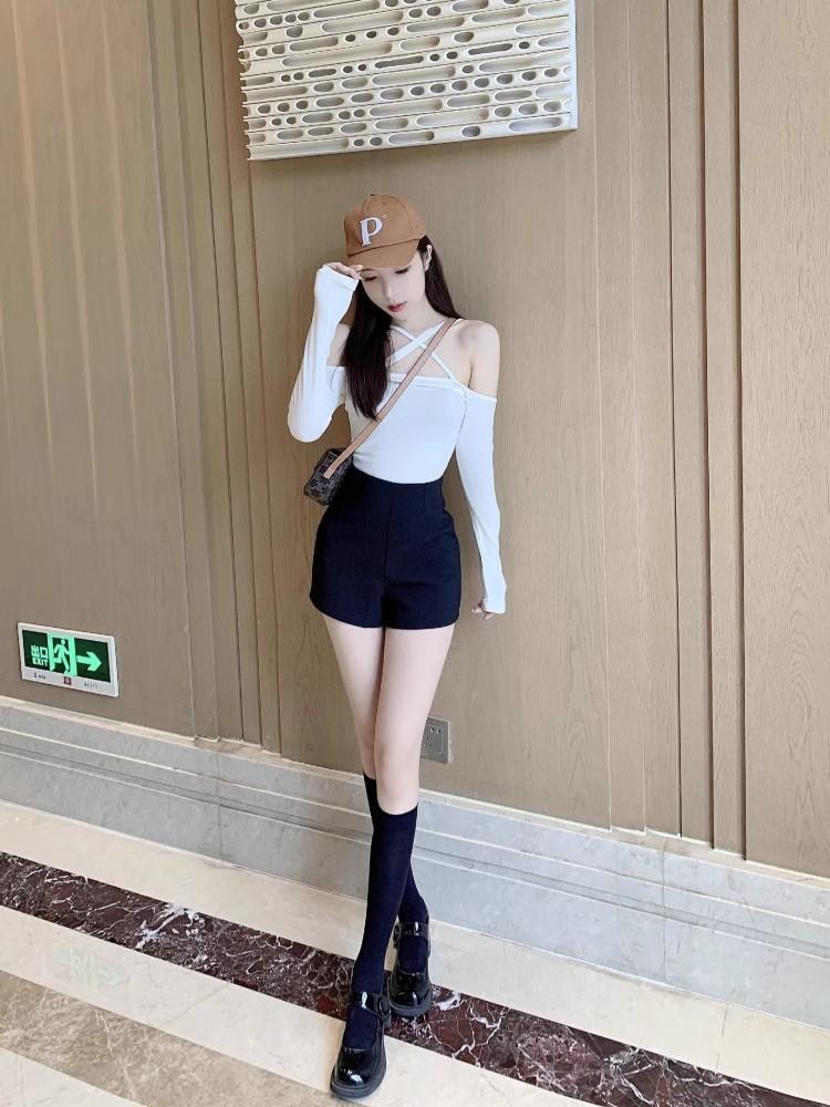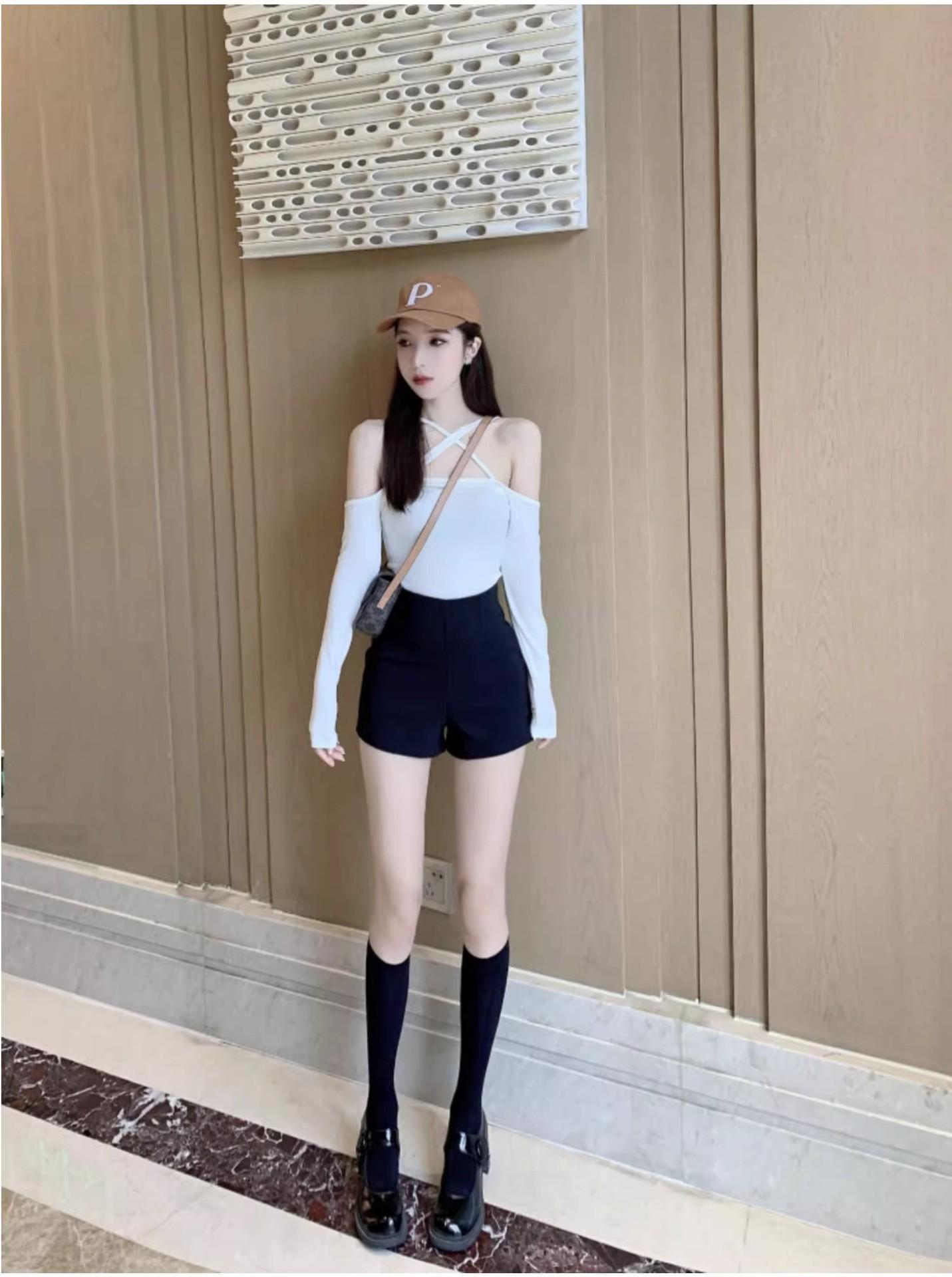 Shorts Negros para Mujer Verano 2025 Traje Ropa Exterior Ajustado Sexy Adelgazante Look Pantalones de Cadera Cintura Alta Sexy Elásticos Hot Pants