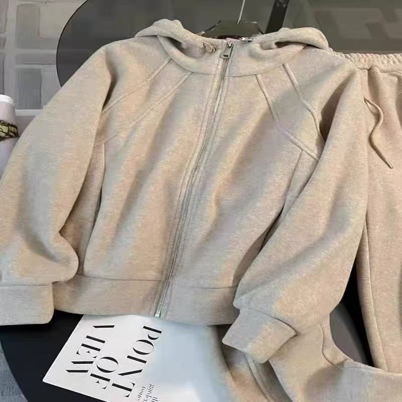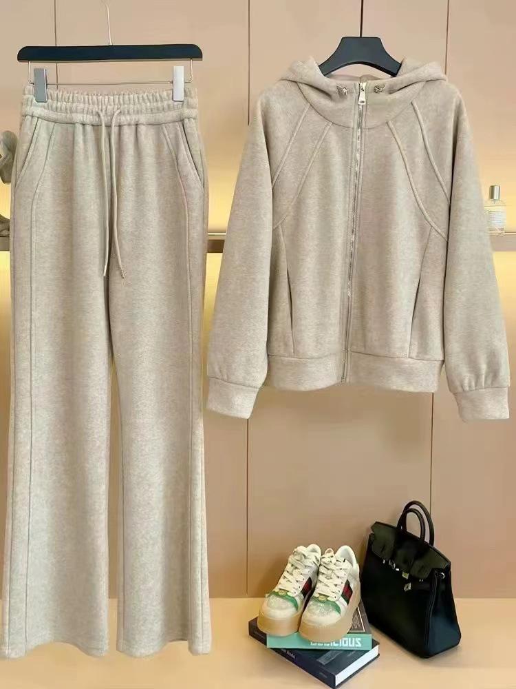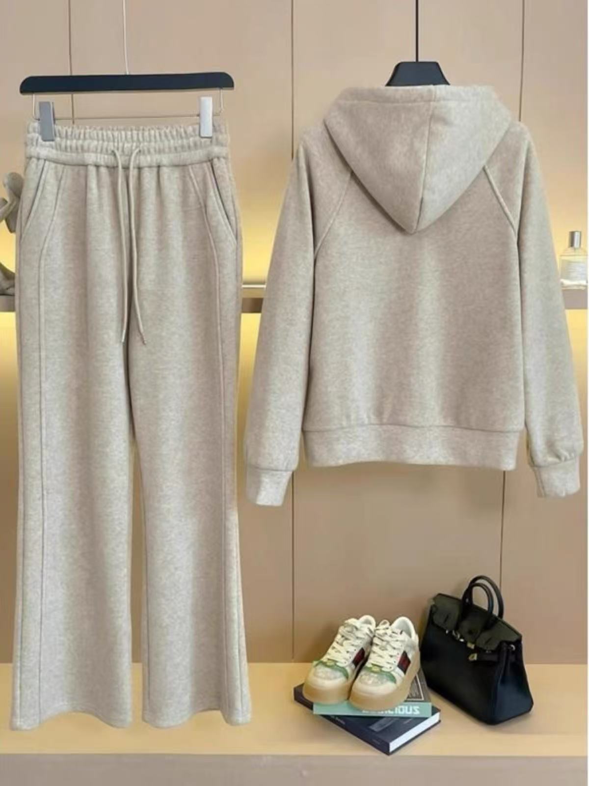 Conjunto de Sudadera con Capucha Nuevo 2025 para Mujer Estilo de Moda y Extranjero de Otoño Temprano Ropa Deportiva Casual Pantalones de Pierna Ancha de Cintura Alta Conjunto de Dos Piezas