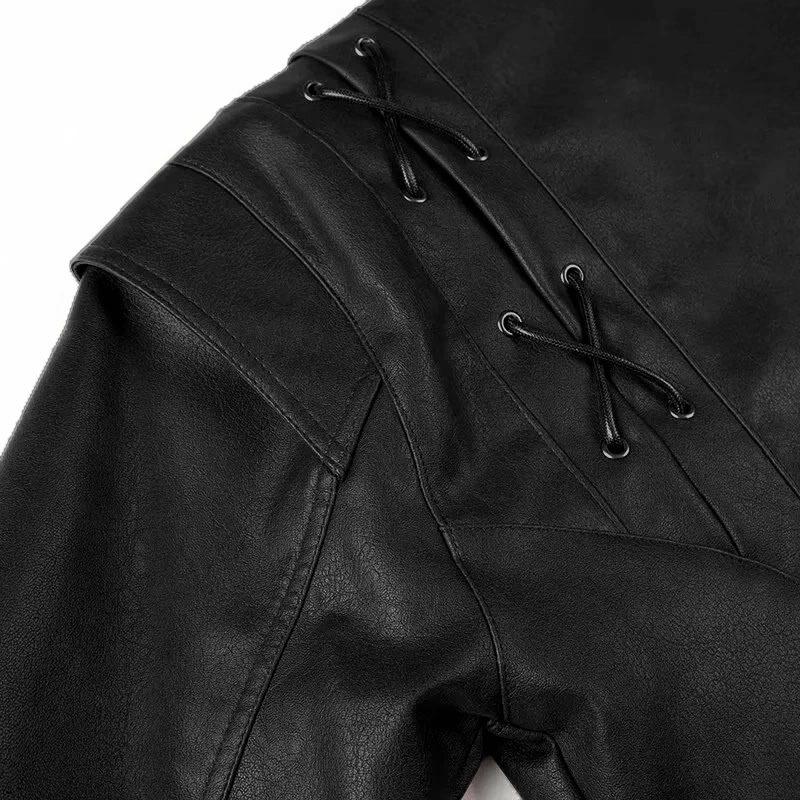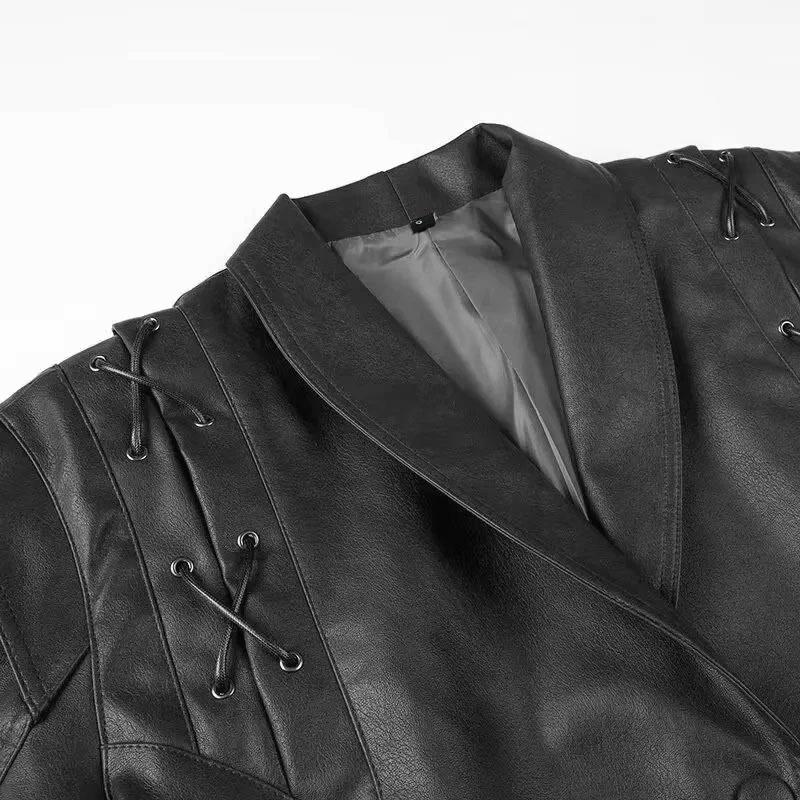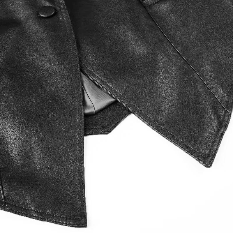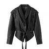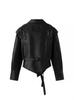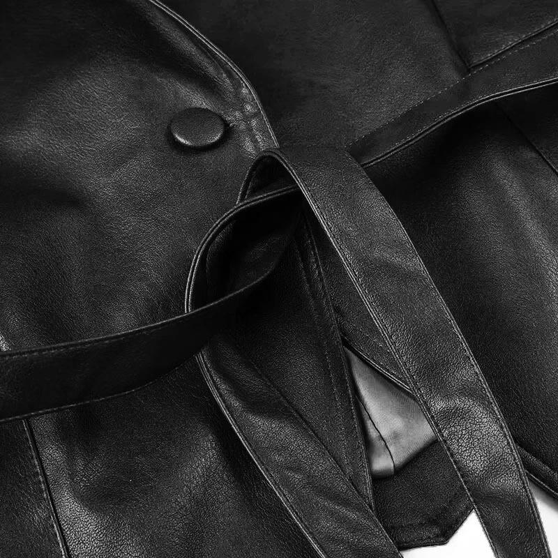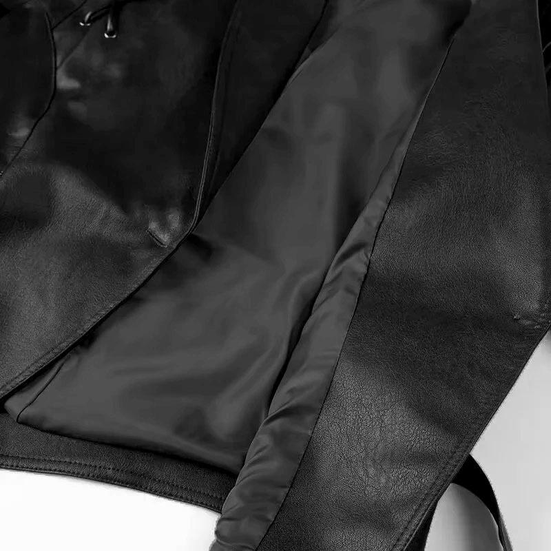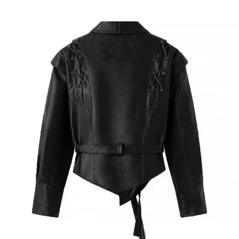 Chaqueta de cuero PU para mujer transfronteriza otoño/invierno cuello vuelto cinturón ajustable abrigo entallado comercio exterior negro chaqueta de motociclista venta al por mayor