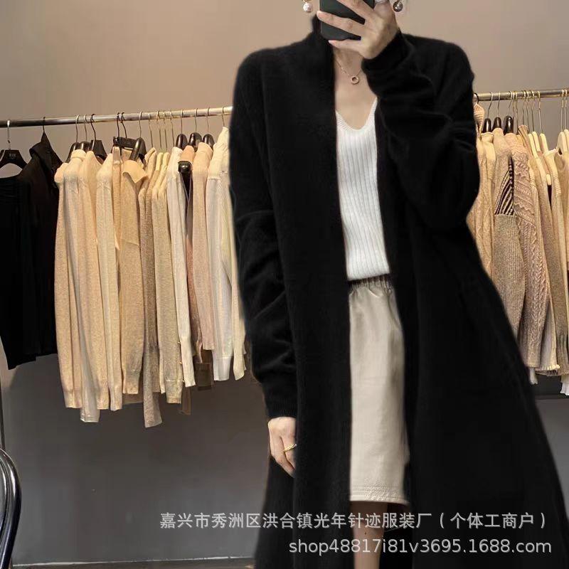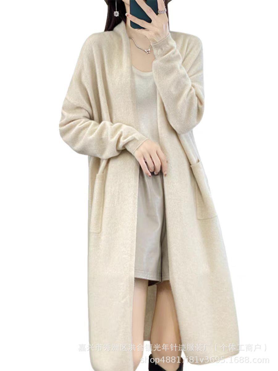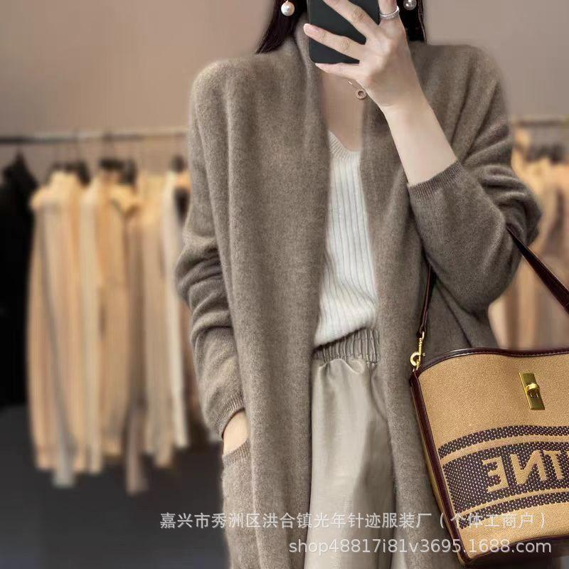 Otoño e Invierno Nuevo Cárdigan Tejido con Cuello en V para Mujer de Longitud Media Holgado Casual Estilo Exterior Perezoso Chal Top Chaqueta