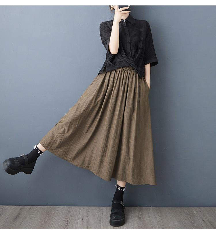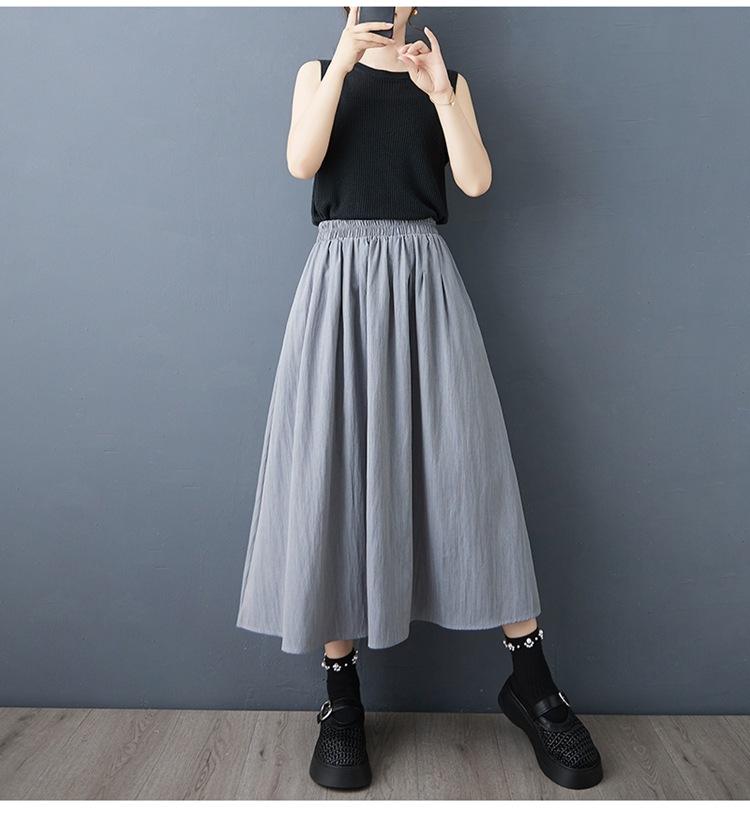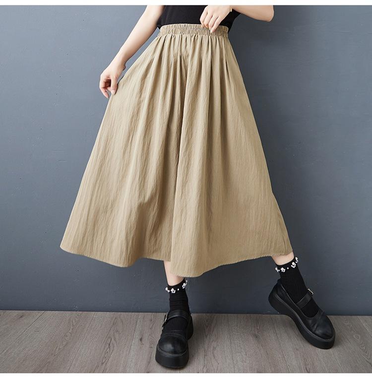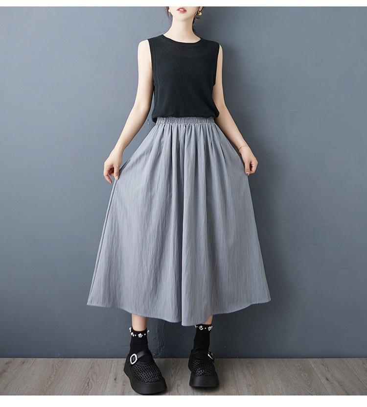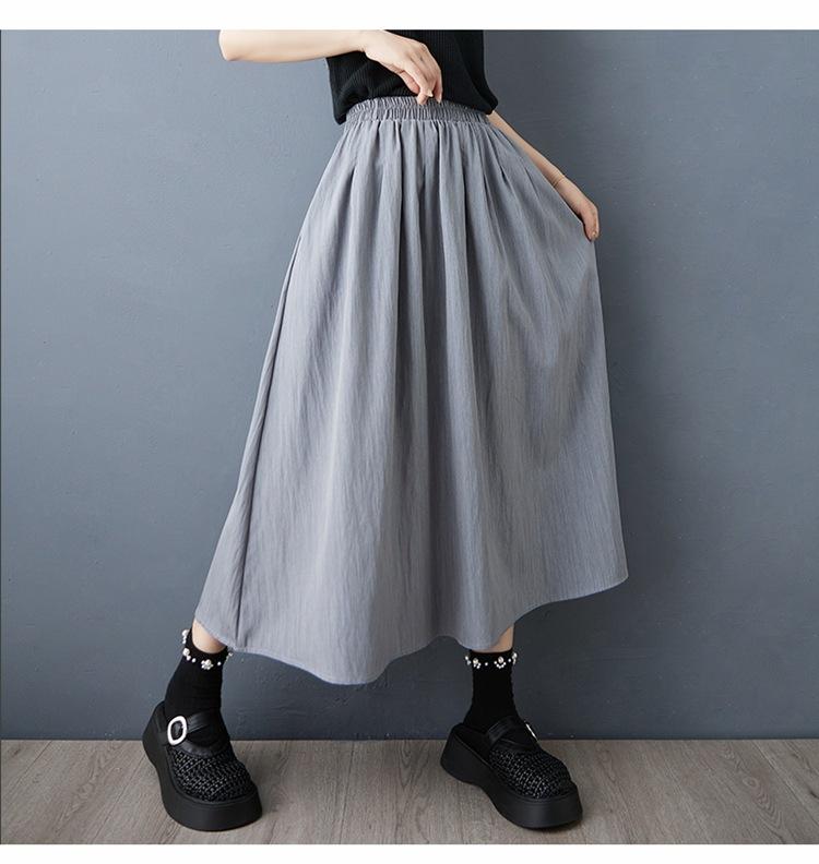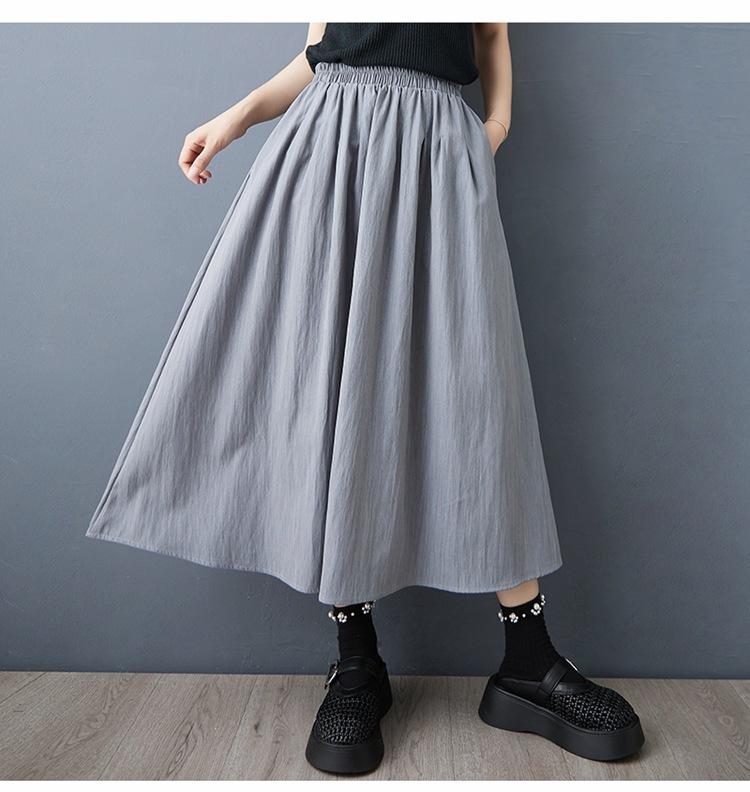 2025 Verano Nuevo Falda Artística Midi Color Sólido Suelta Cintura Alta Falda de Vuelo Grande Falda Delgada A-line