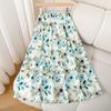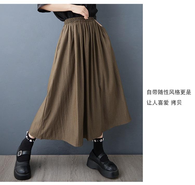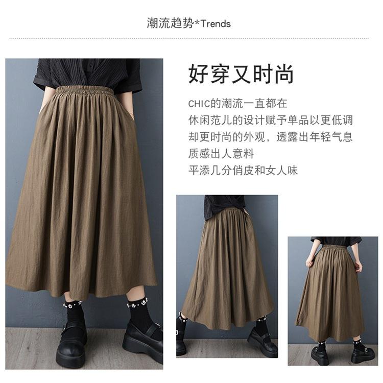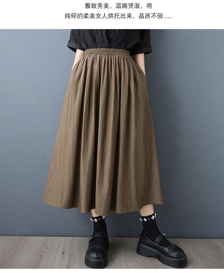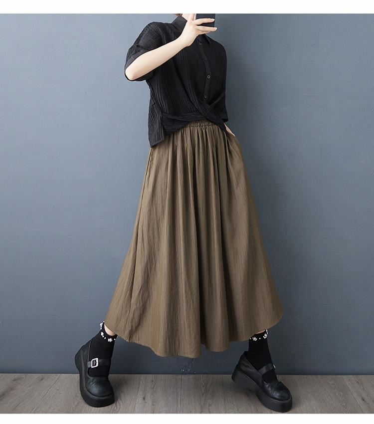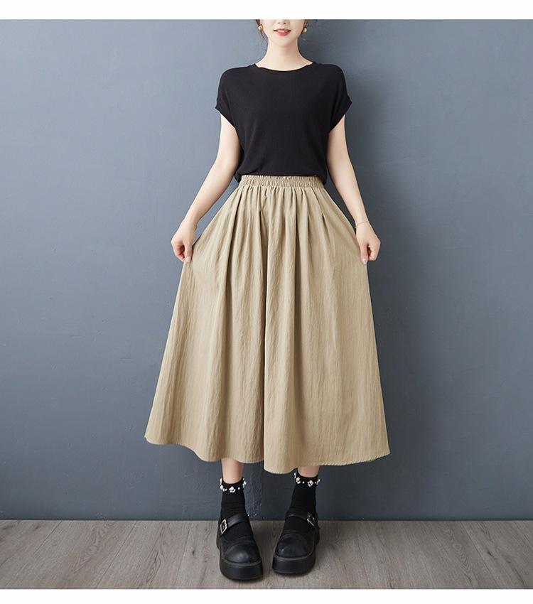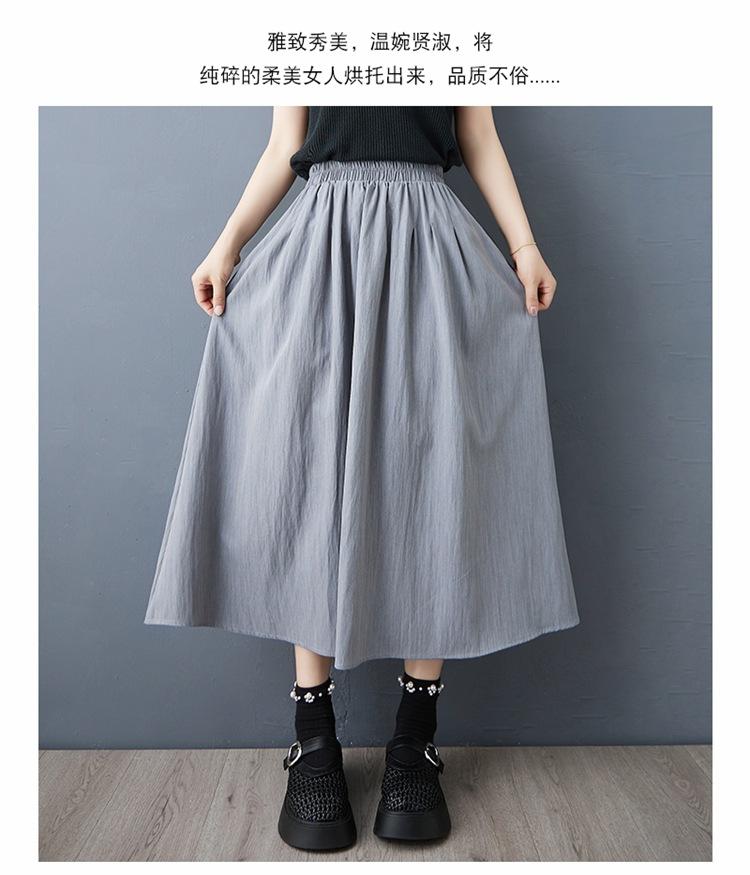 2025 Verano Nuevo Falda Artística Midi Color Sólido Suelta Cintura Alta Falda de Vuelo Grande Falda Delgada A-line