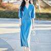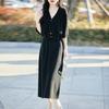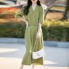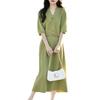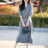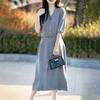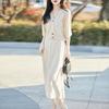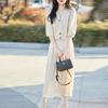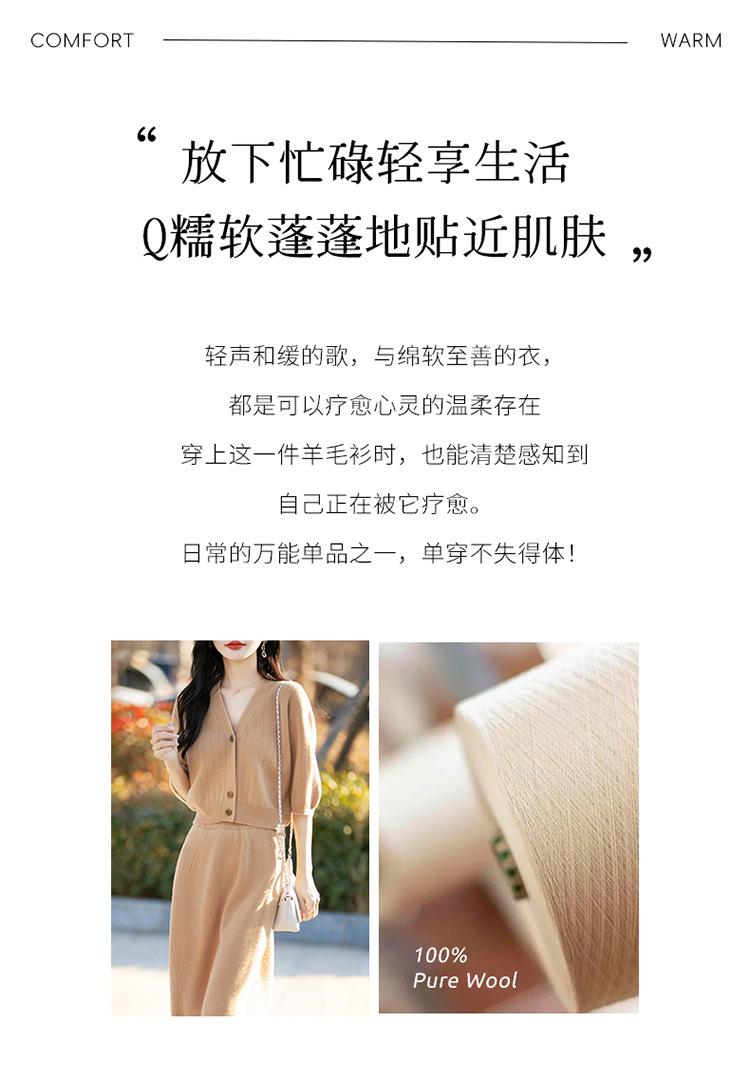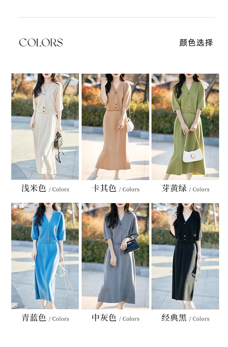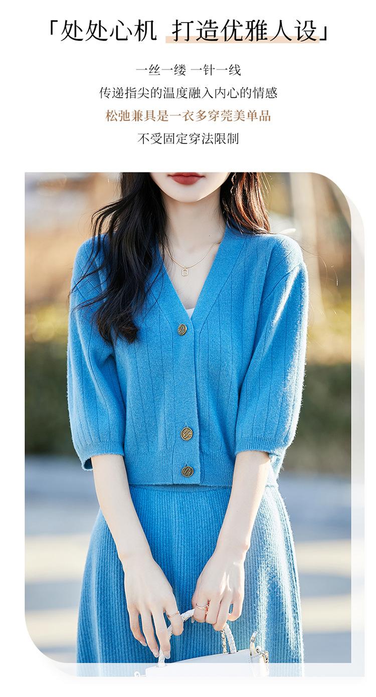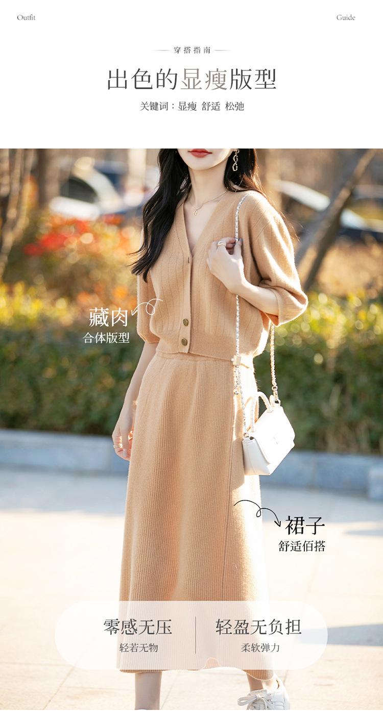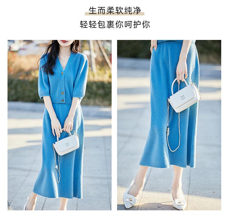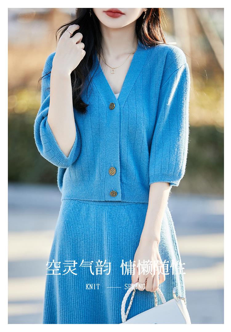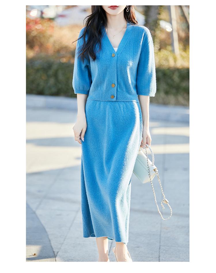 Cárdigan de Punto de Lana Pura con Cuello en V de Primavera 2025, Manga Media, Color Sólido, Falda de Cintura Alta, Conjunto de Dos Piezas para Mujer