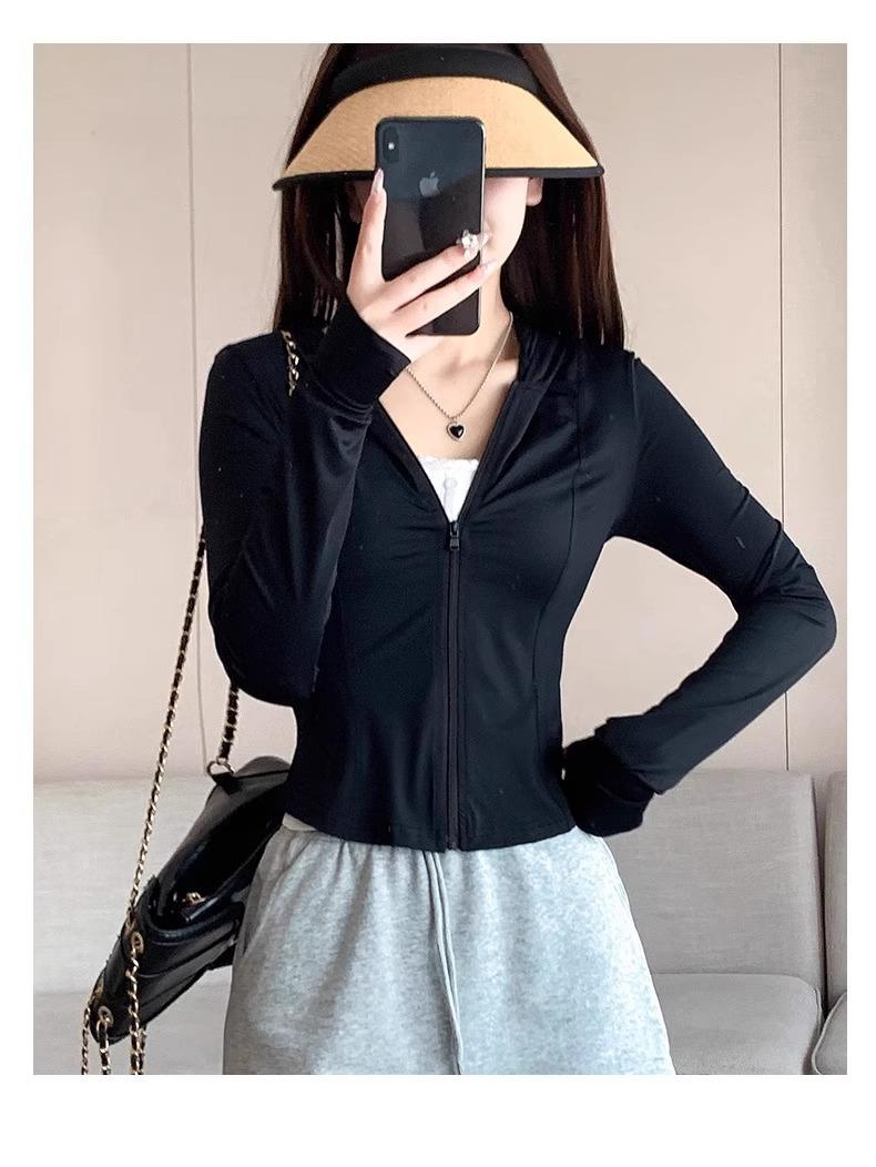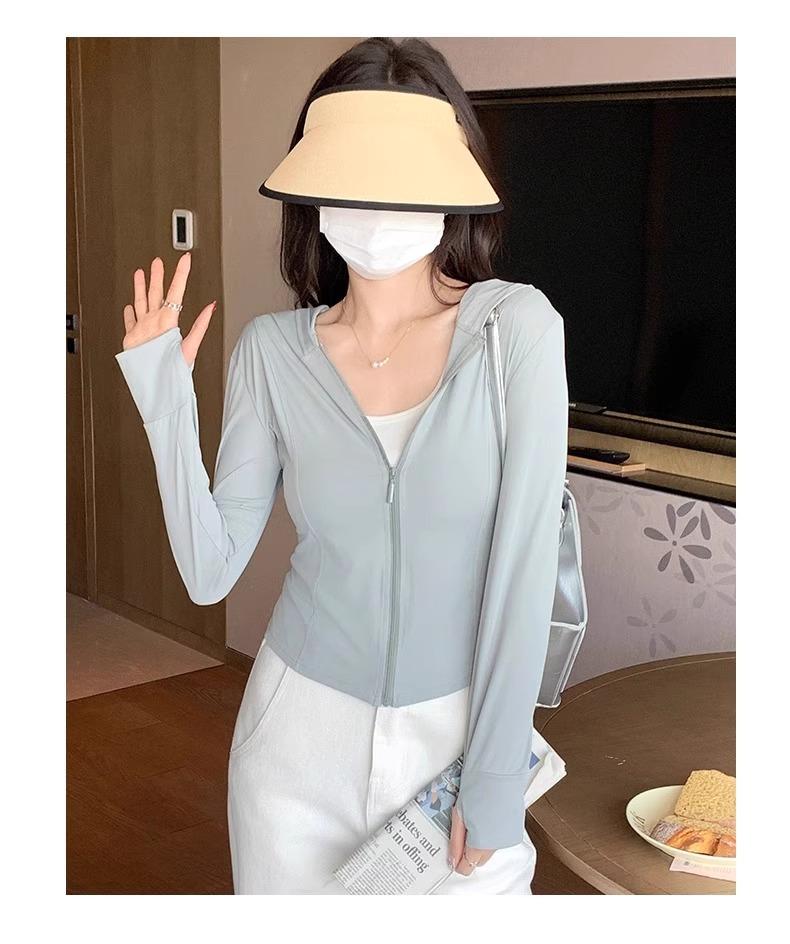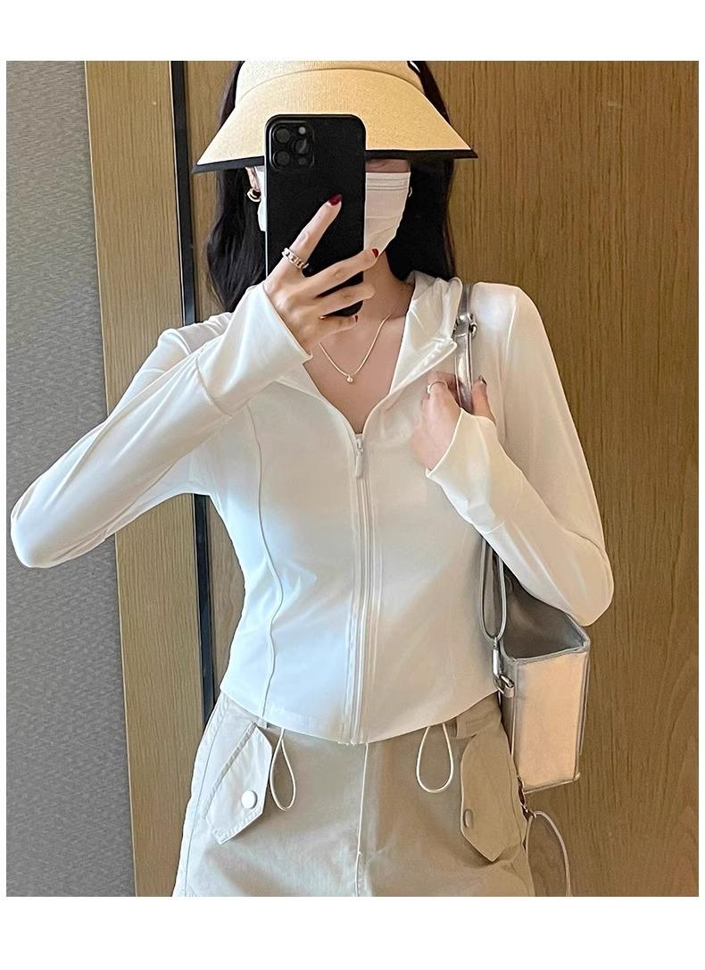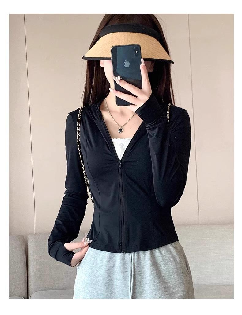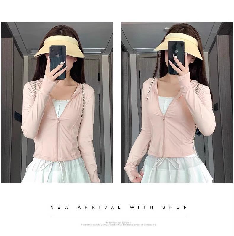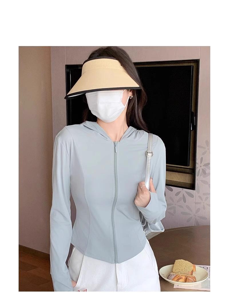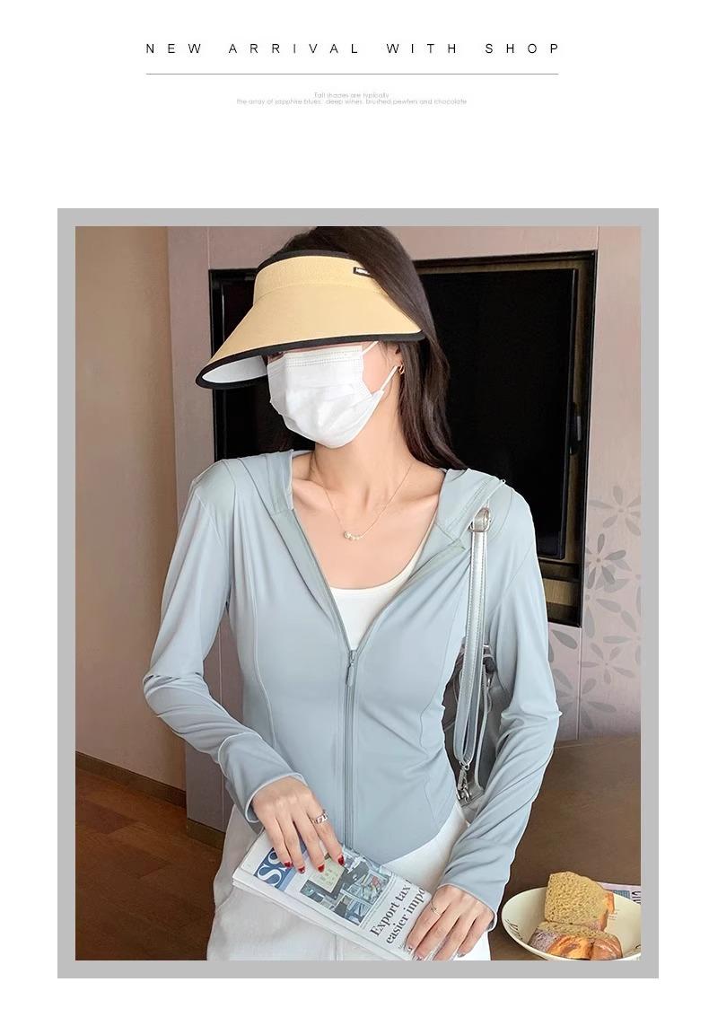 Ropa de Protección Solar de Seda de Hielo Verano Delgada Anti-UV Cintura Delgada Aspecto Adelgazante Ropa de Protección Solar con Capucha Chaqueta Deportiva A3959