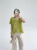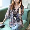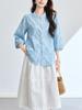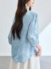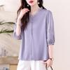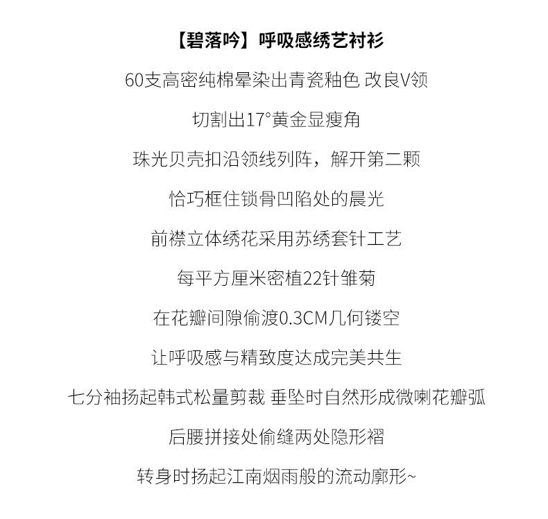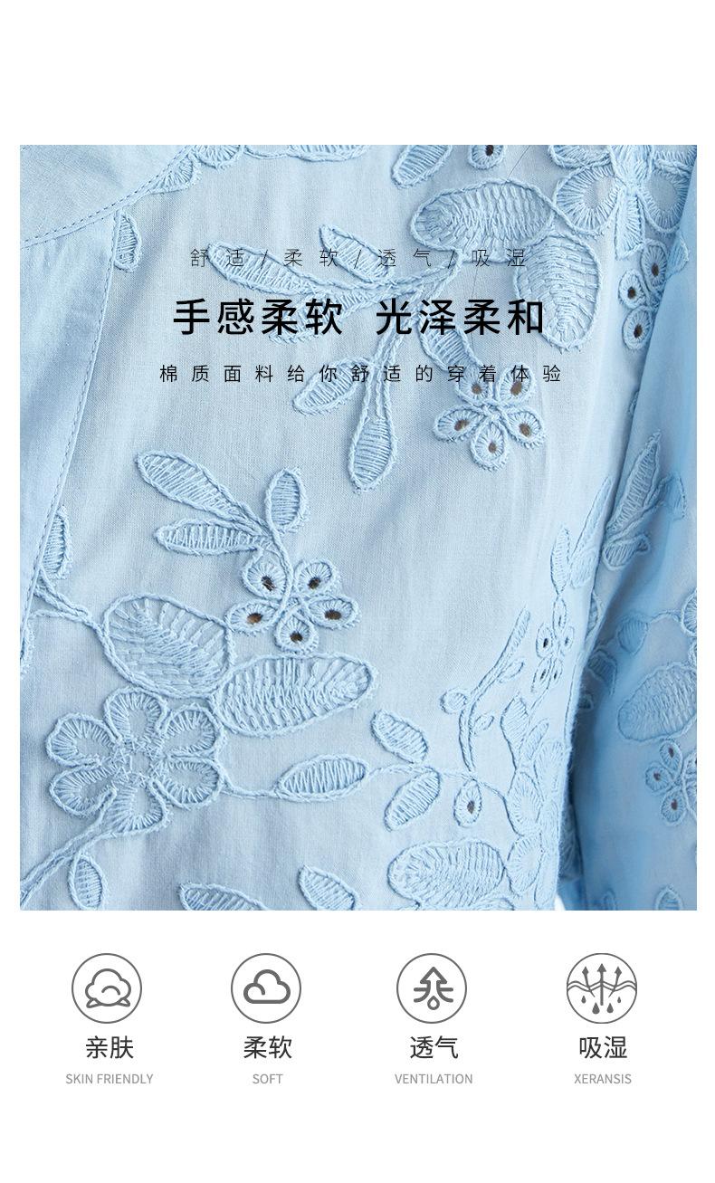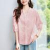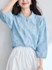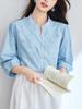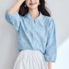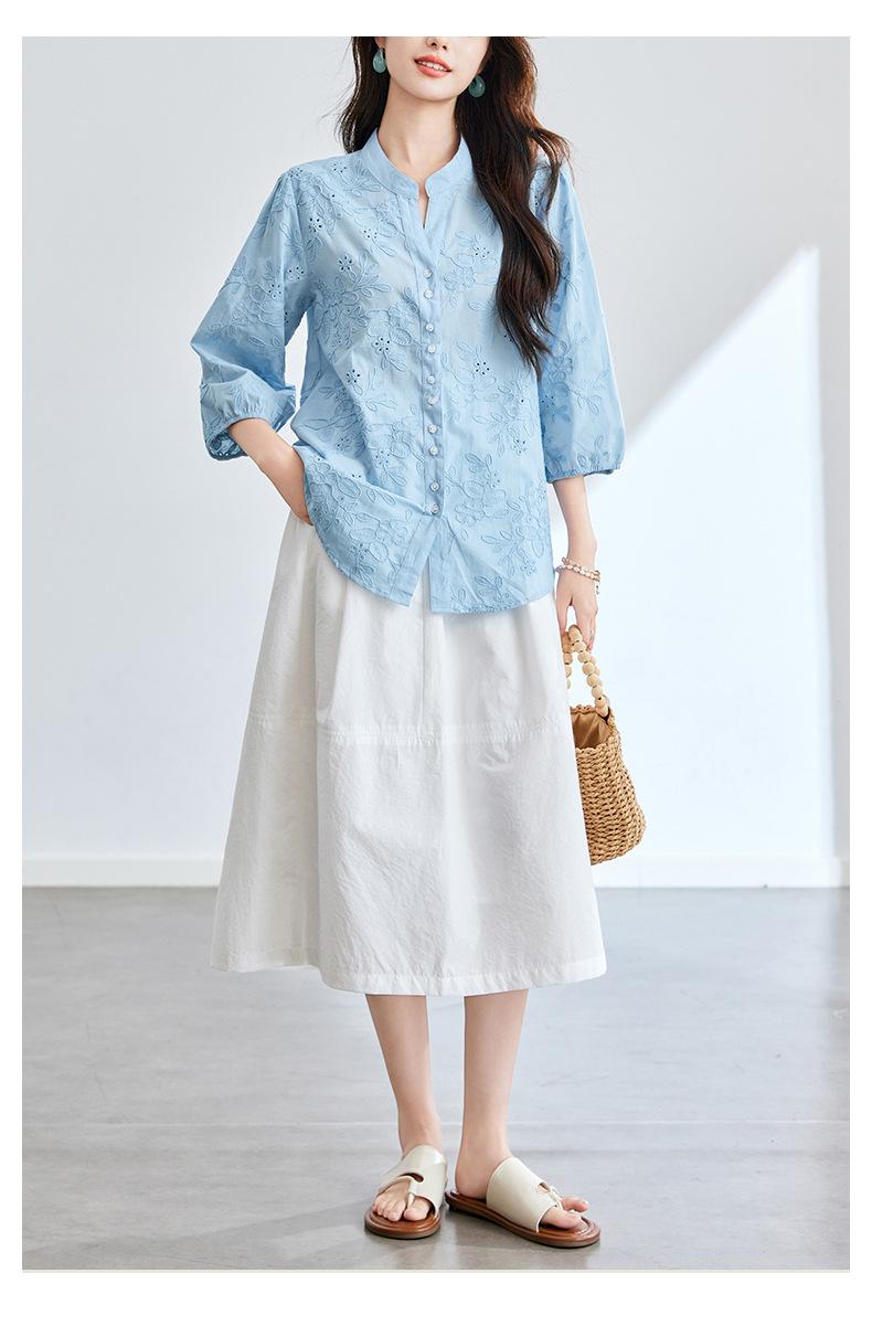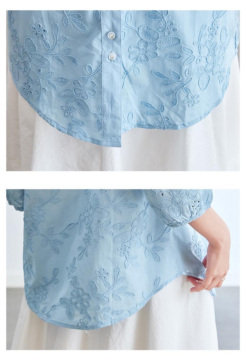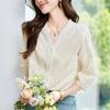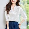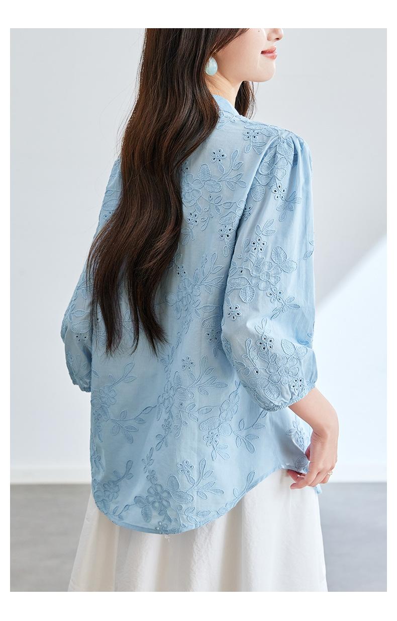 [Personalizado] Camisa de Manga Tres Cuartos con Cuello en V Bordada con Recortes para Mujer Primavera y Verano Nueva Algodón Puro Elegante Sencilla Camisa Top