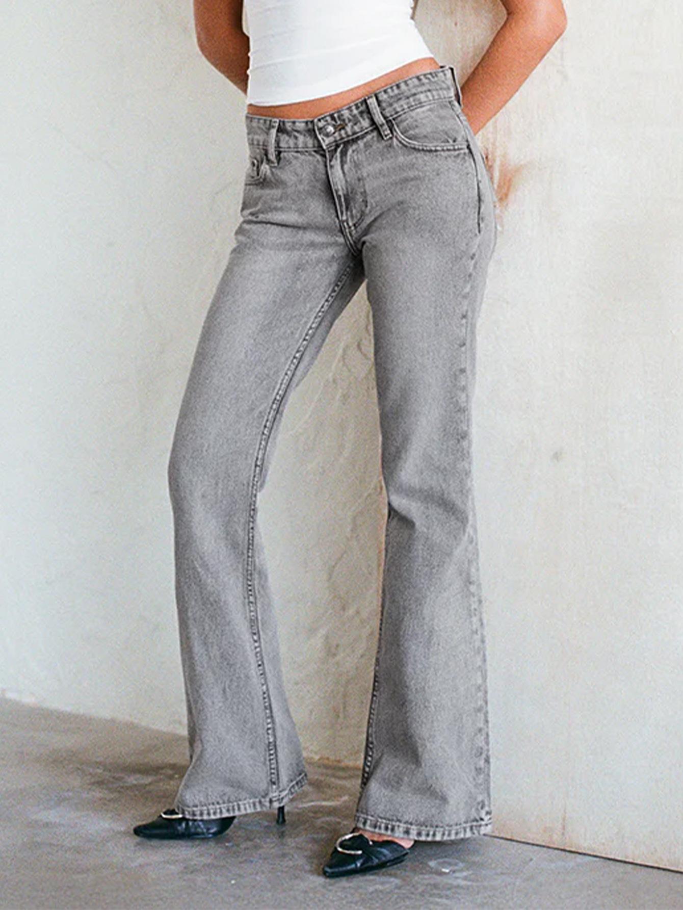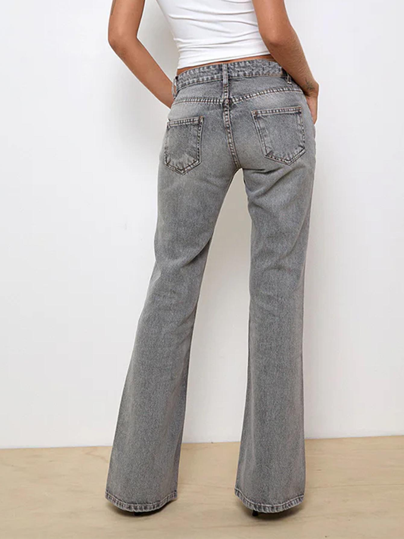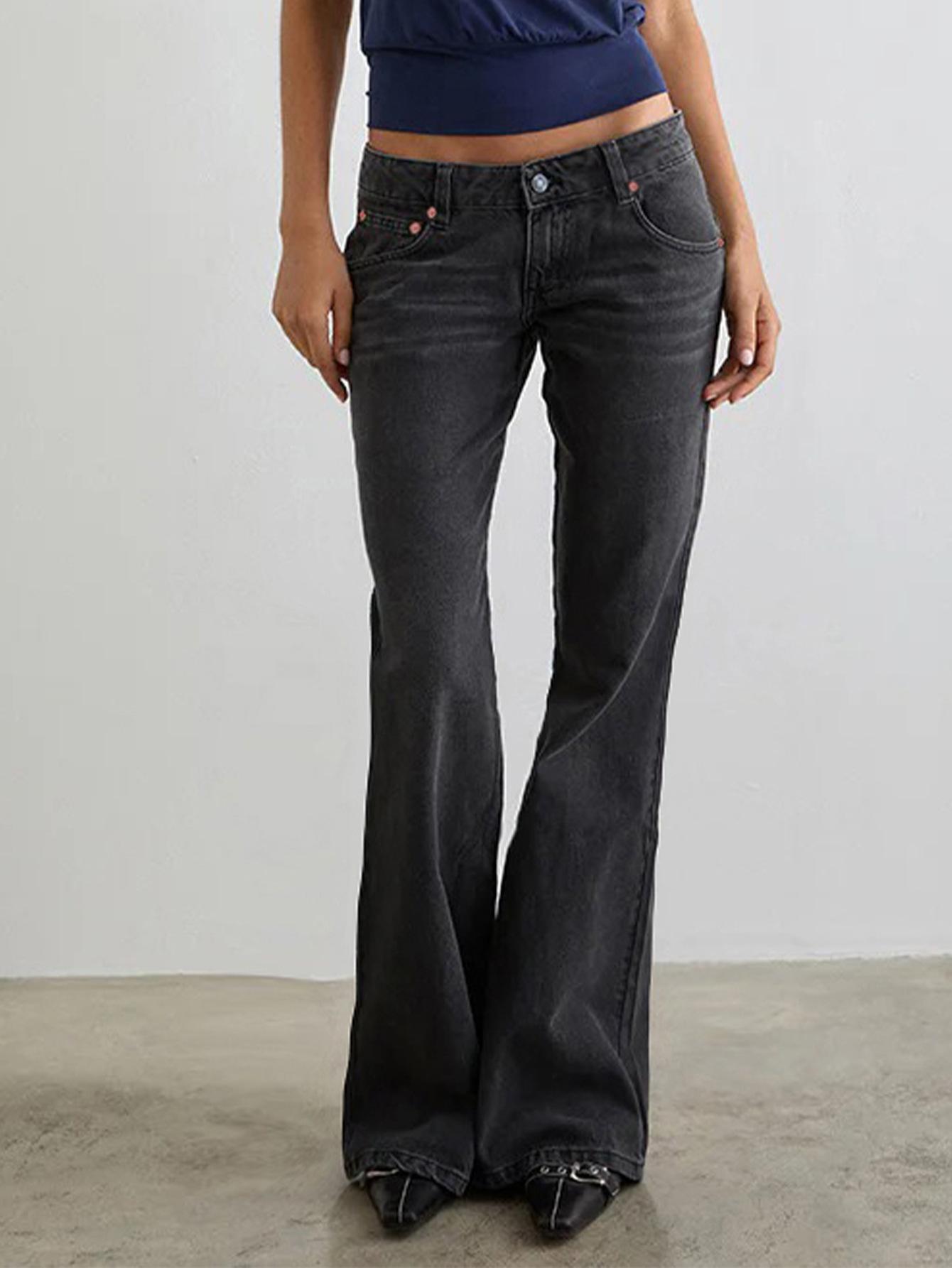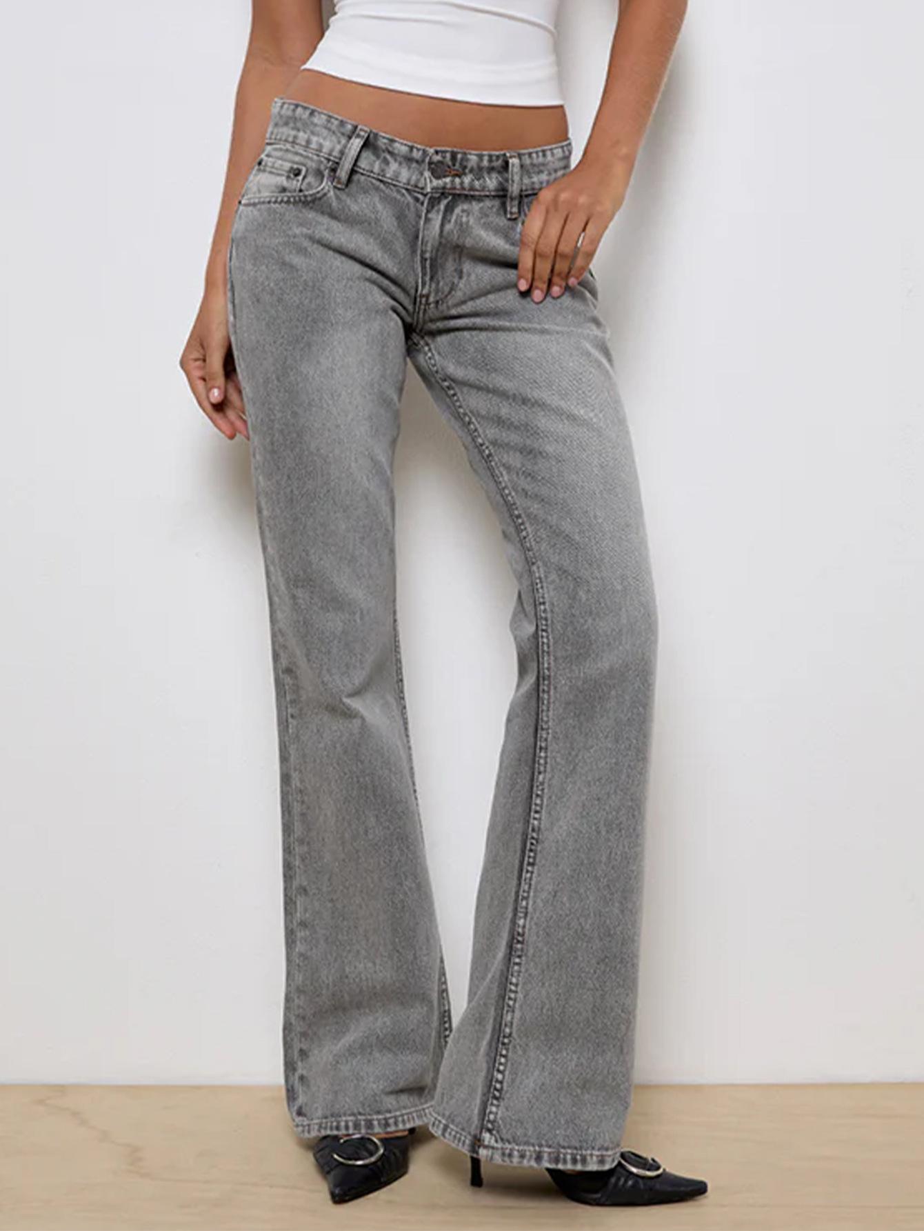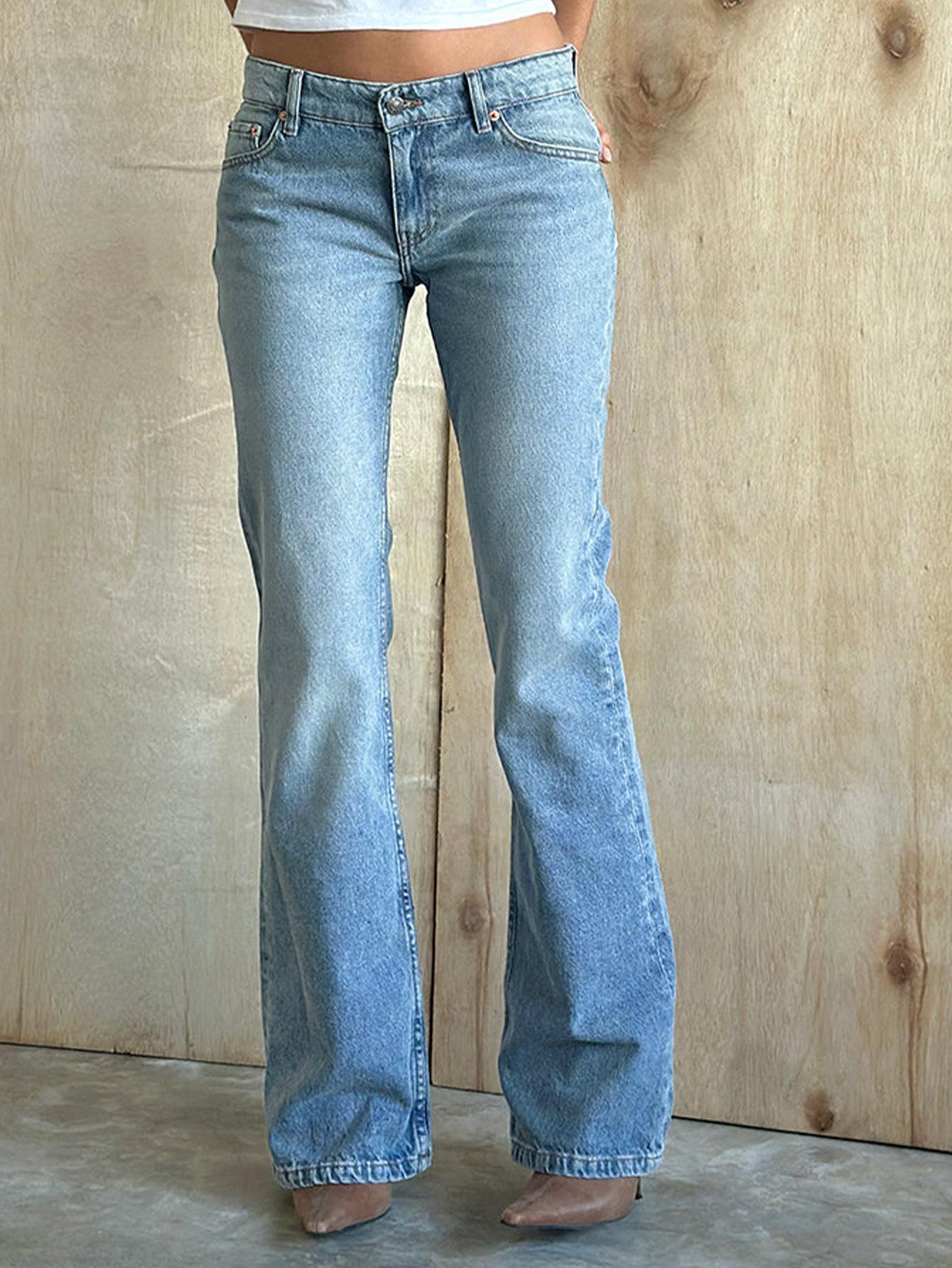 Moda Europea y Americana Personalidad Cintura Baja Alta Elasticidad Mezclilla Pantalones Largos Tendencia ins Adelgazantes Mezclilla Pantalones Largos