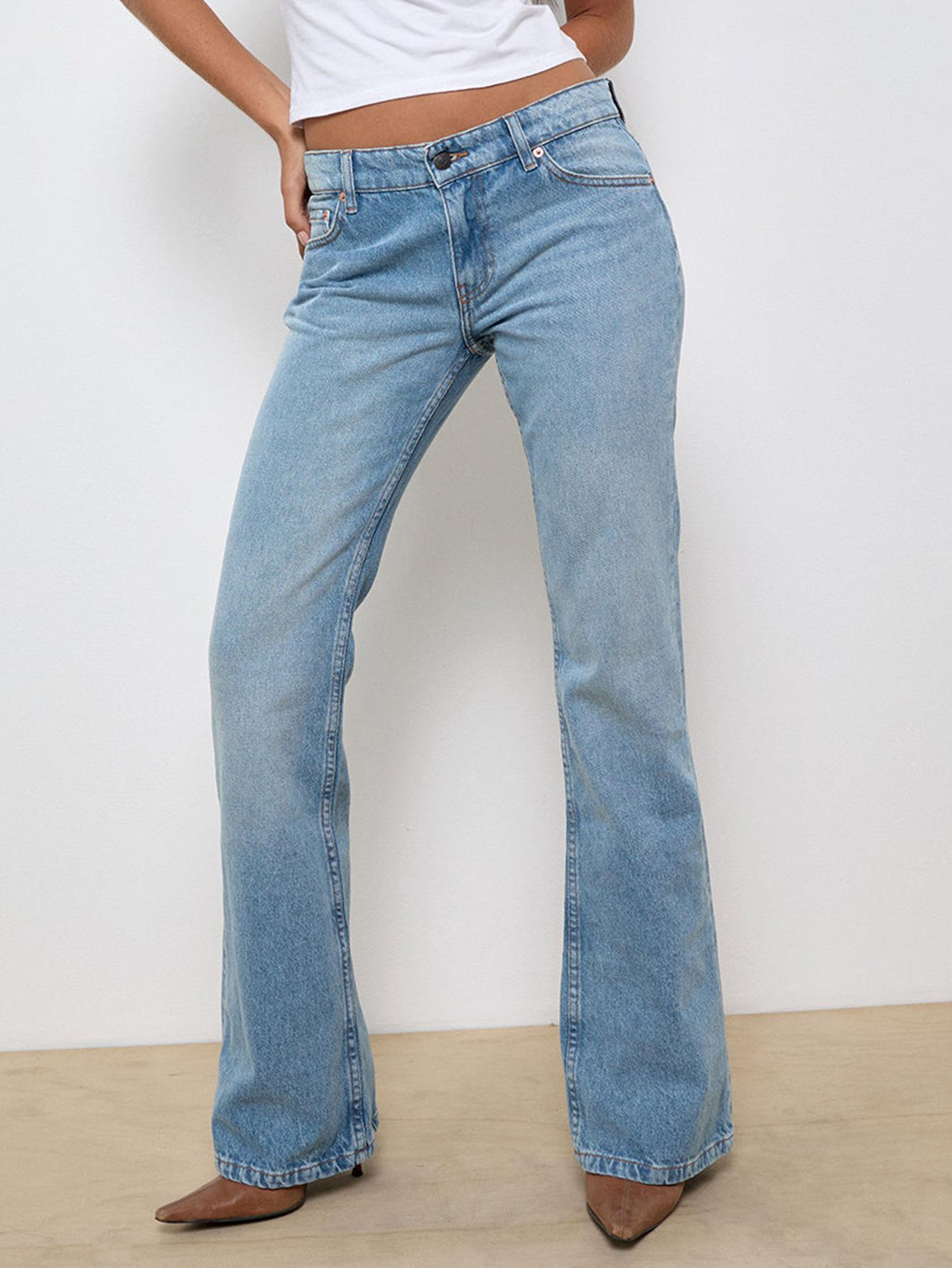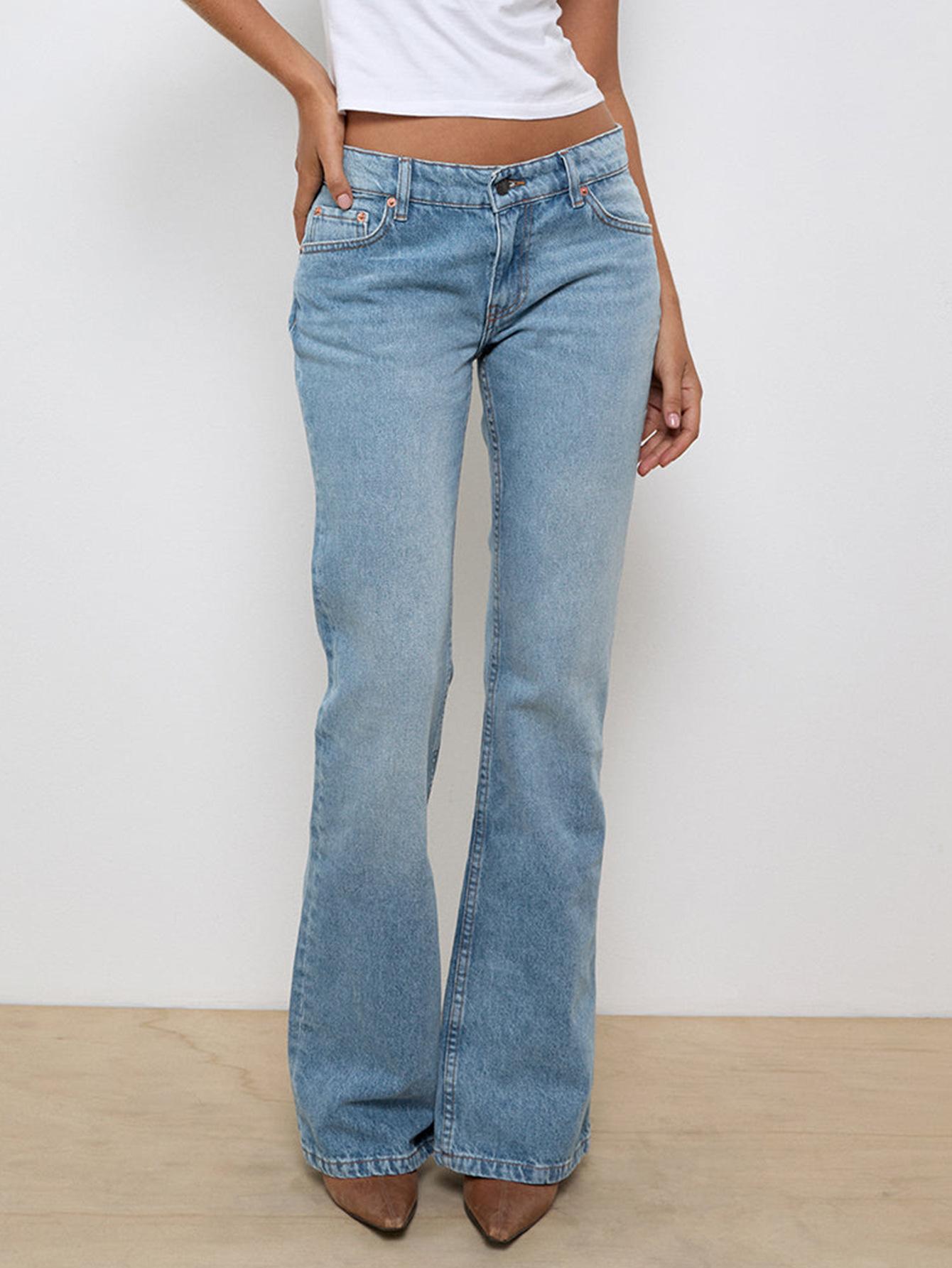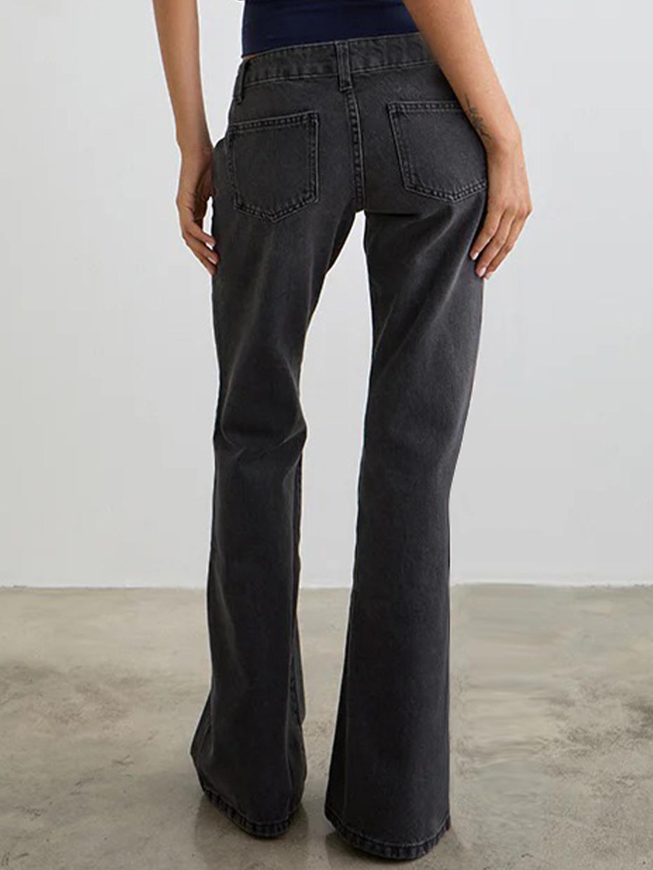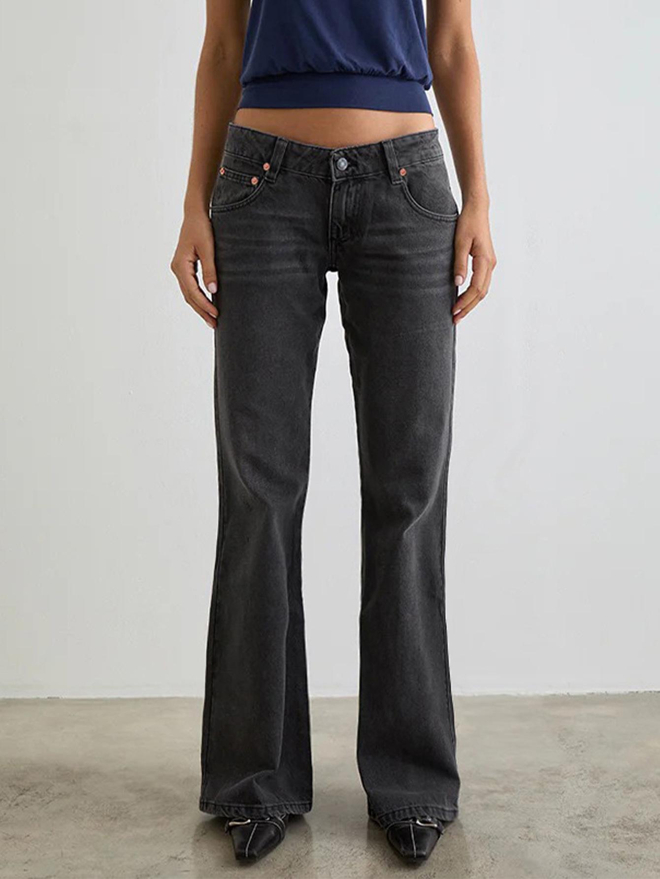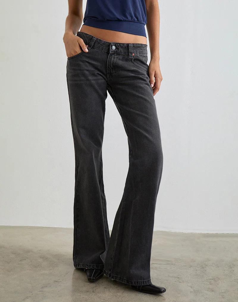Moda Europea y Americana Personalidad Cintura Baja Alta Elasticidad Mezclilla Pantalones Largos Tendencia ins Adelgazantes Mezclilla Pantalones Largos