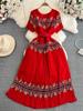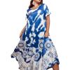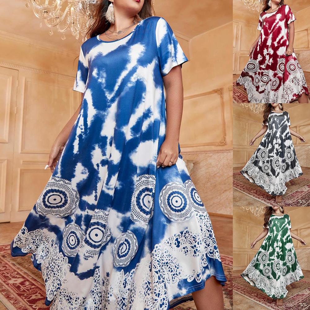 Vestido Largo Elegante de Vacaciones para Mujer de Talla Grande con Cuello Redondo y Estampado de Ubicación Bohemio A-Line Grande