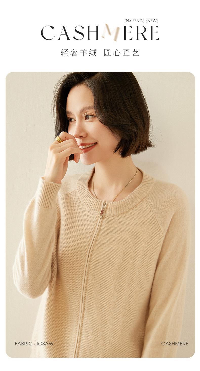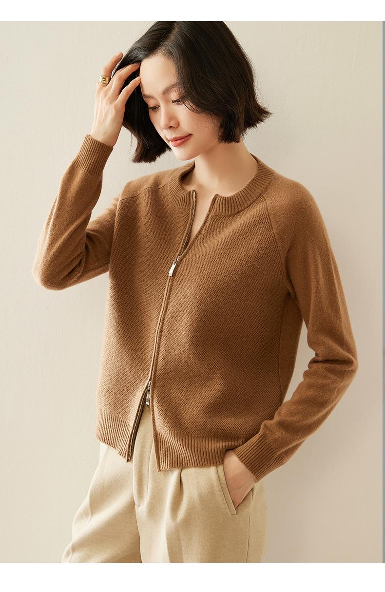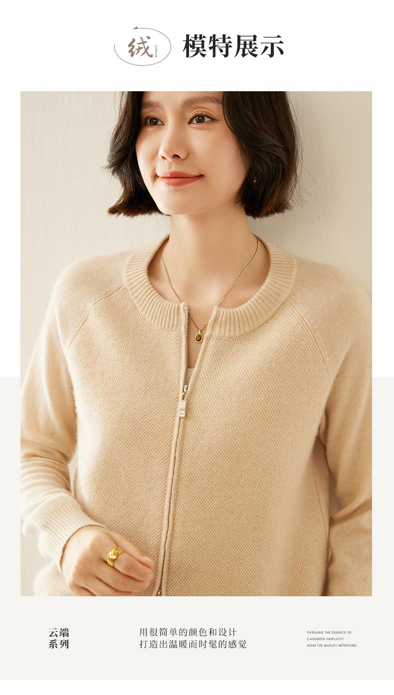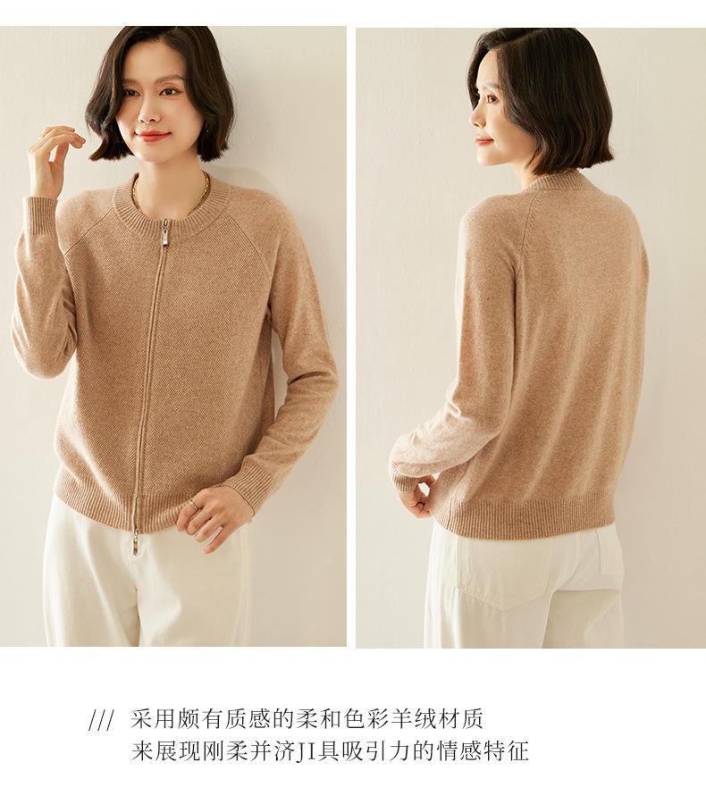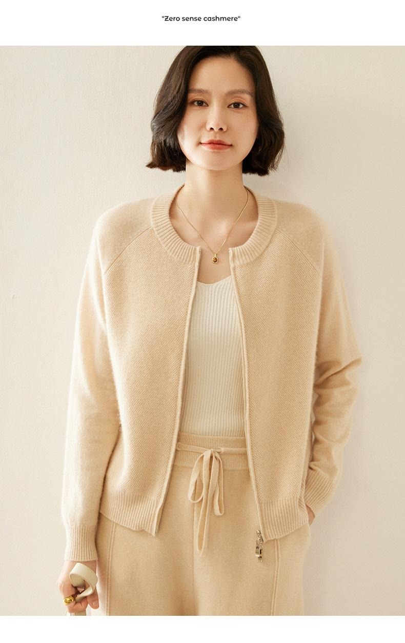Cárdigan de Cachemira con Cremallera de Cuello Redondo 2024 Otoño/Invierno Nuevo Estilo Camiseta Base de Color Sólido para Mujer Estilo Coreano Holgado Adelgazante Ropa Exterior