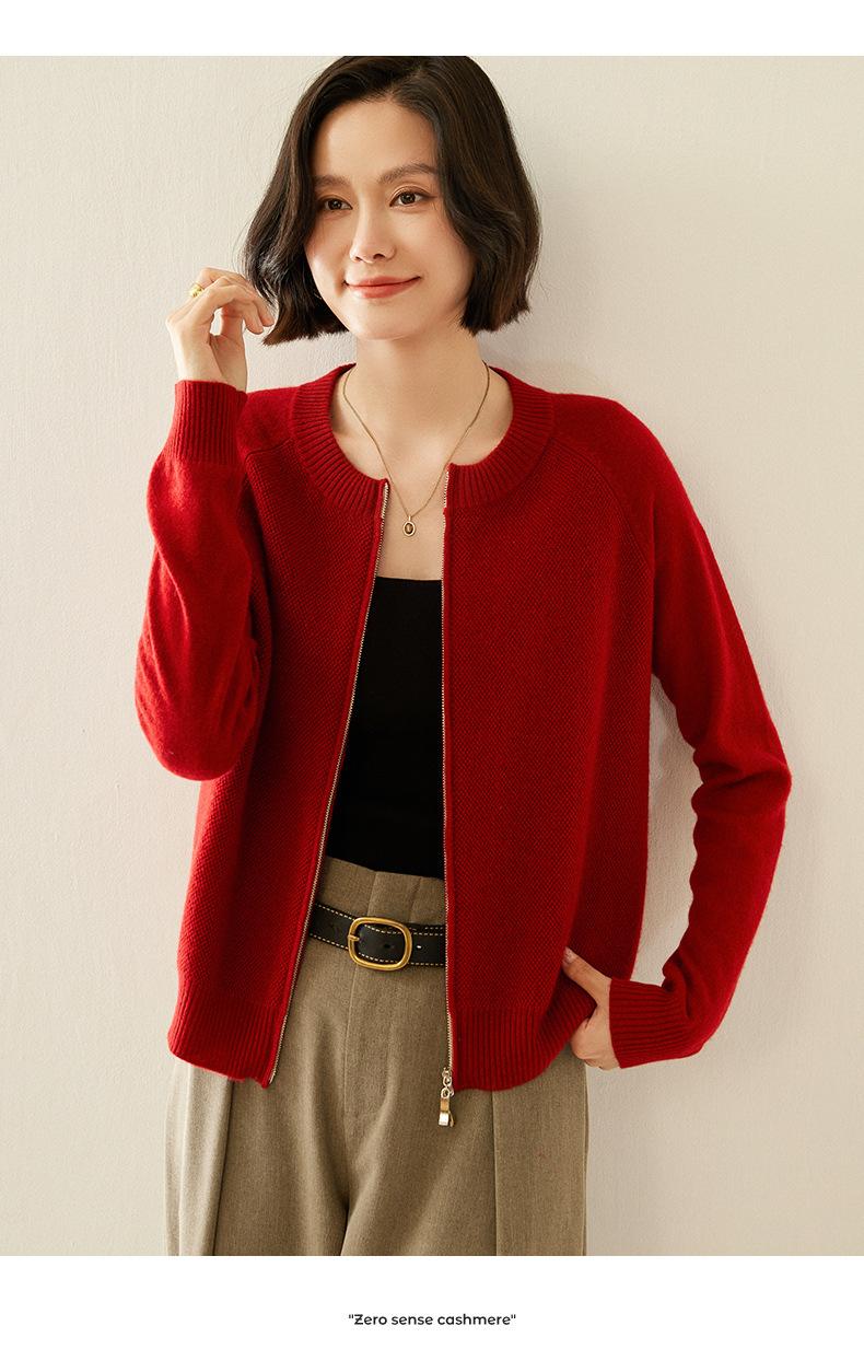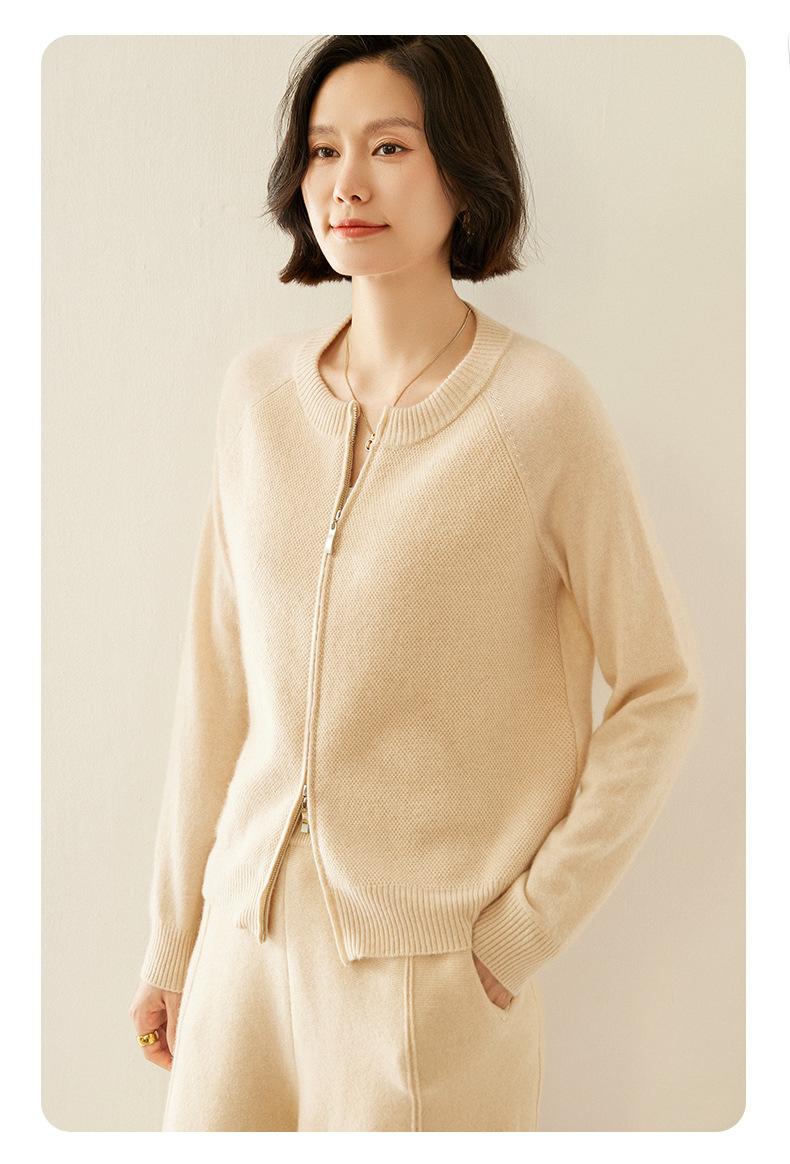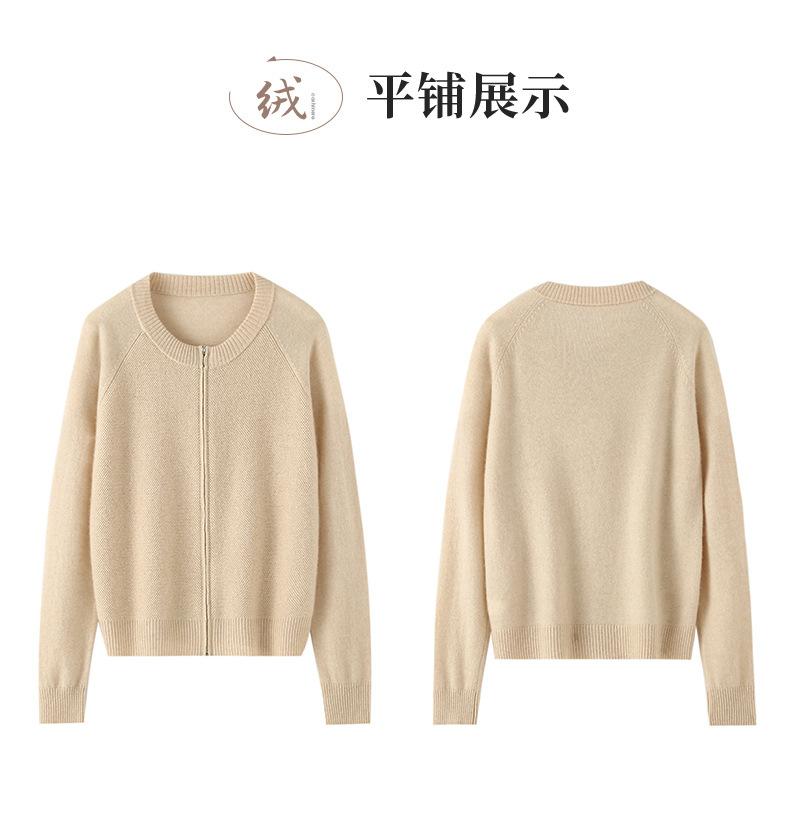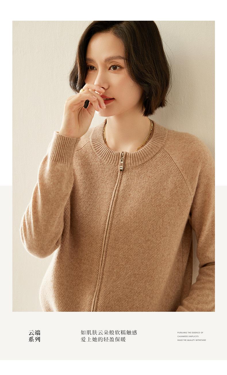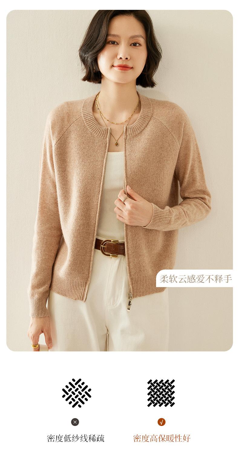 Cárdigan de Cachemira con Cremallera de Cuello Redondo 2024 Otoño/Invierno Nuevo Estilo Camiseta Base de Color Sólido para Mujer Estilo Coreano Holgado Adelgazante Ropa Exterior