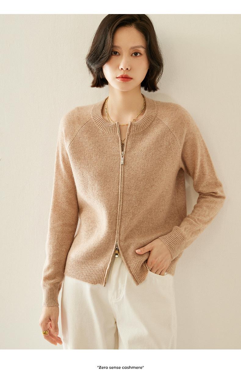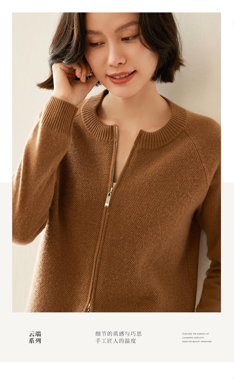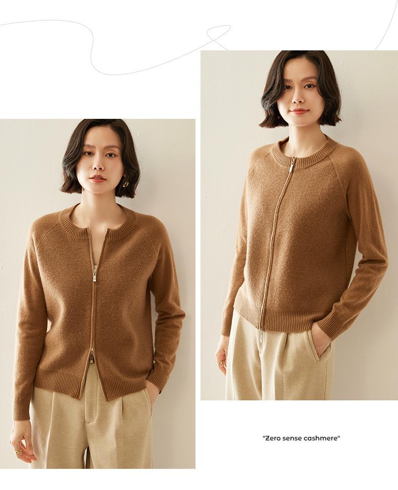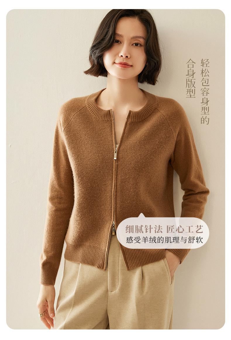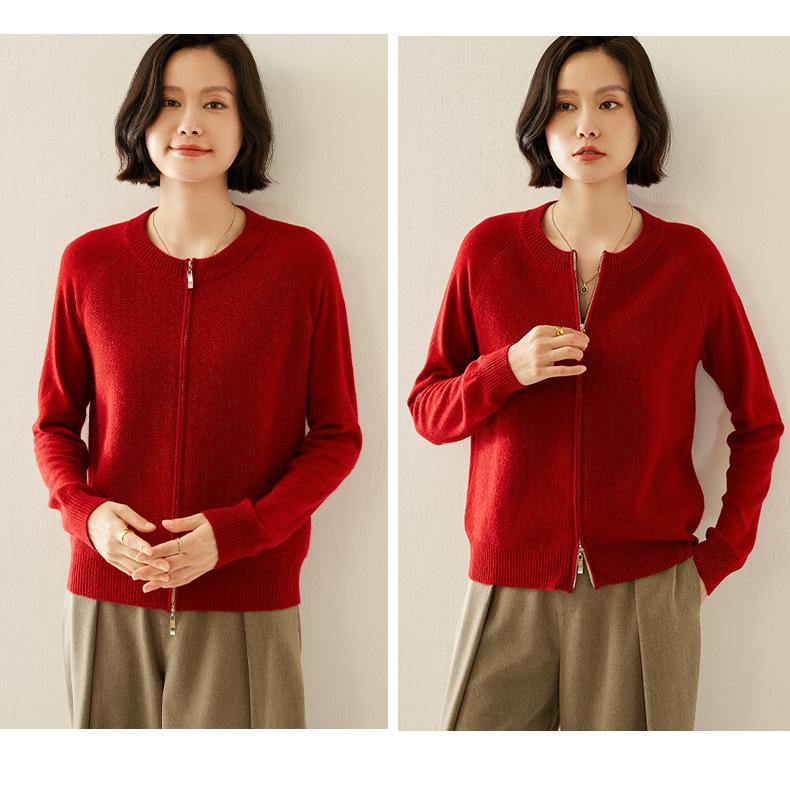 Cárdigan de Cachemira con Cremallera de Cuello Redondo 2024 Otoño/Invierno Nuevo Estilo Camiseta Base de Color Sólido para Mujer Estilo Coreano Holgado Adelgazante Ropa Exterior