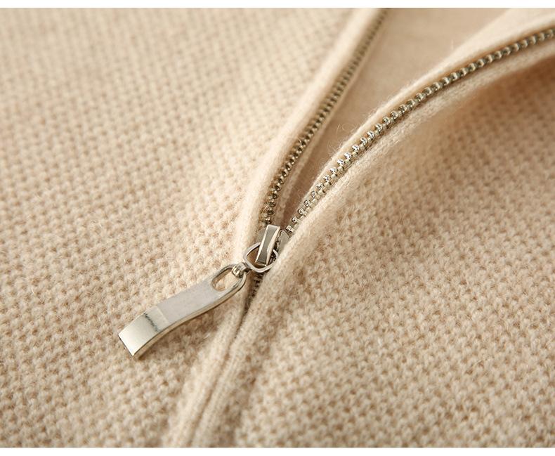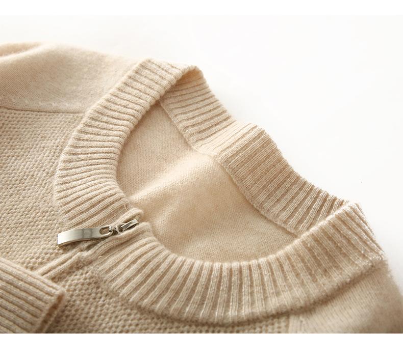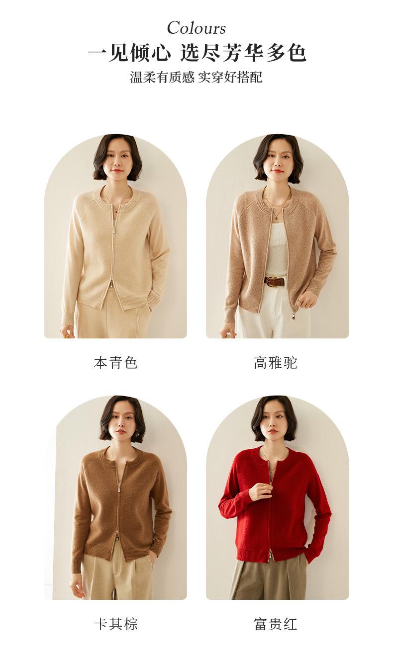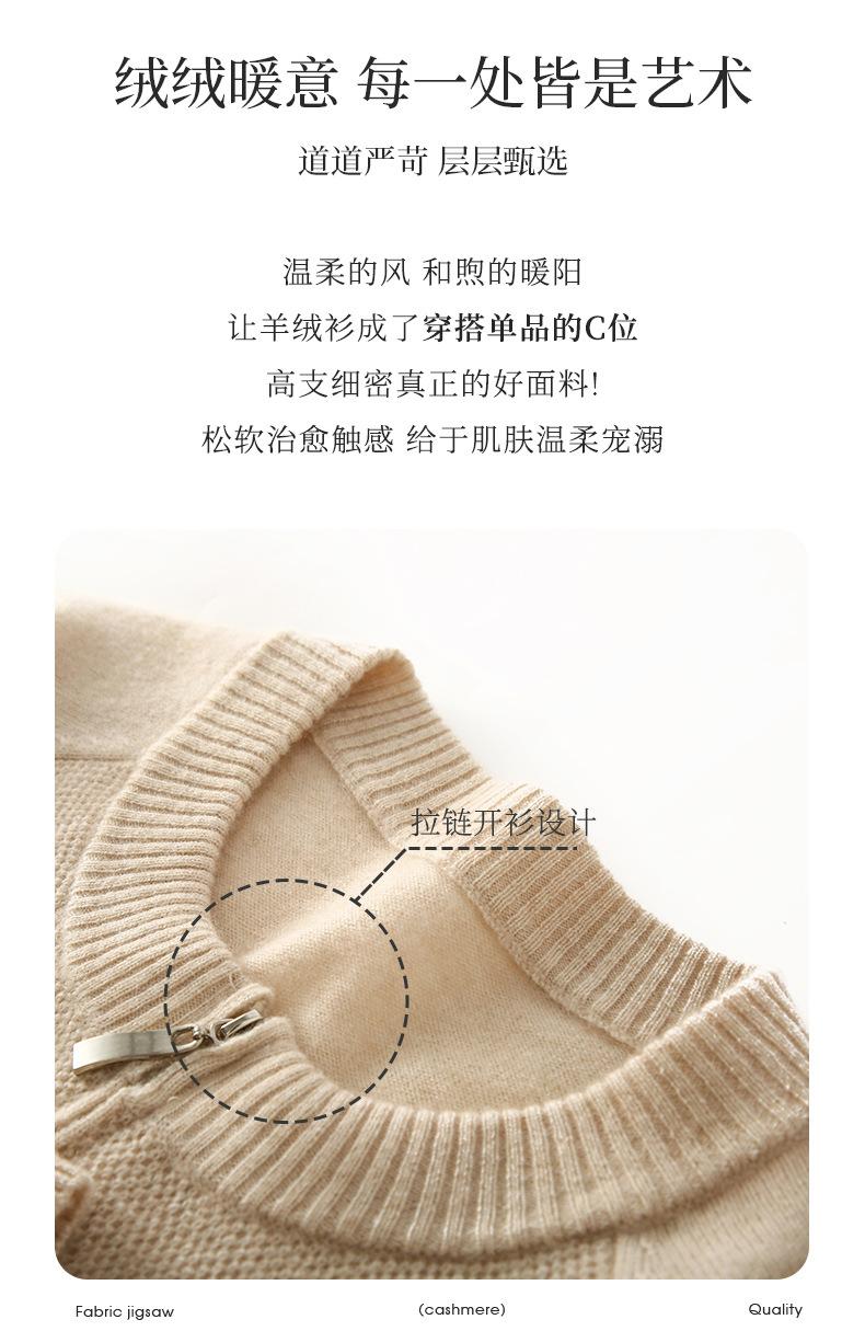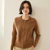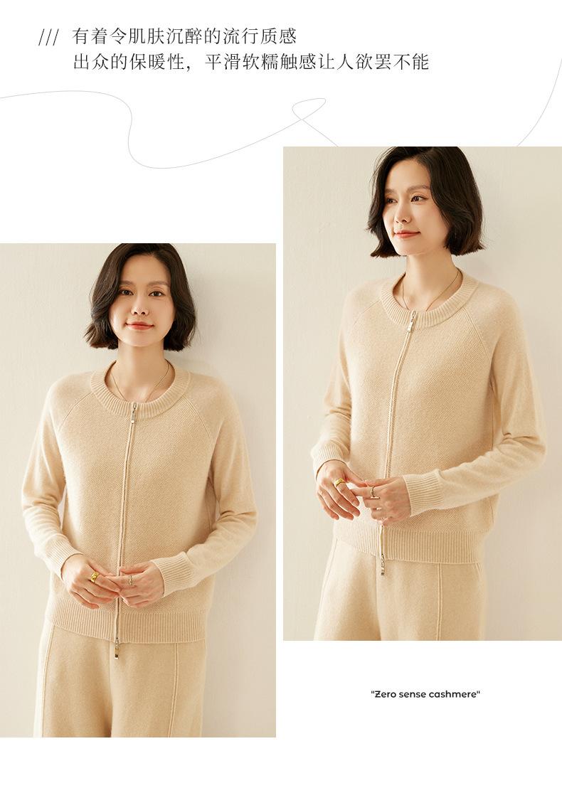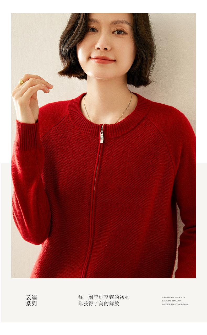 Cárdigan de Cachemira con Cremallera de Cuello Redondo 2024 Otoño/Invierno Nuevo Estilo Camiseta Base de Color Sólido para Mujer Estilo Coreano Holgado Adelgazante Ropa Exterior