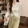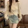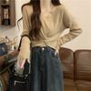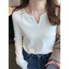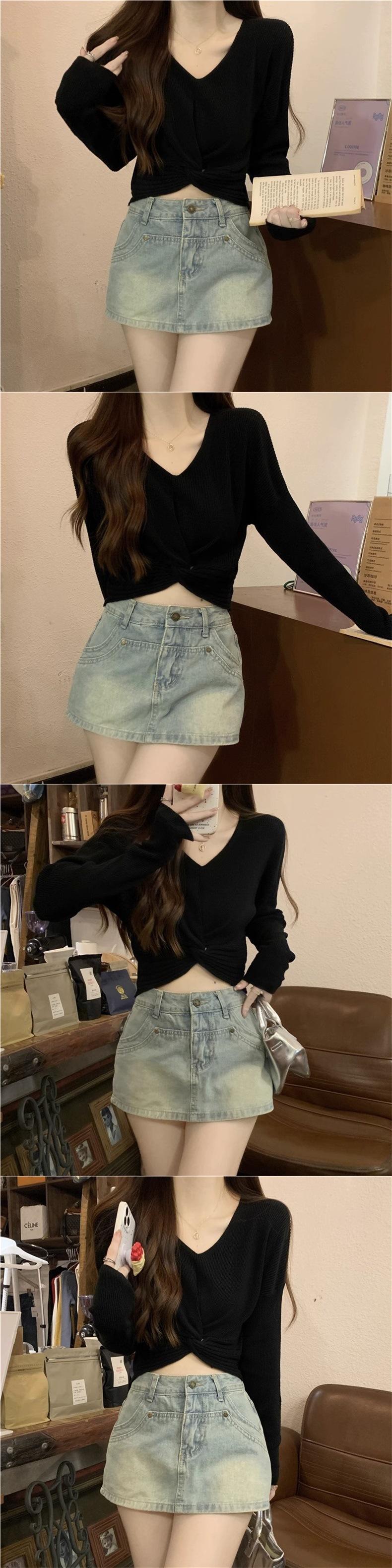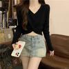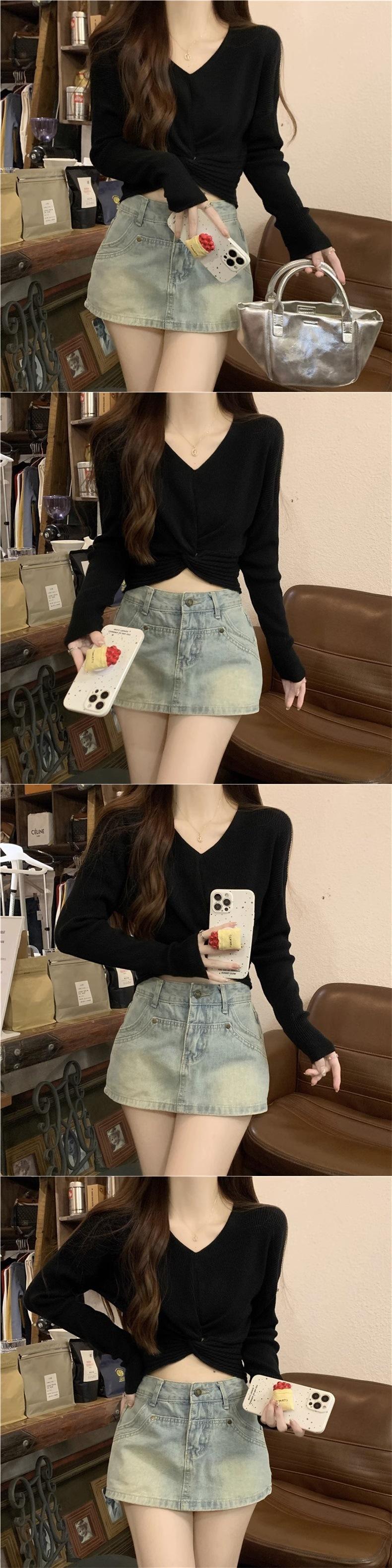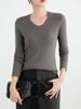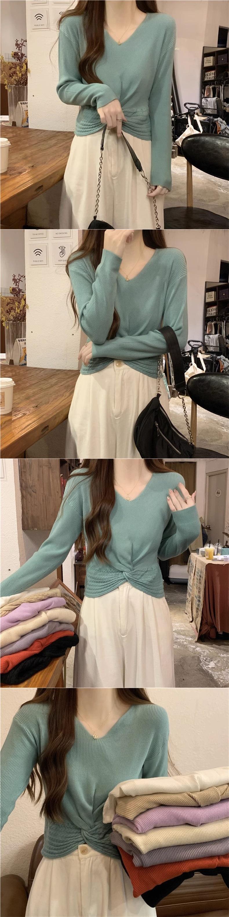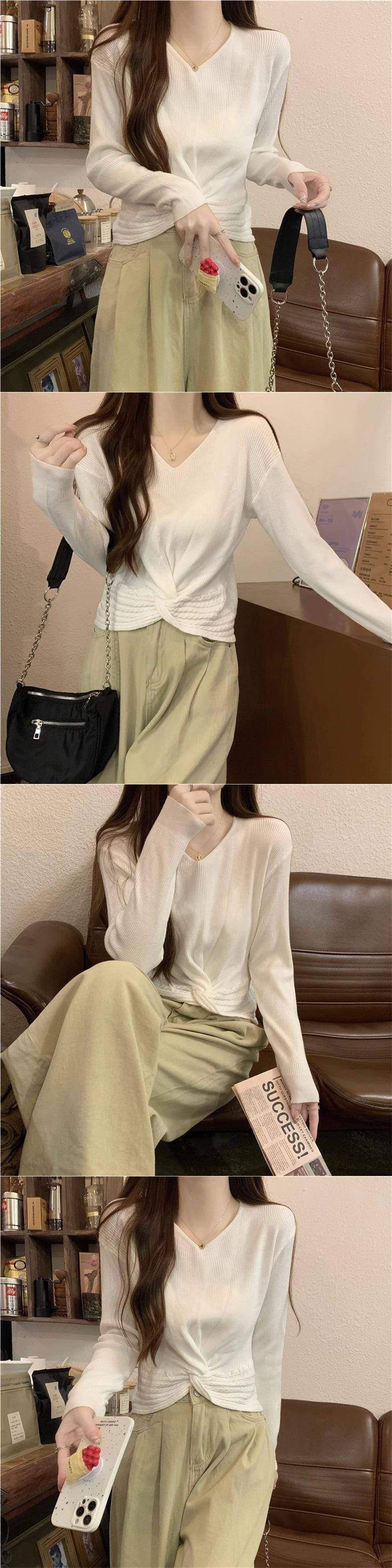 Nuevo top básico de punto de manga larga con cuello en V para otoño e invierno, ajustado, corto, petite, moderno, elegante, suéter para mujer