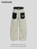 Jeans de Pierna Ancha Casuales de Calle Unisex con Bolsillo de Parche Estampado de Leopardo Retro Americano Bordado