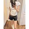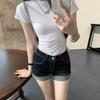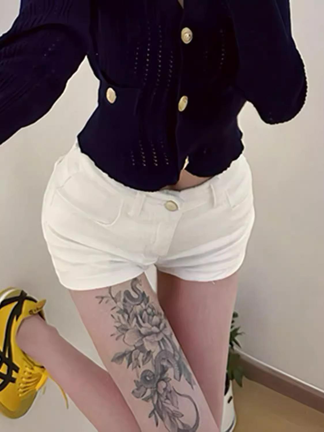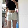 Shorts de Mezclilla Blancos Slim de Cintura Baja Petite de Talla Grande para Mujer Verano Slim Versátiles Rectos Pantalones Cortos Hot Girl