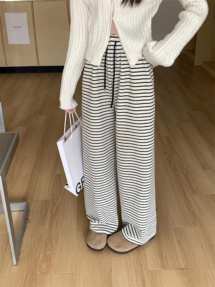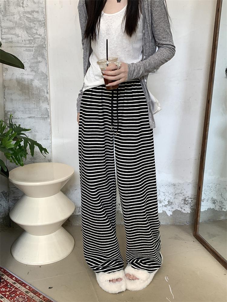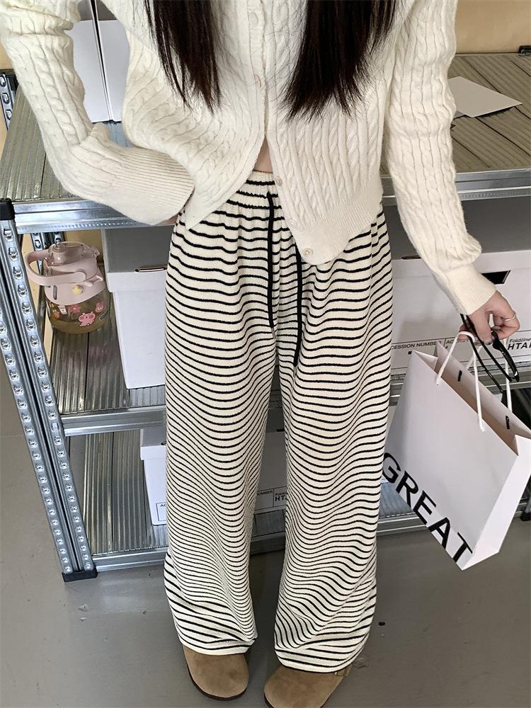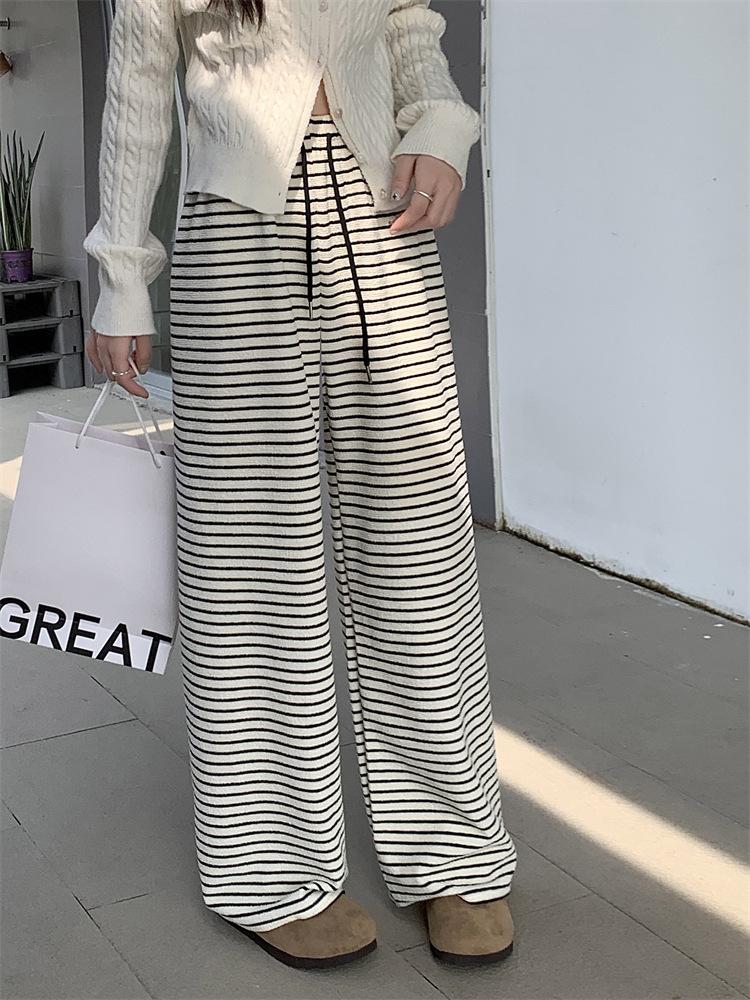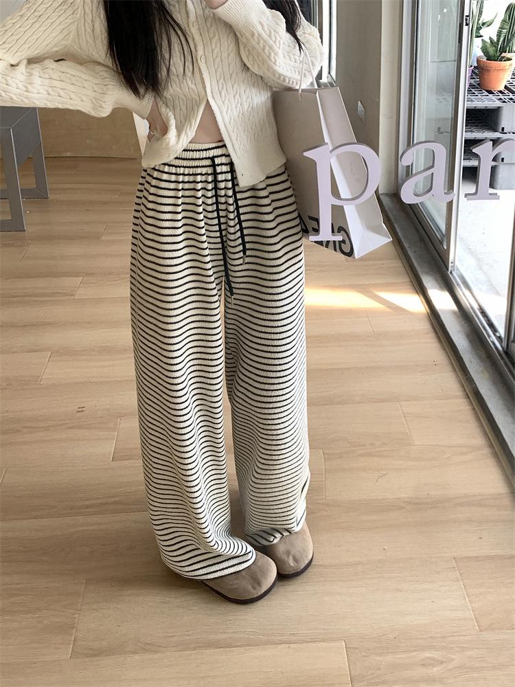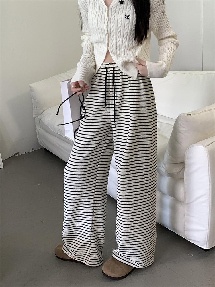 Pantalones Largos Rayados Verano 2025 Nuevos Elásticos Cintura Alta Casual Holgados Talla Extra Mujer Adelgazantes Cordón