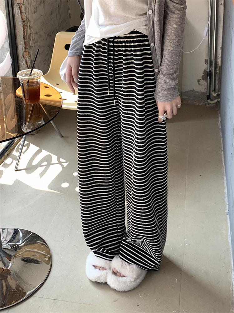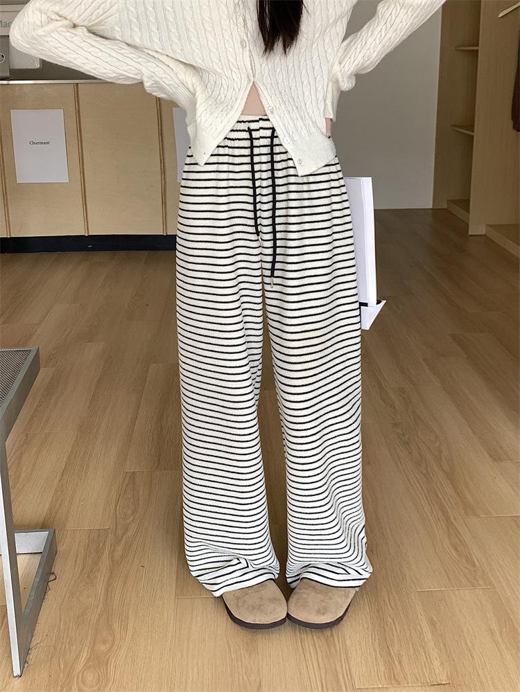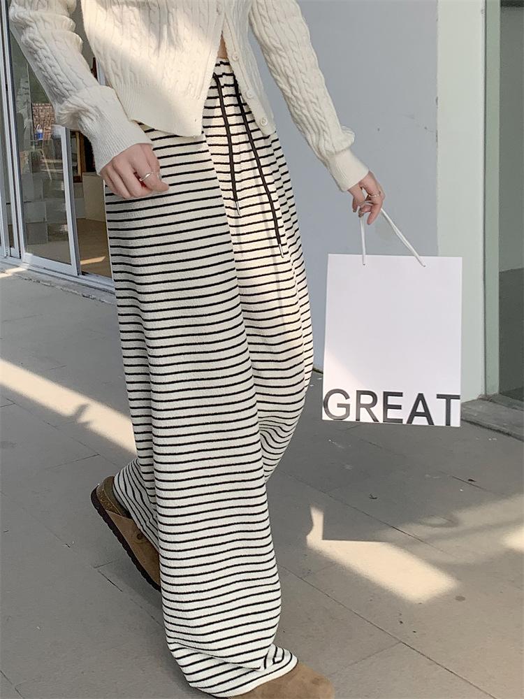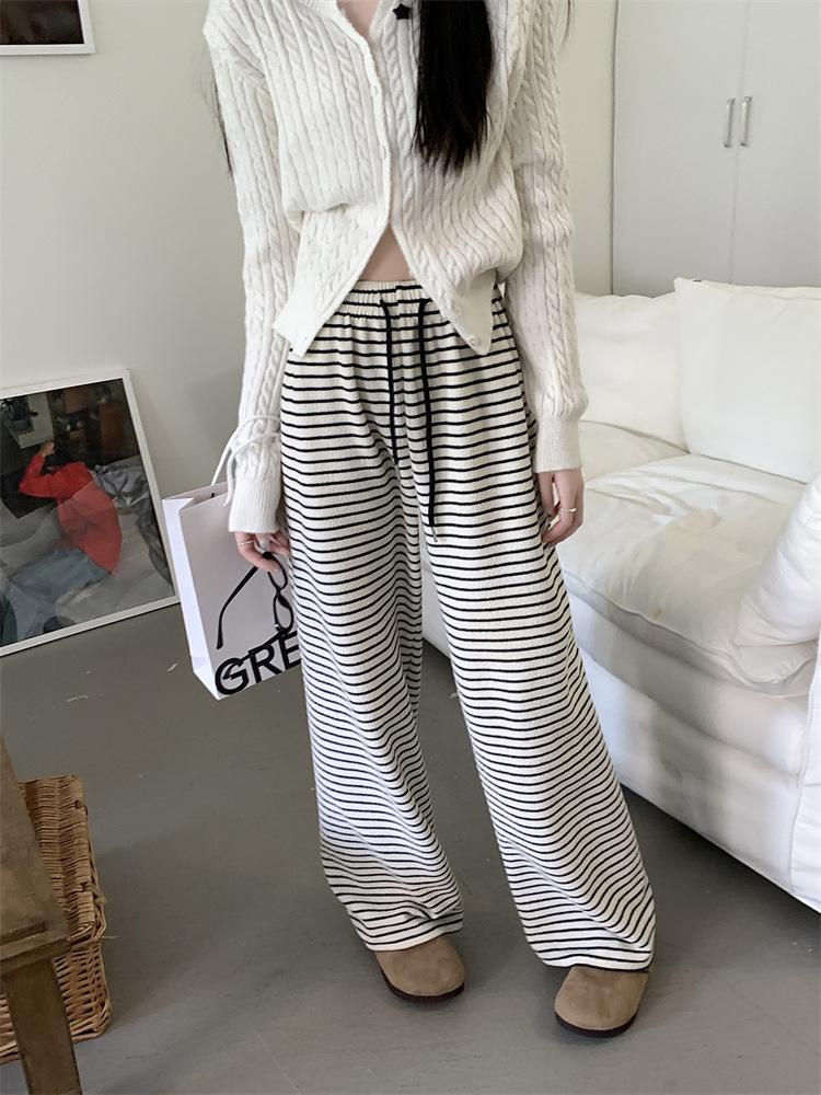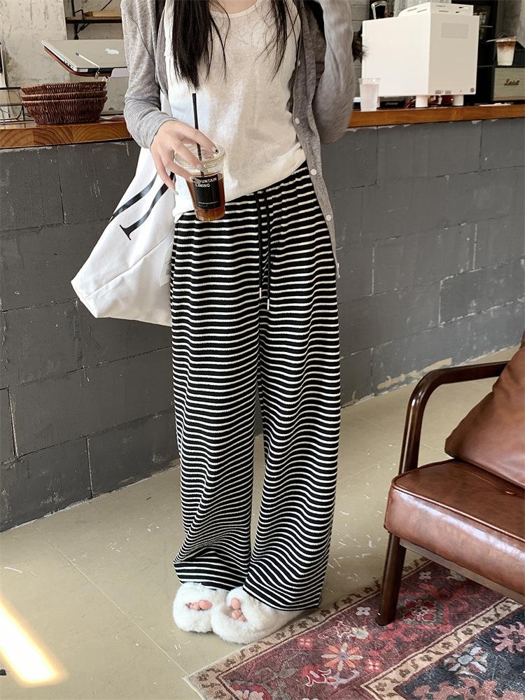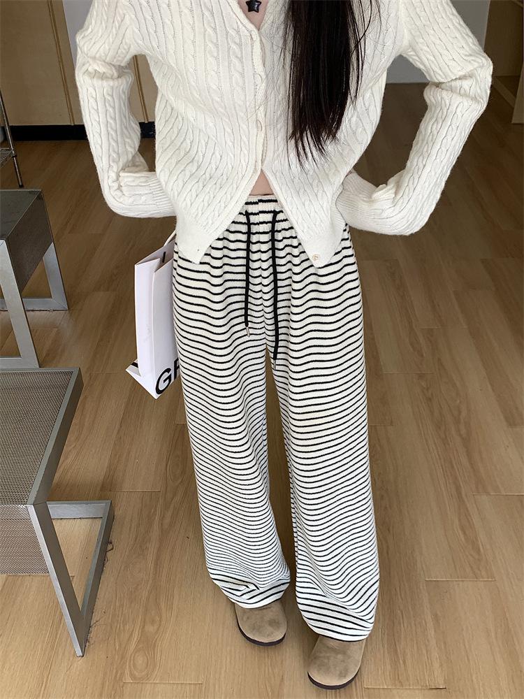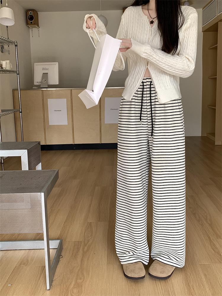 Pantalones Largos Rayados Verano 2025 Nuevos Elásticos Cintura Alta Casual Holgados Talla Extra Mujer Adelgazantes Cordón