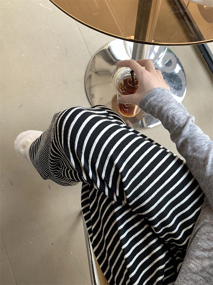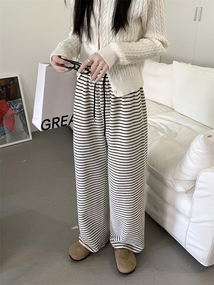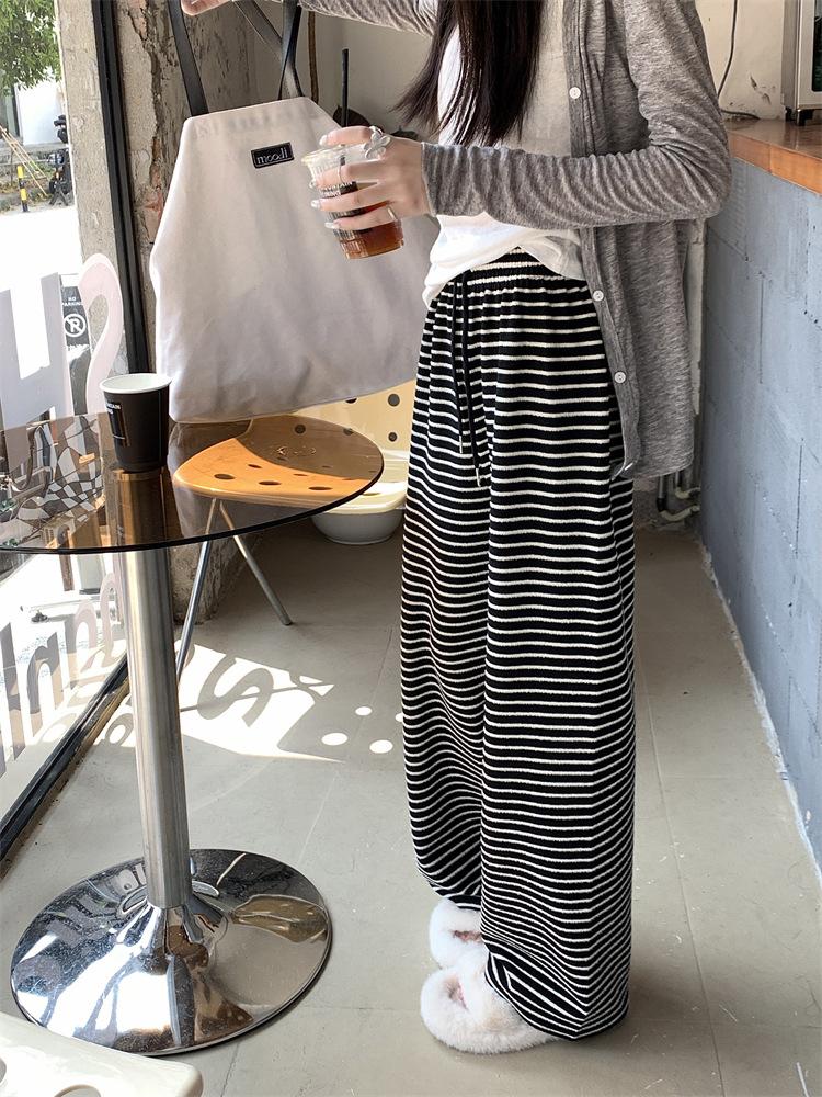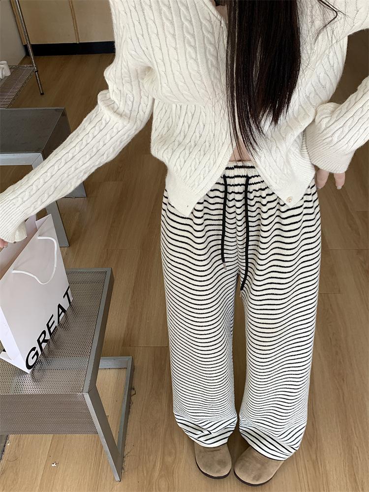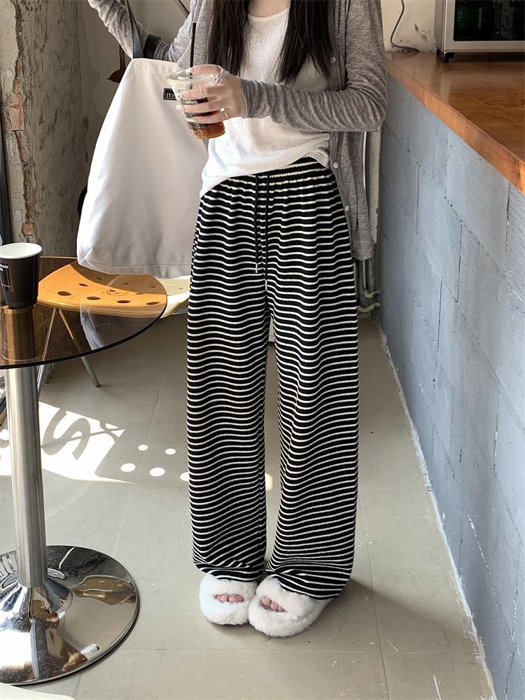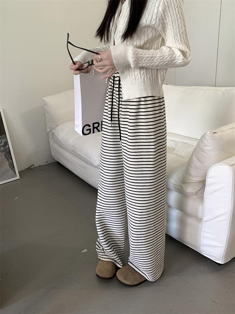 Pantalones Largos Rayados Verano 2025 Nuevos Elásticos Cintura Alta Casual Holgados Talla Extra Mujer Adelgazantes Cordón