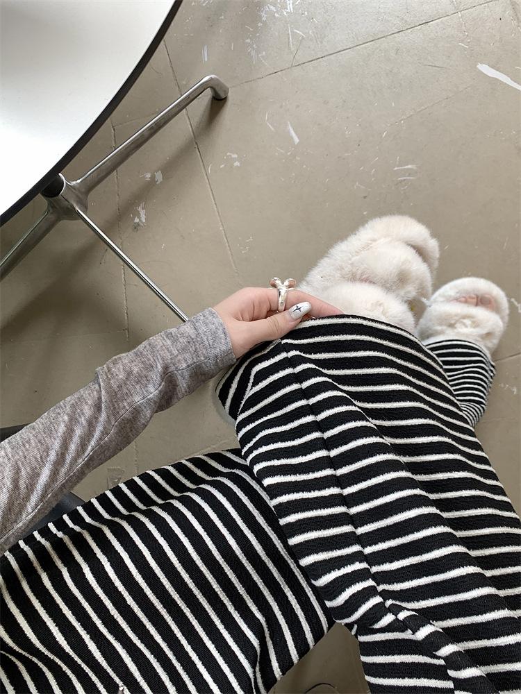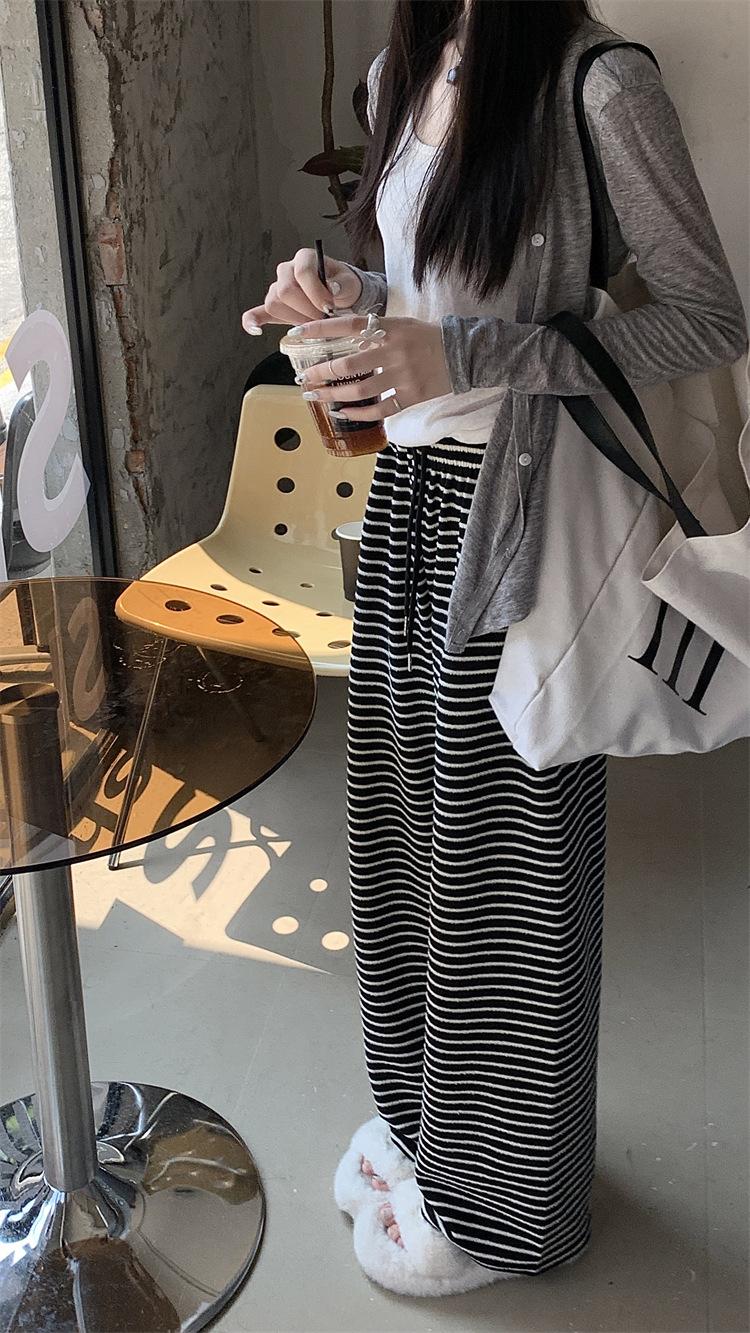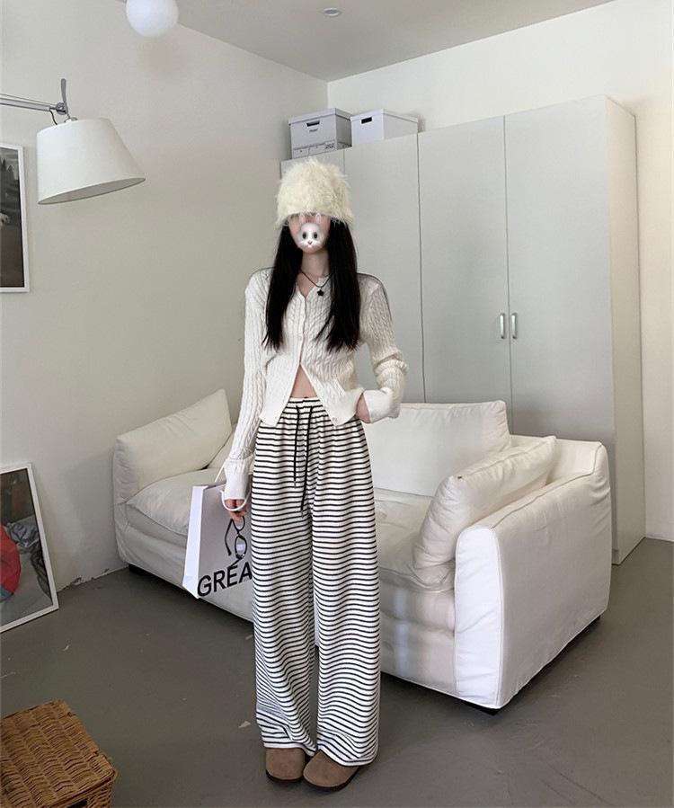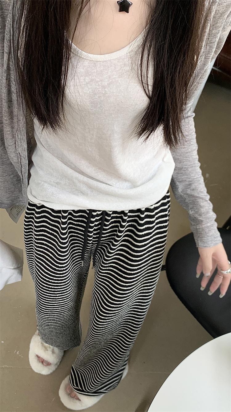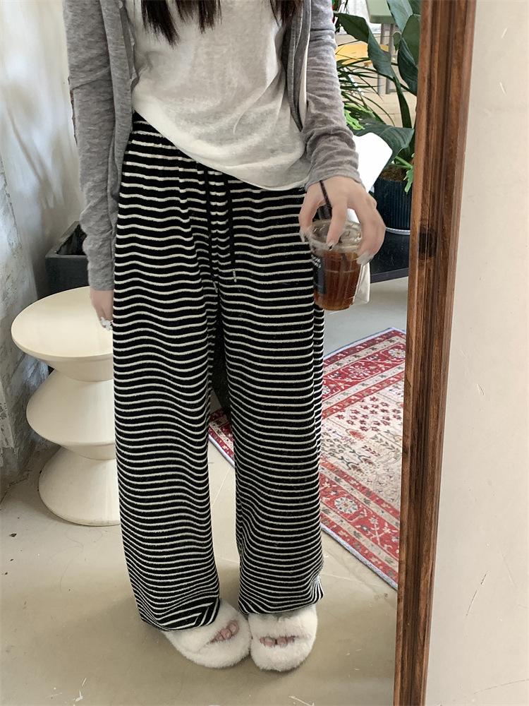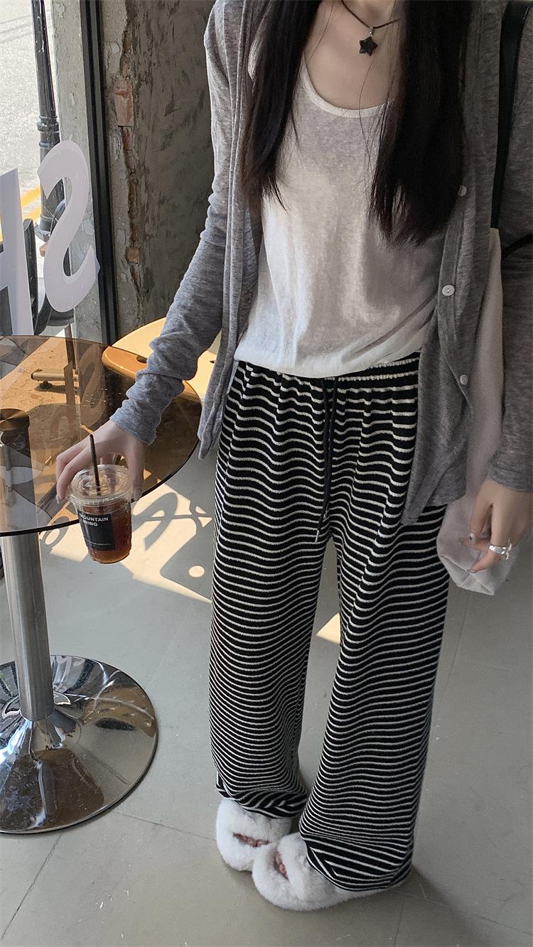 Pantalones Largos Rayados Verano 2025 Nuevos Elásticos Cintura Alta Casual Holgados Talla Extra Mujer Adelgazantes Cordón
