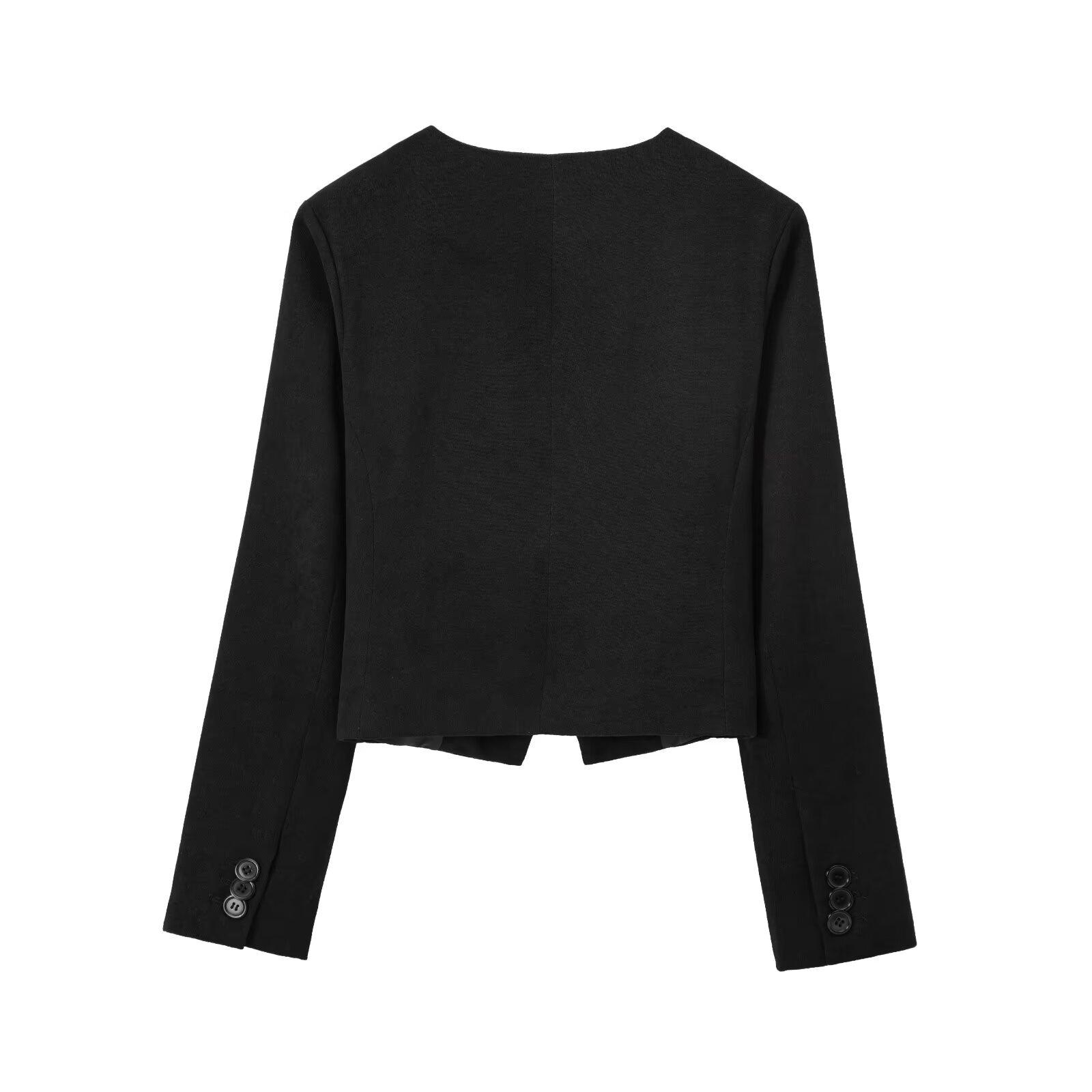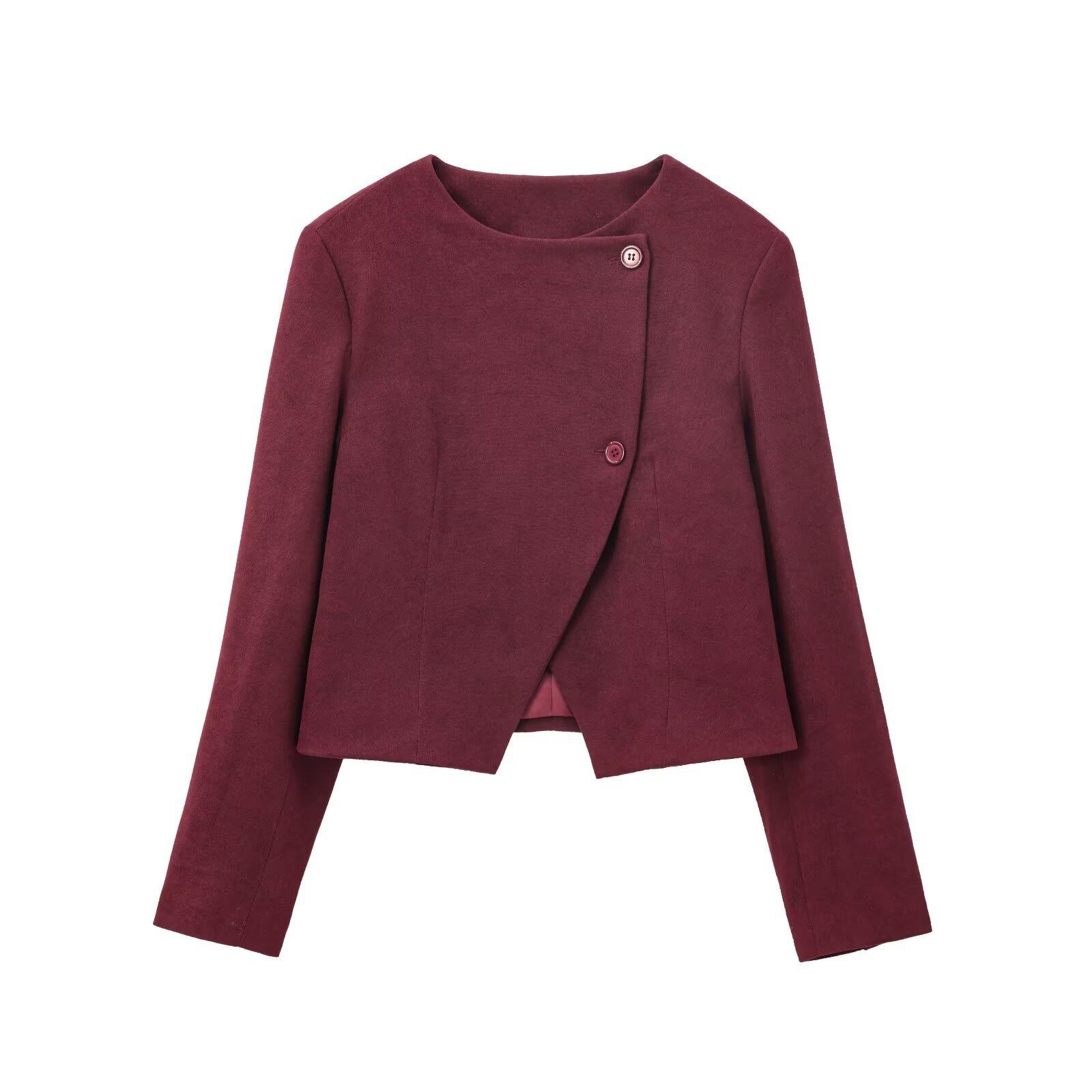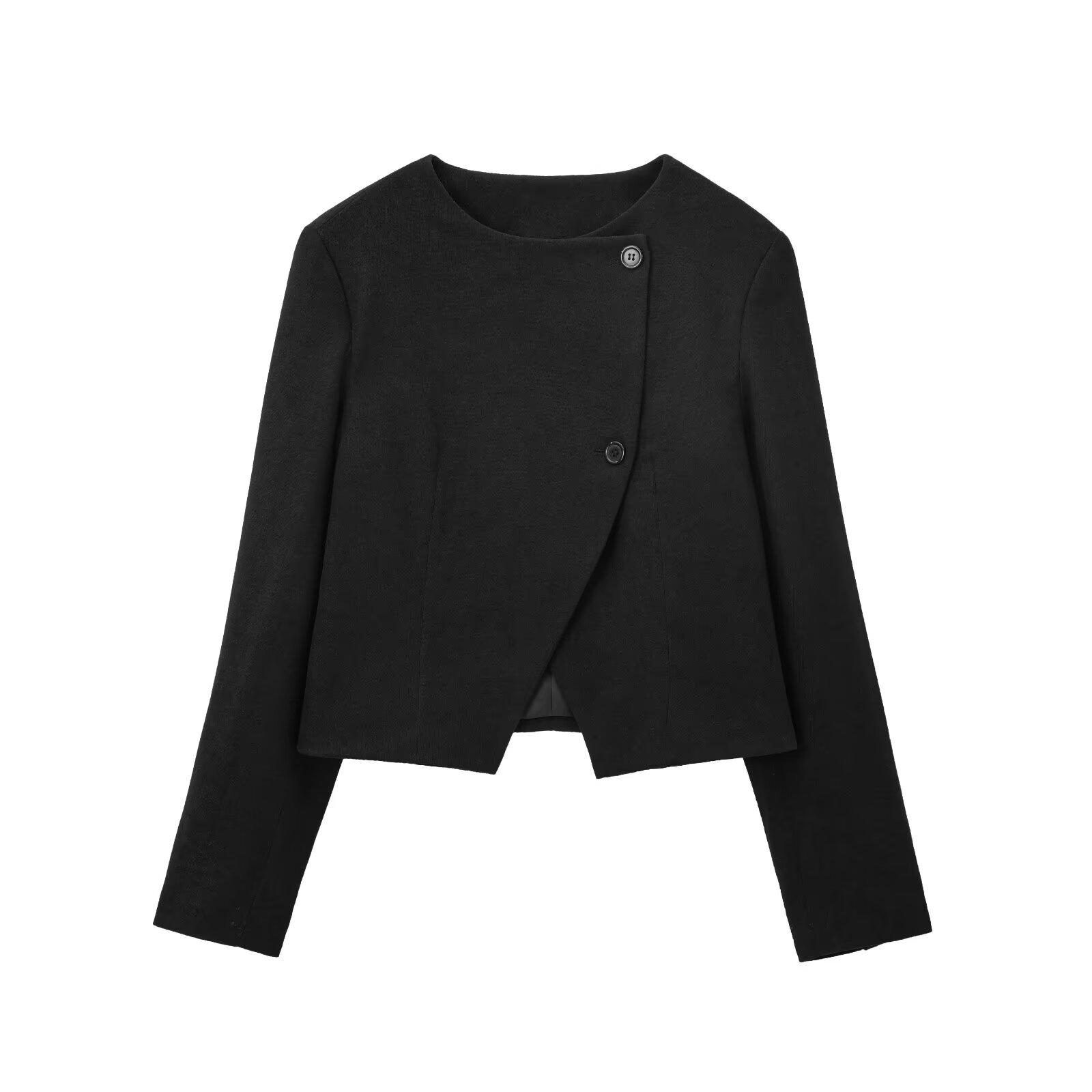 Ropa Europea y Americana Transfronteriza Aliexpress Producto Nuevo Caliente Cuello Redondo Estilo Simple Versátil Solapa Inclinada Chaqueta Corta