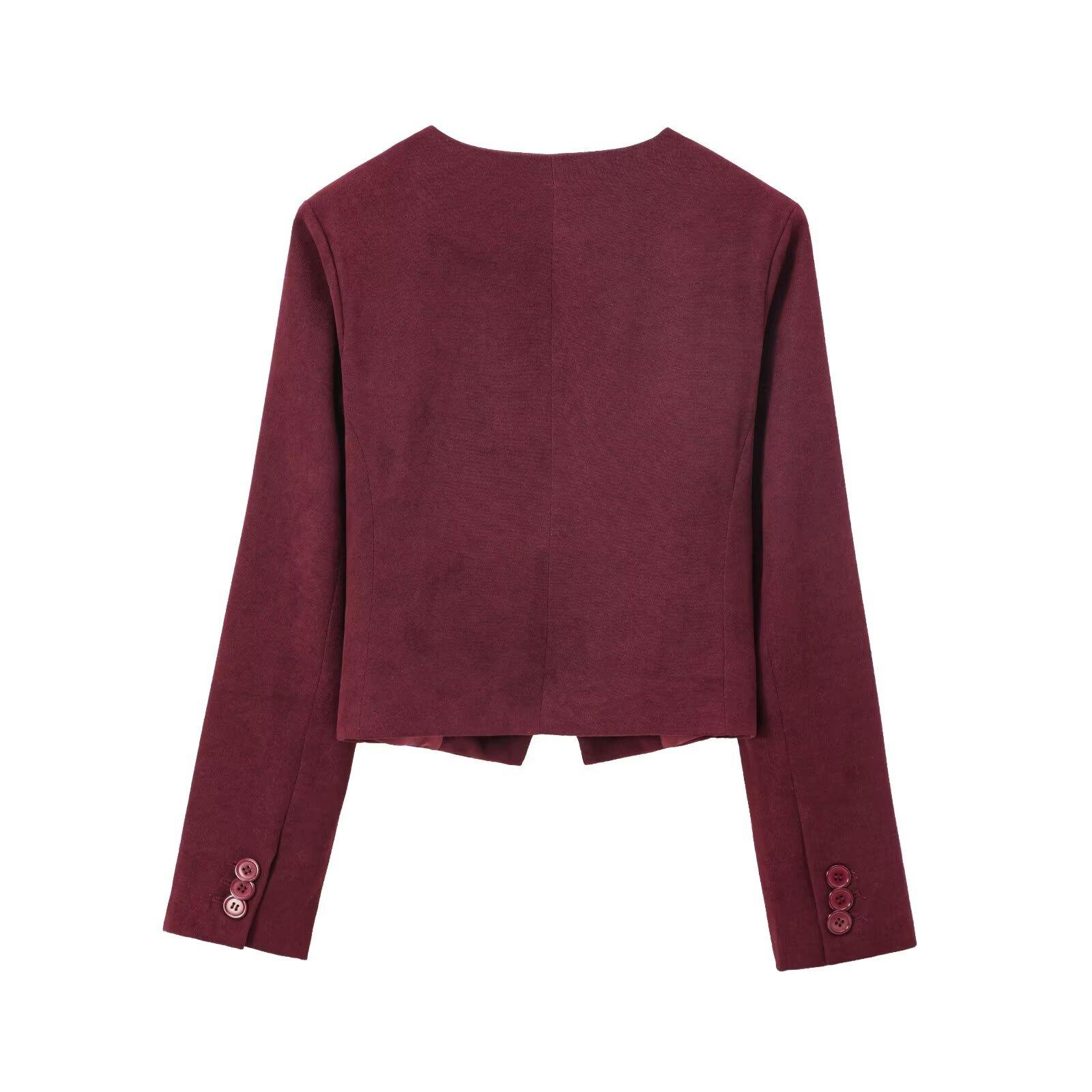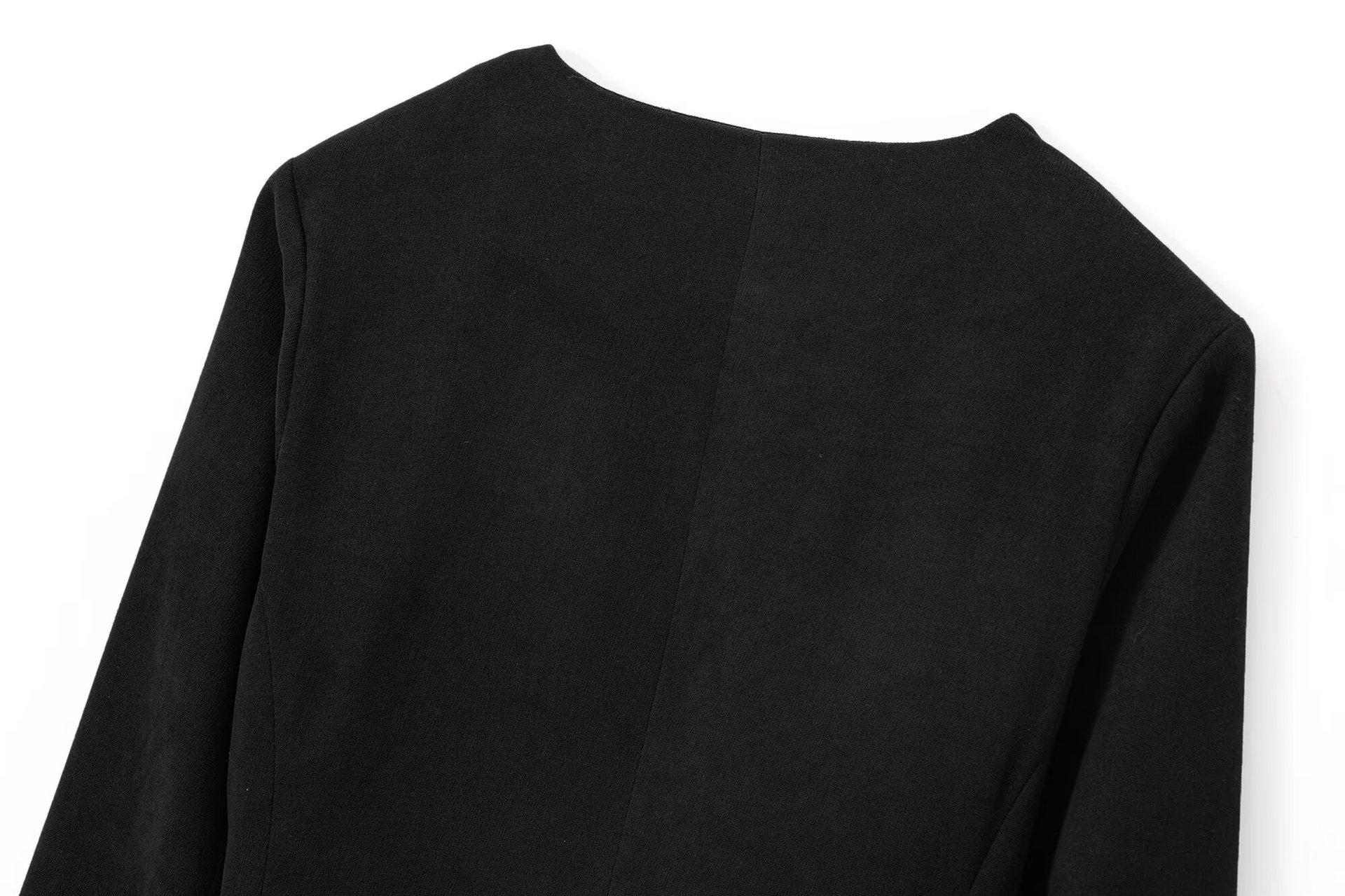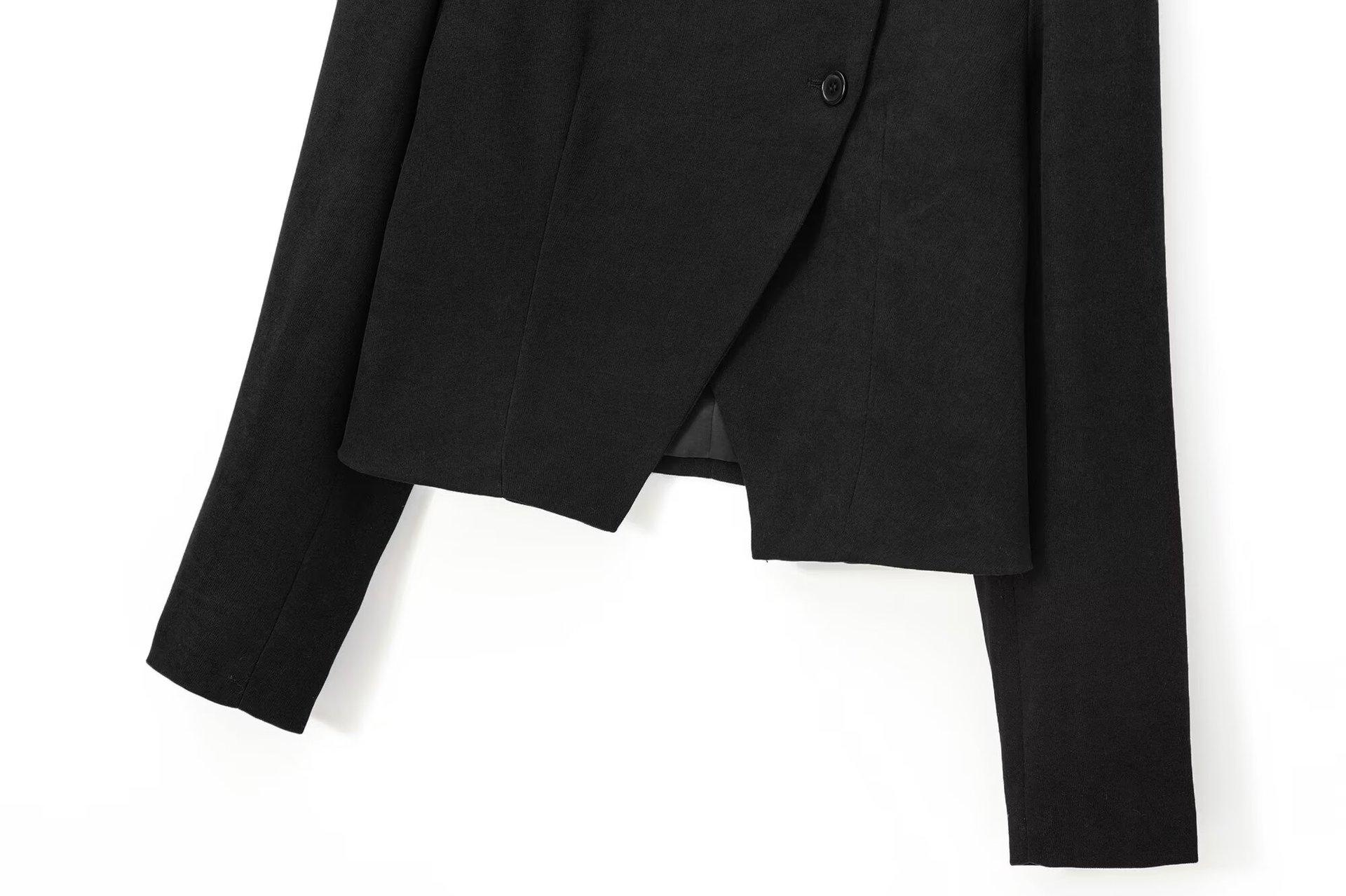 Ropa Europea y Americana Transfronteriza Aliexpress Producto Nuevo Caliente Cuello Redondo Estilo Simple Versátil Solapa Inclinada Chaqueta Corta