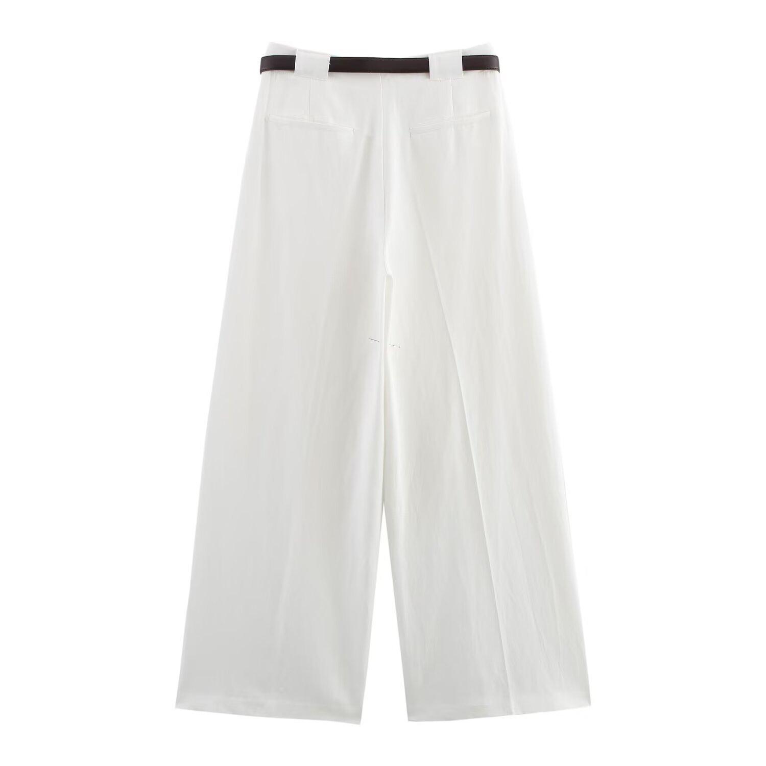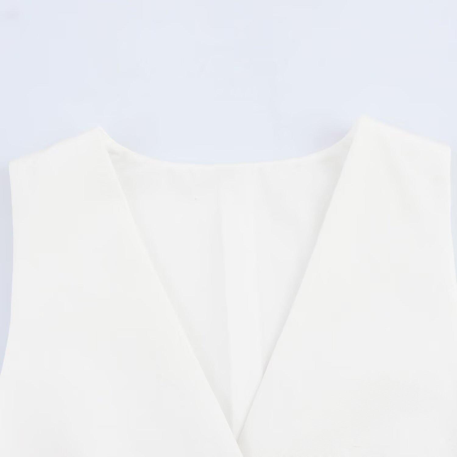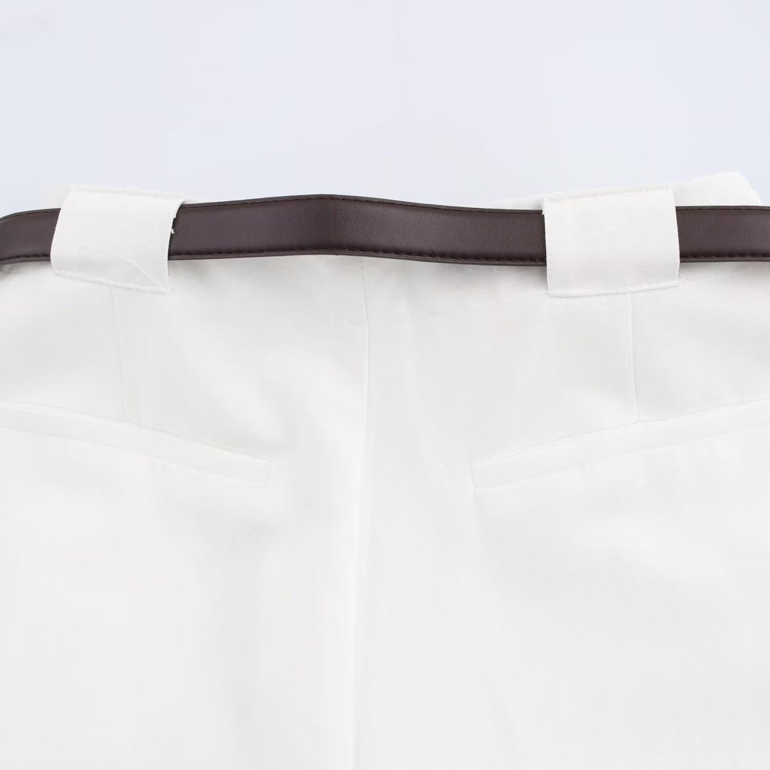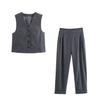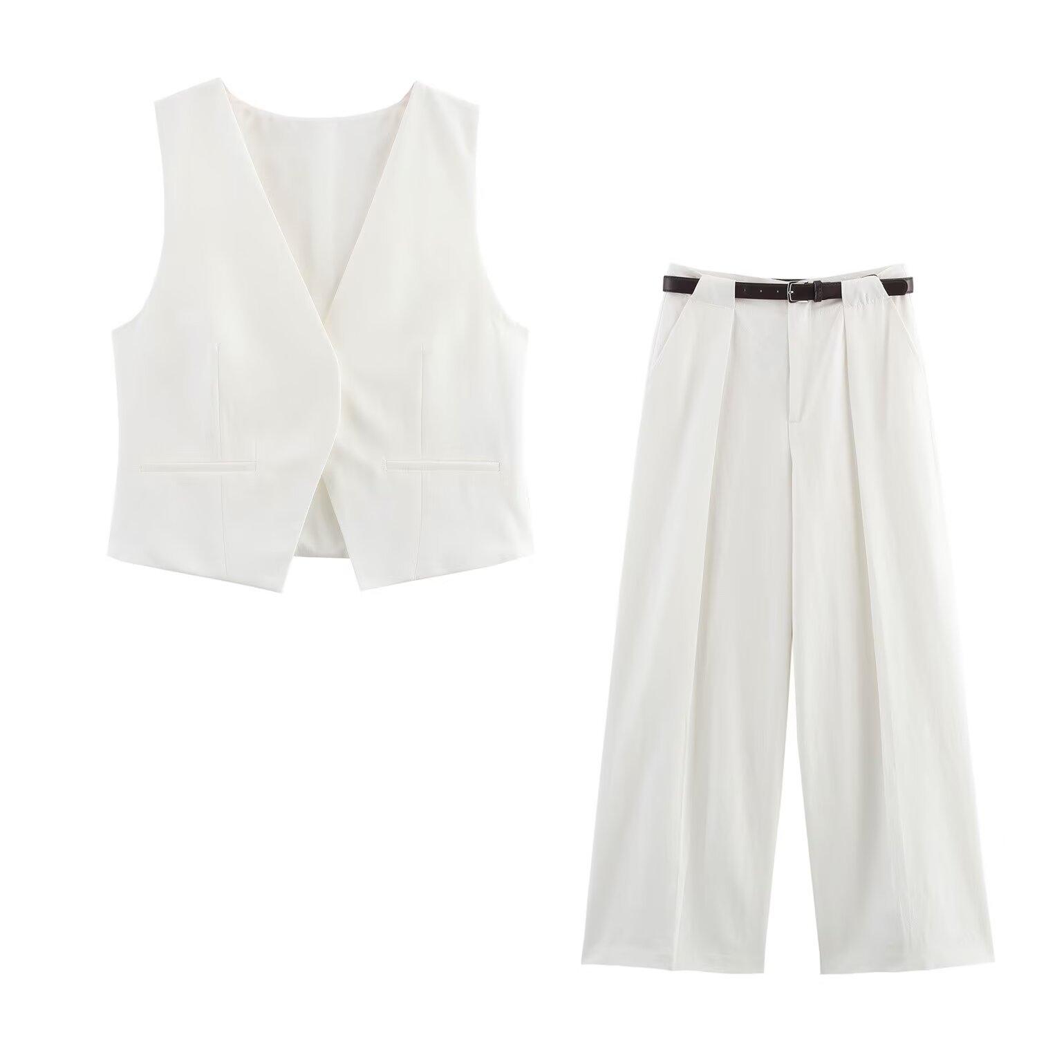 Estilo Europeo y Americano Ropa de Mujer de Comercio Exterior Popular Transfronteriza Chaleco de Bolsillo Único + Pantalones Plisados con Cinturón