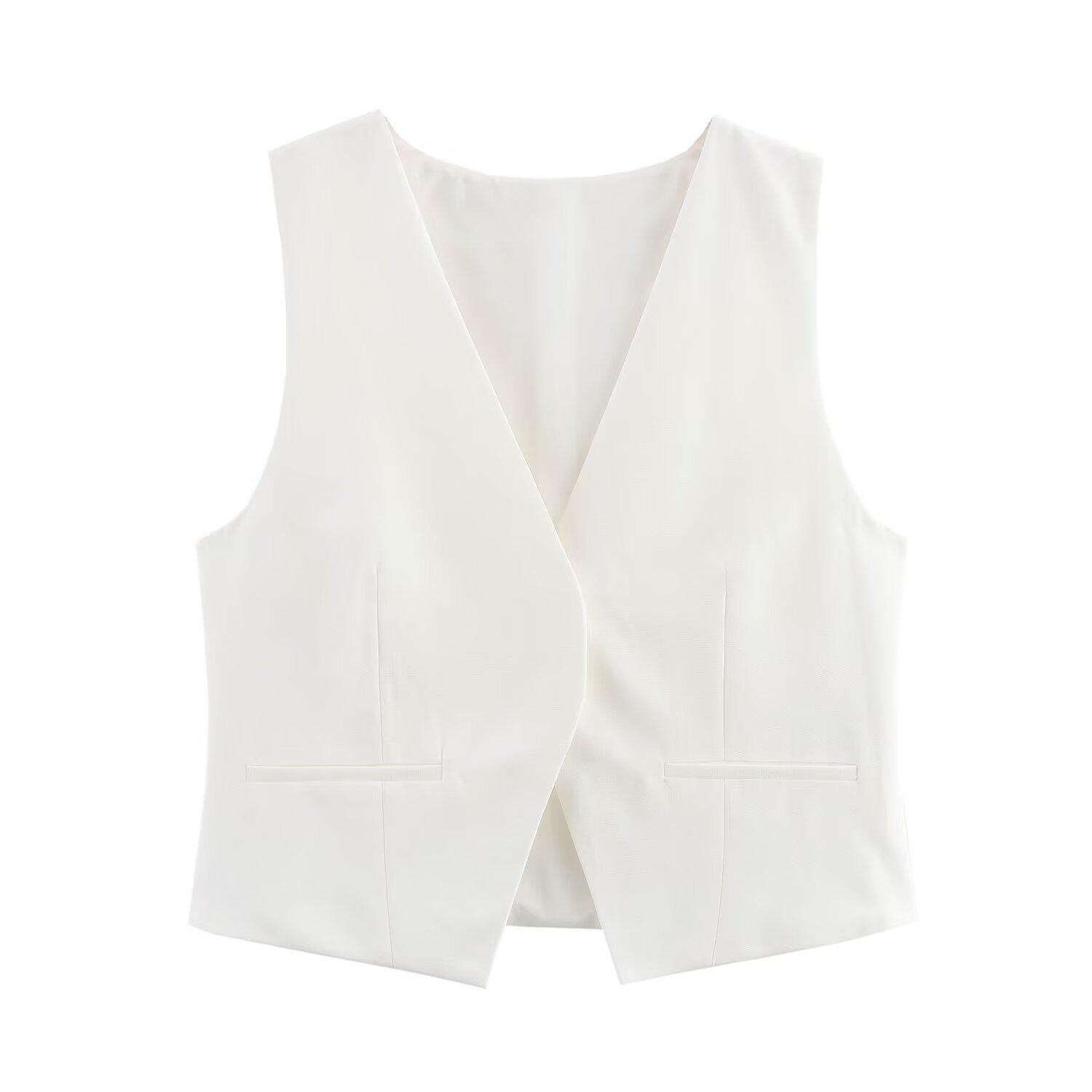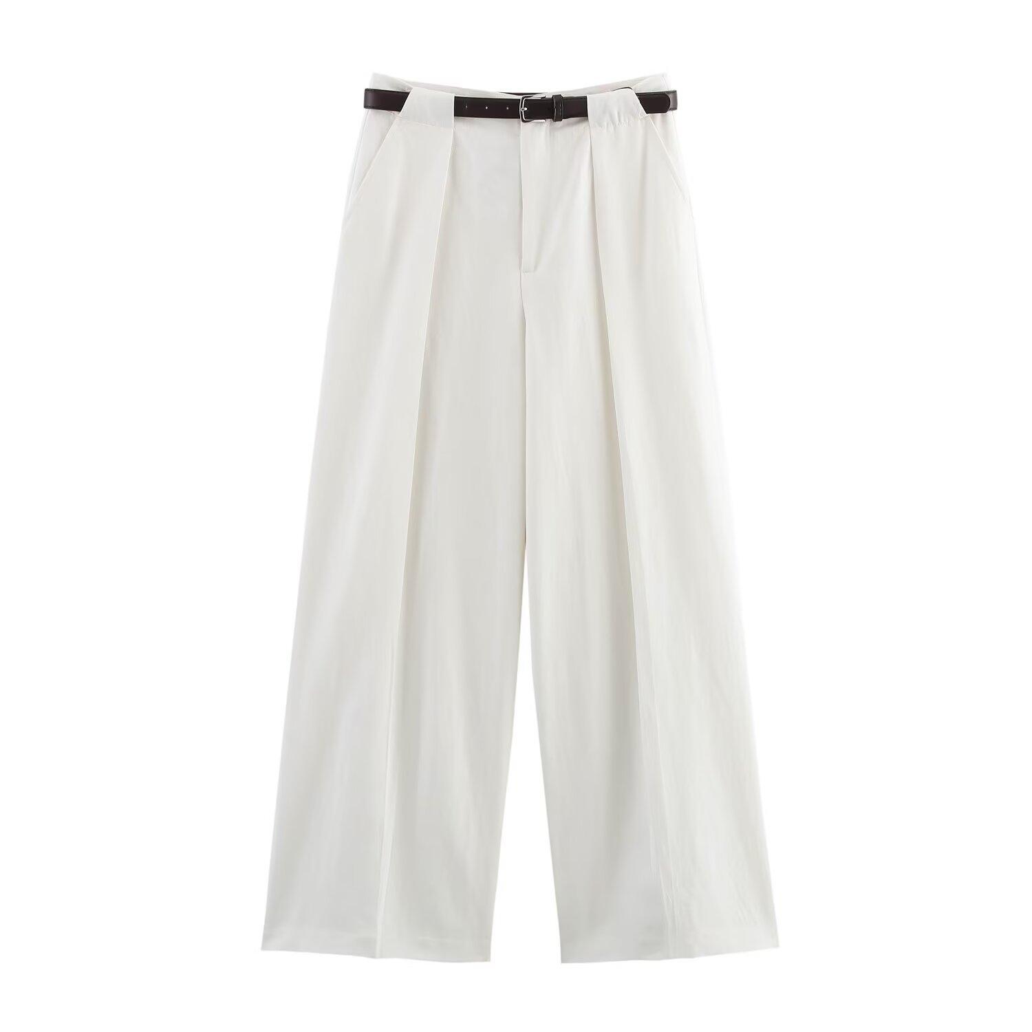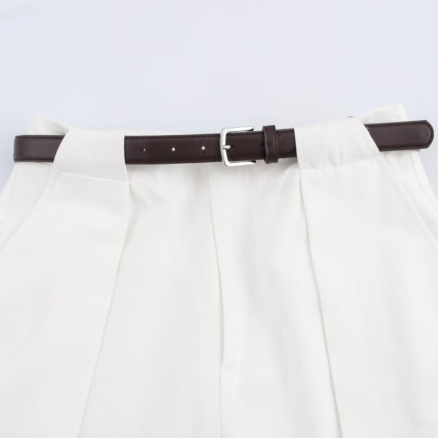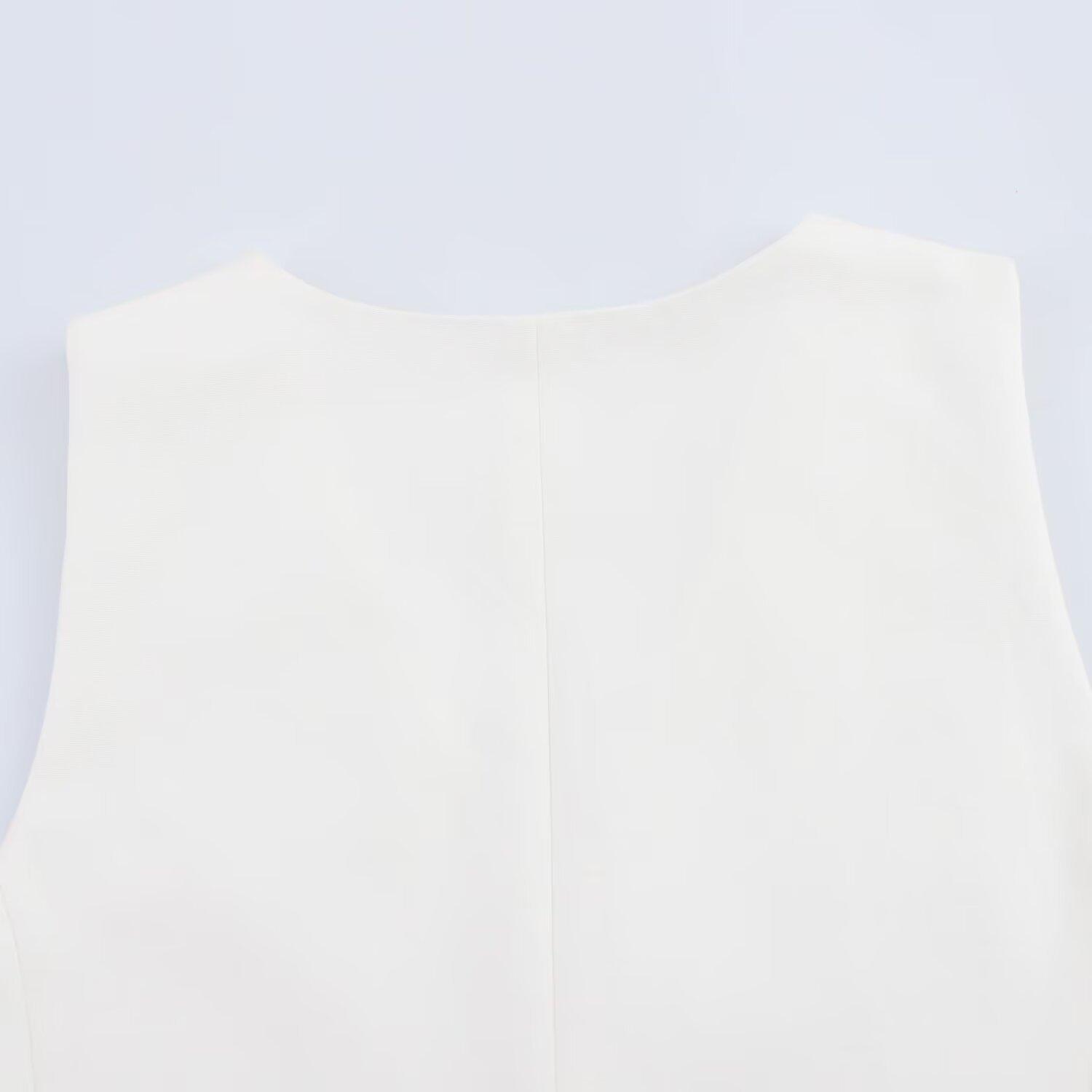 Estilo Europeo y Americano Ropa de Mujer de Comercio Exterior Popular Transfronteriza Chaleco de Bolsillo Único + Pantalones Plisados con Cinturón