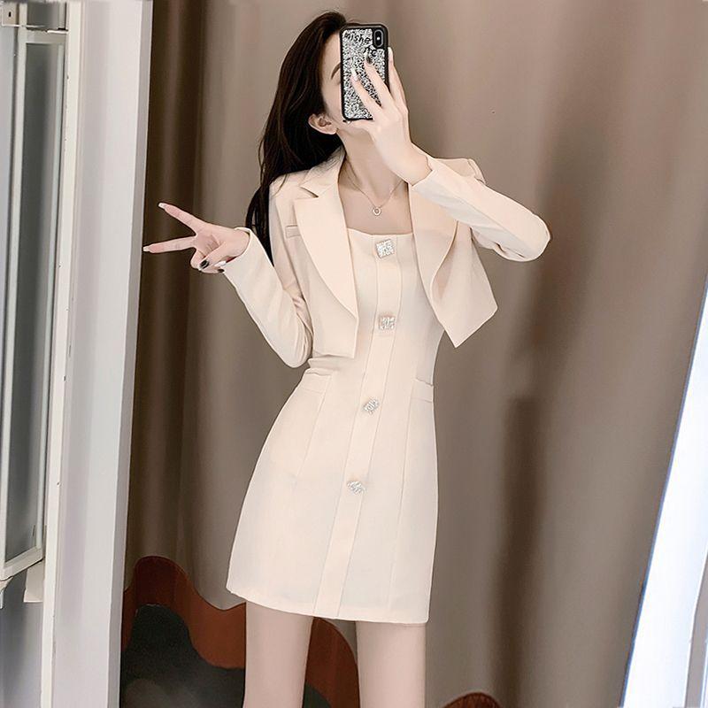 Temperamento Otoñal Nuevo Producto Conjunto de Traje de Chica Hot Mujeres Estilo Urbano Reductor de Edad Moda Nuevo Producto Vestido con Tirantes Conjunto de Dos Piezas