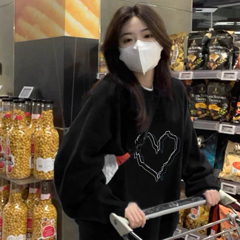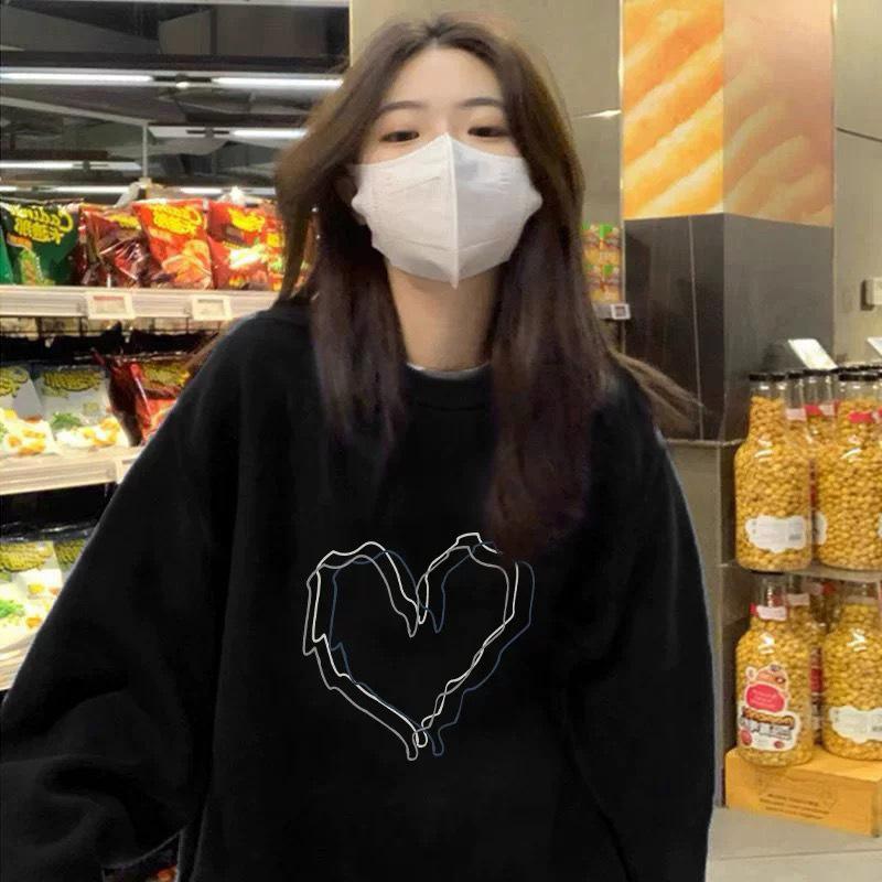 2025 Top de Manga Larga para Influencer Largo Medio Suelto Diseño de Cuello Redondo con Corazón Sudadera de Alta Gama para Mujer
