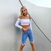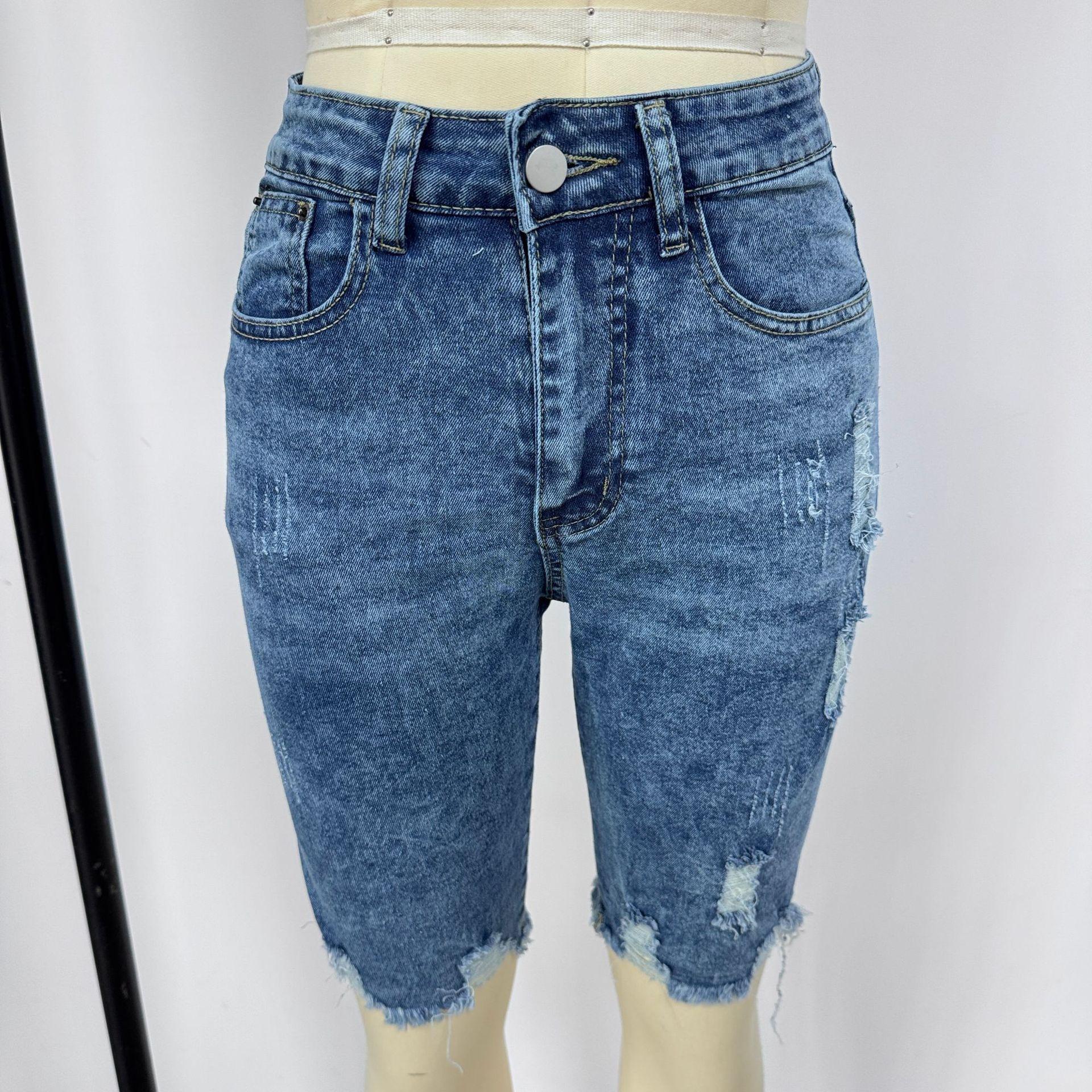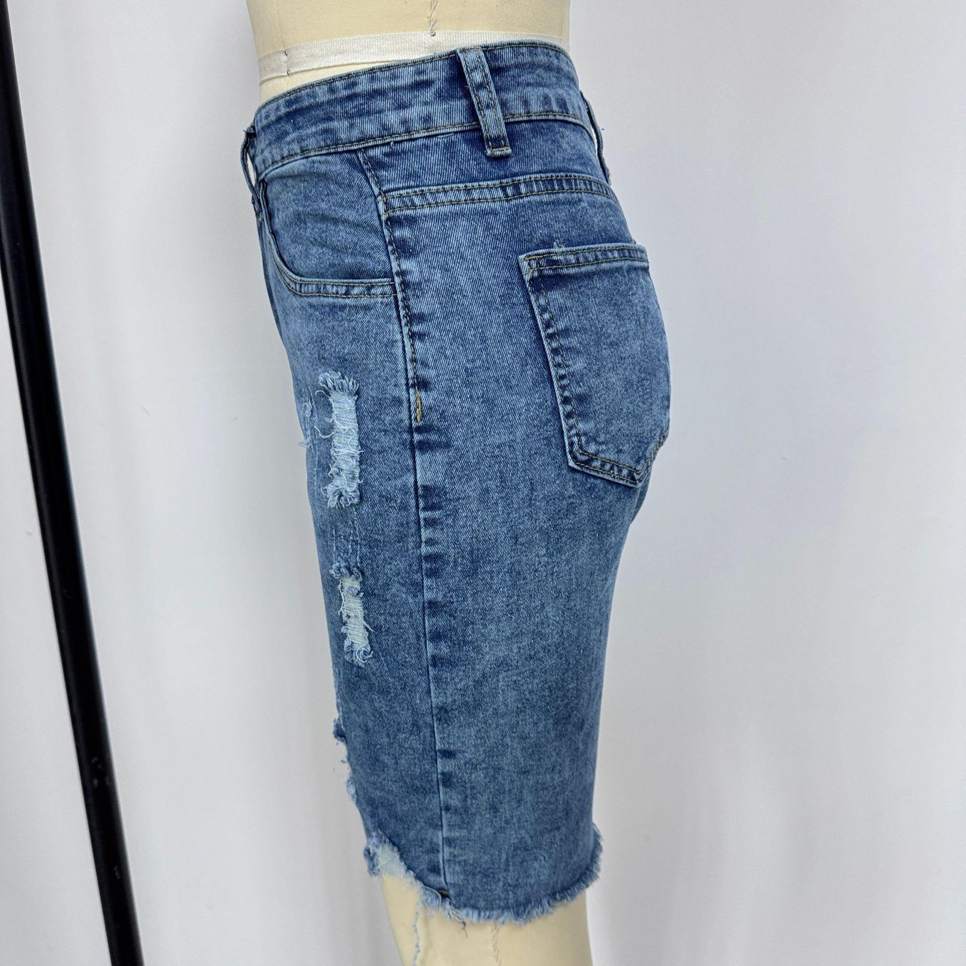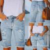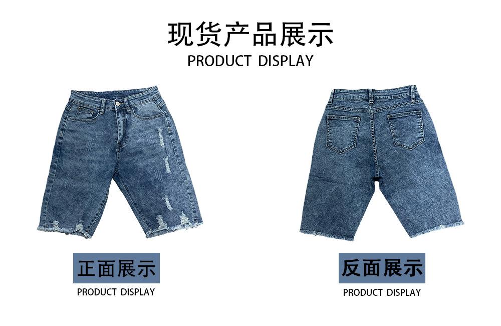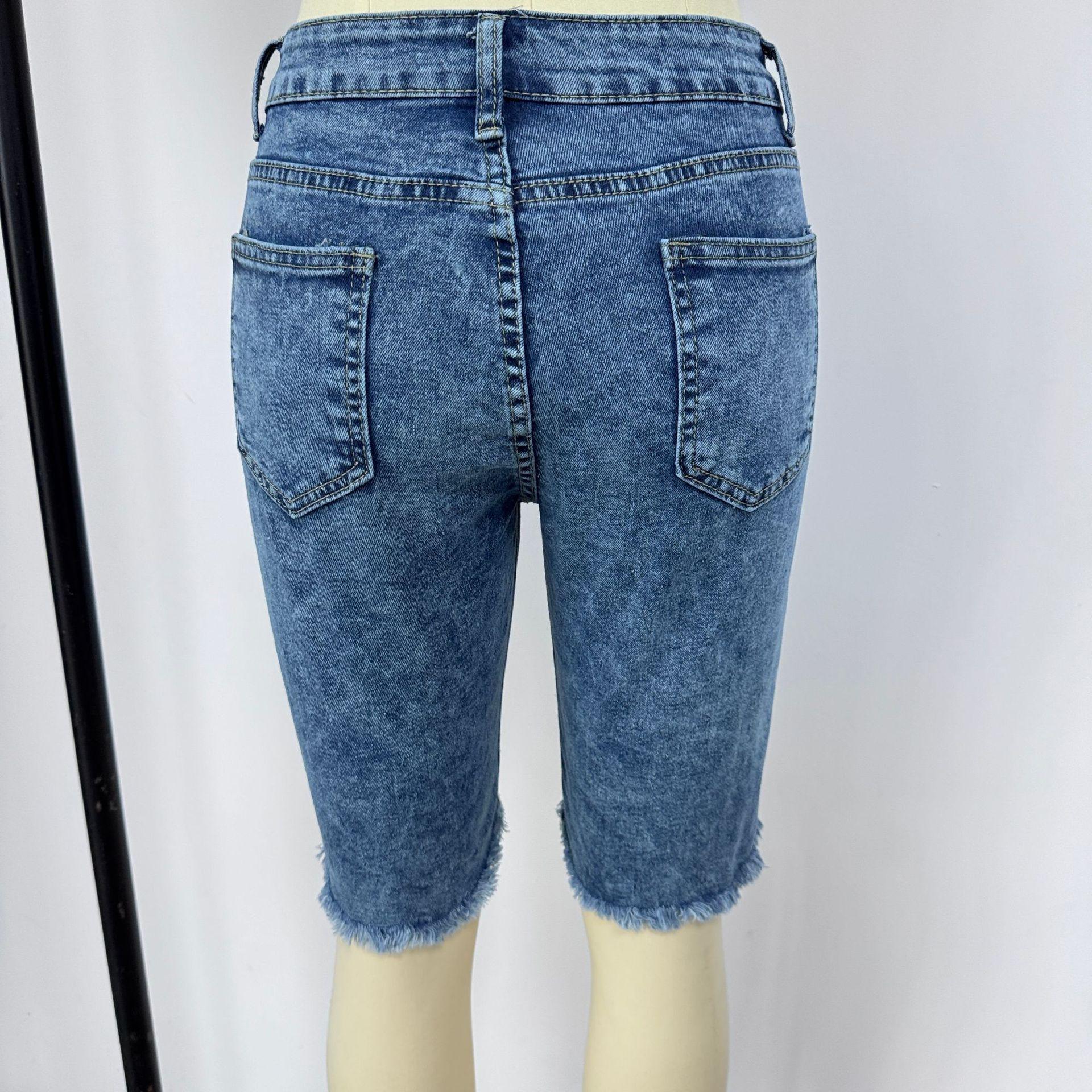 Europeo y Americano Verano Nuevo Transfronterizo Amazon Denim Rotos Pantalones Cinco Puntos Wish Moda Flecos de Borde Crudo Jeans para Mujer