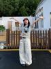Pantalones Cargo Lavados de Bolsillo Grande para Mujer, Pantalones de Paracaidista Retro Americano Plisados, Pantalones Largos Casuales de Pierna Ancha Sueltos con Estilo