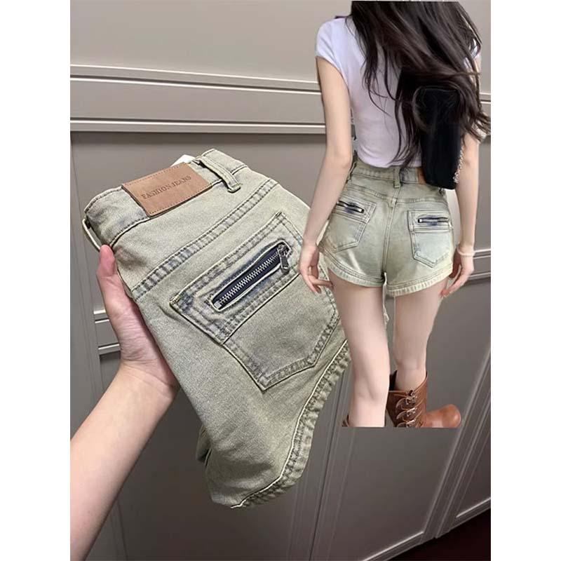 Estilo Americano Chica Caliente Cintura Alta Elegantes Shorts de Mezclilla para Mujer Verano Nicho Sexy Elásticos Adelgazantes Rectos A-line Pantalones Calientes Trendy