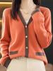 Cardigan de Cachemir con Bloques de Color Estilo Coreano y Cuello en V para Mujer Otoño 2025 Nuevo Suéter de Punto de Lana Holgado para Mujer