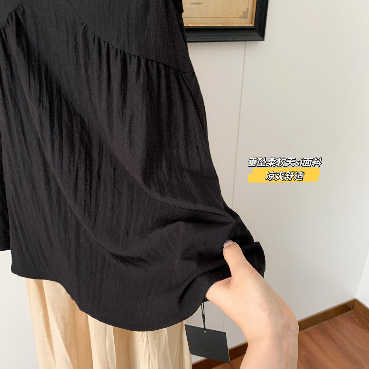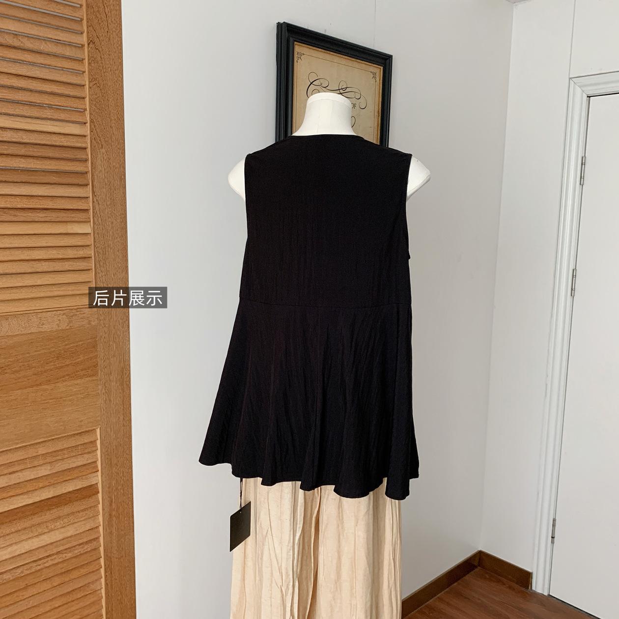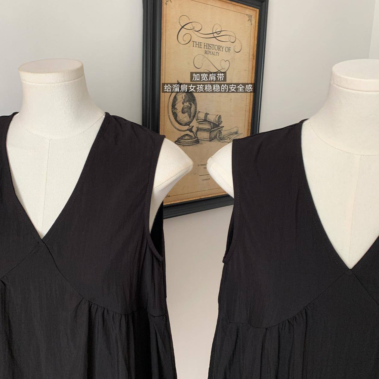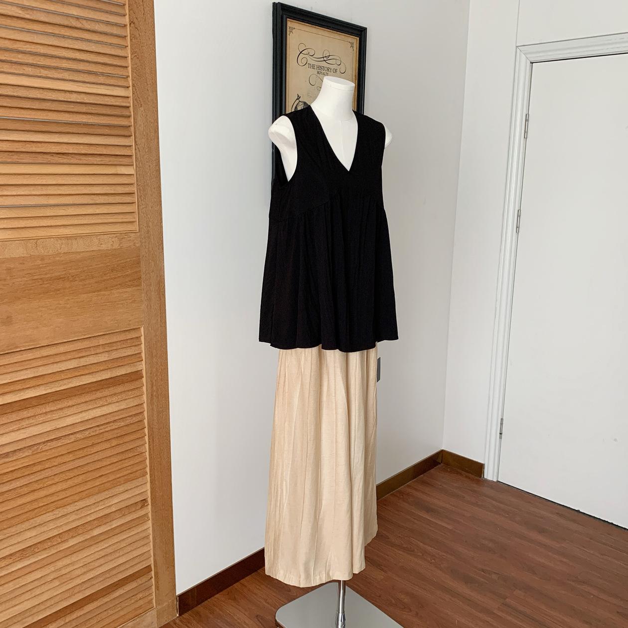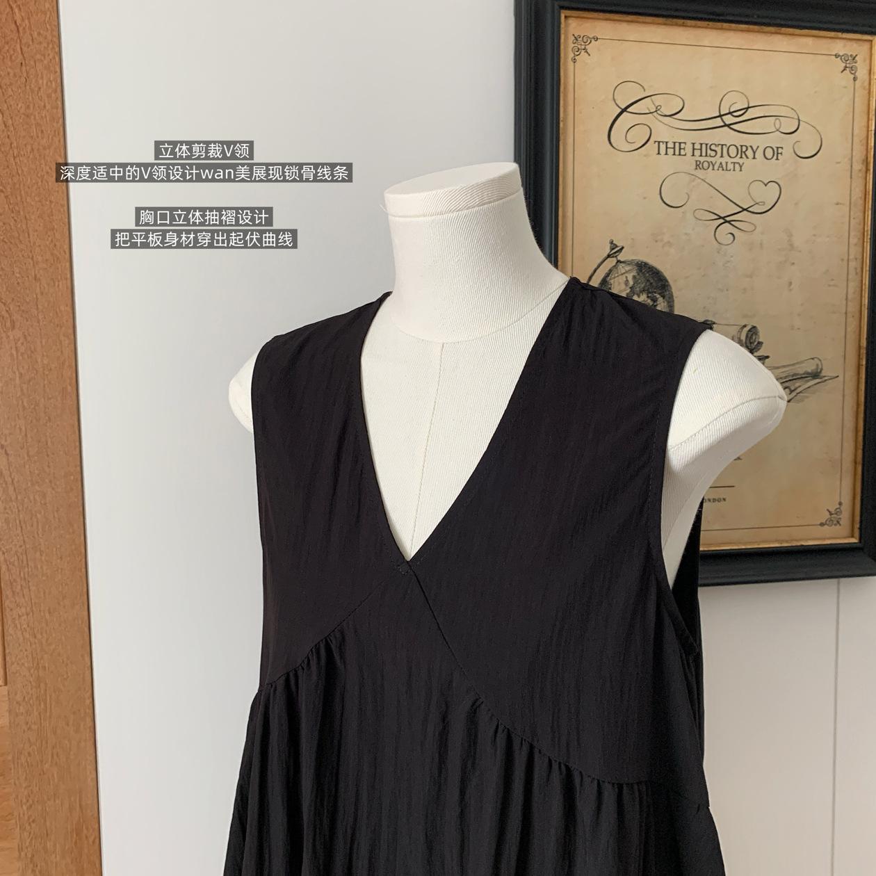 Chaleco Camiseta Negra de Cuello en V Sin Mangas para Mujer Verano Casual Suelto Entallado Plisado Babydoll