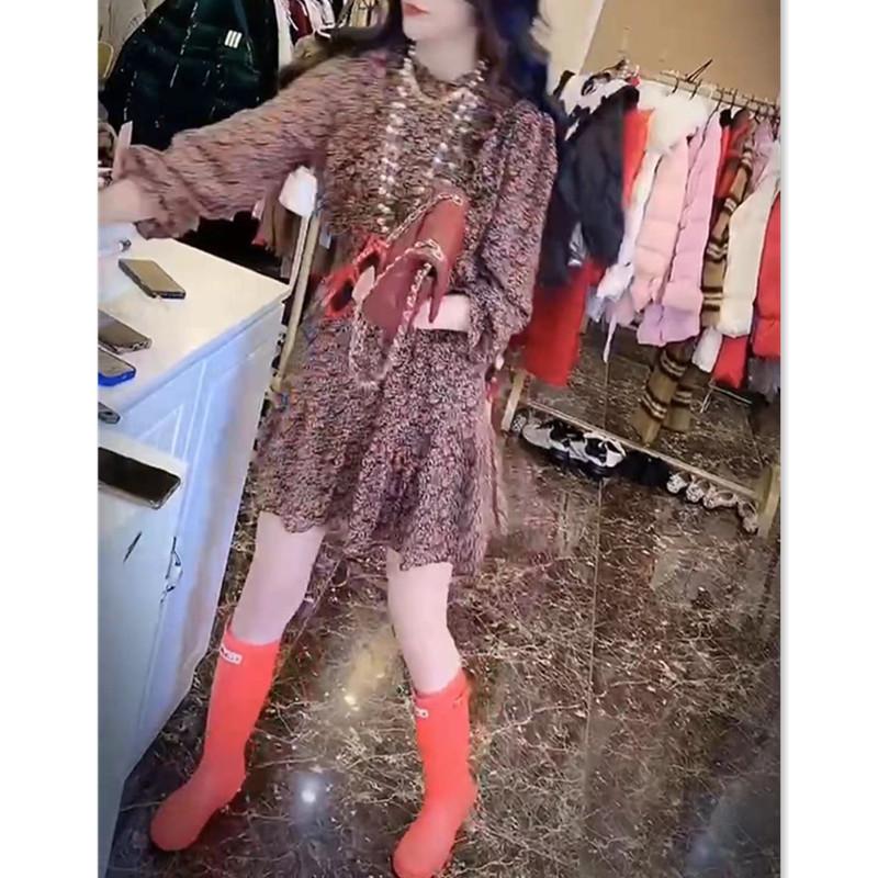 88228 Big Aimei Yiyuan 2023 Primavera y Verano Nuevo Vestido Floral de Largo Medio Vestido Ajustado de Moda