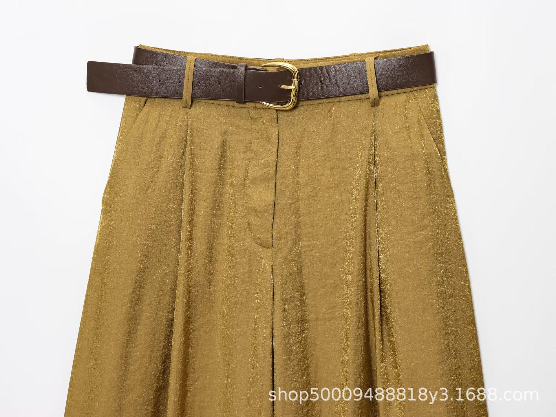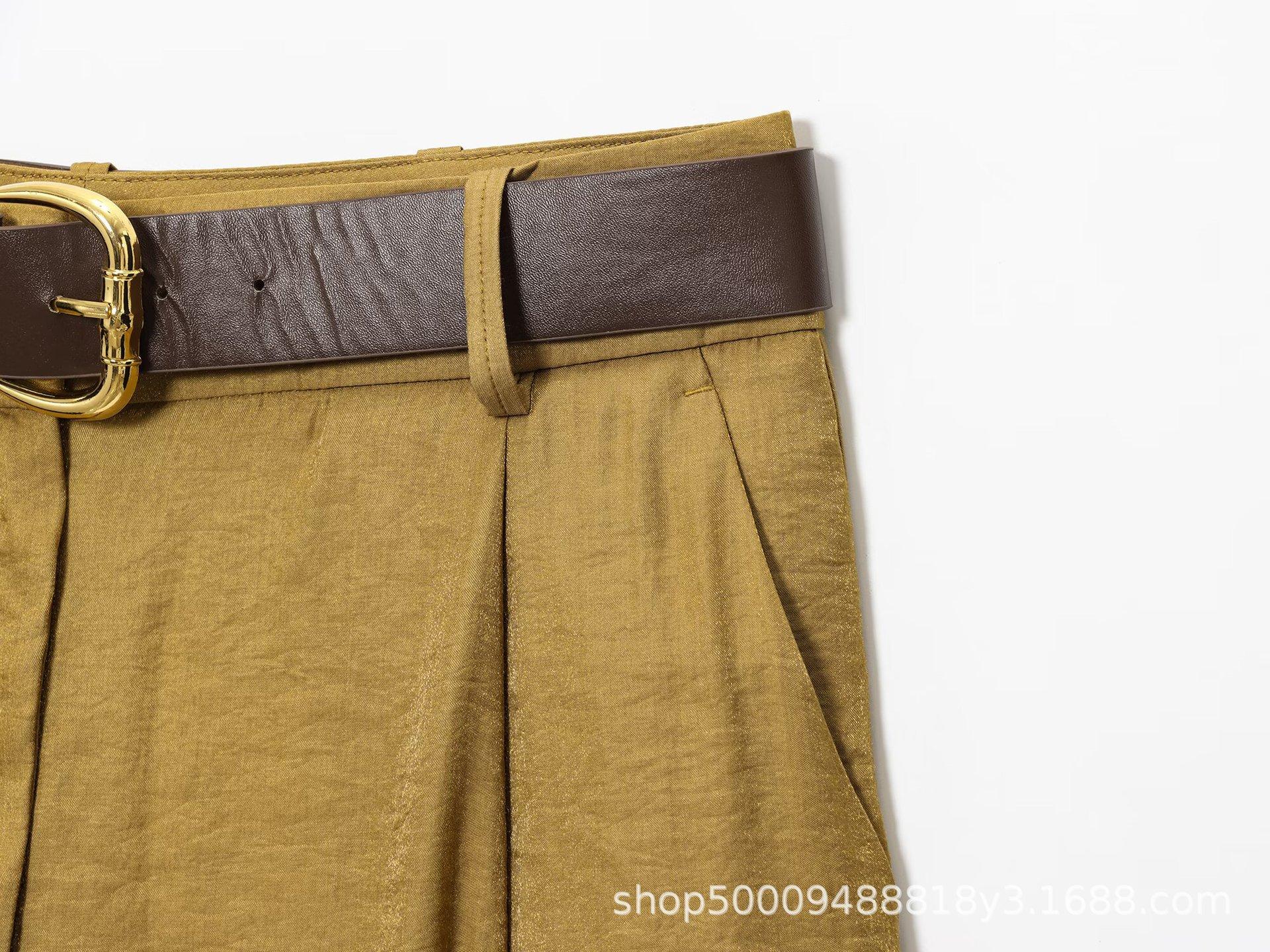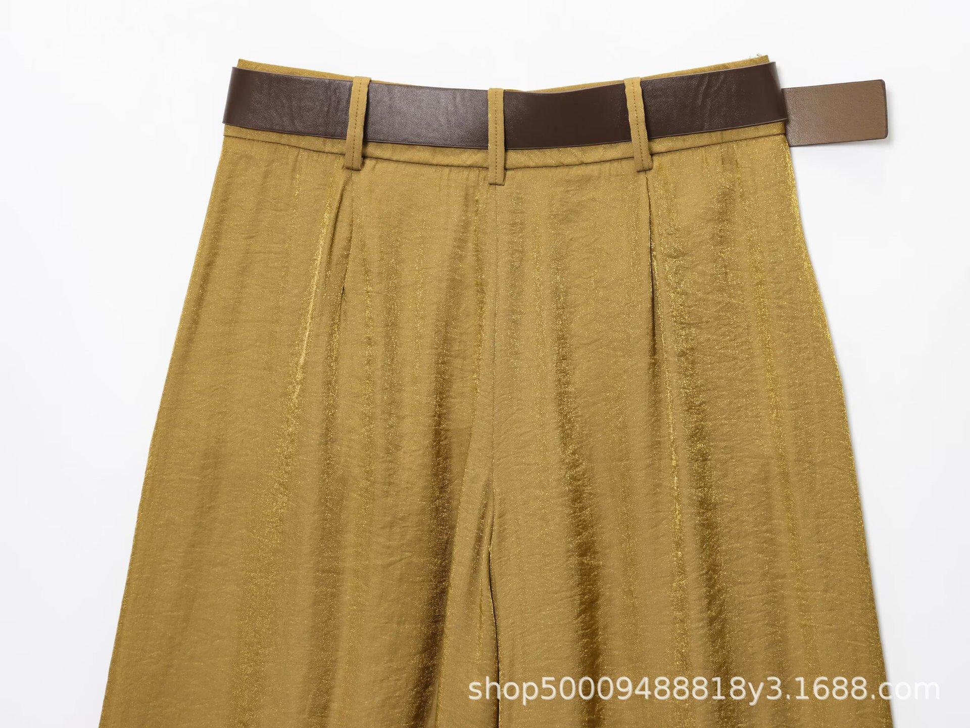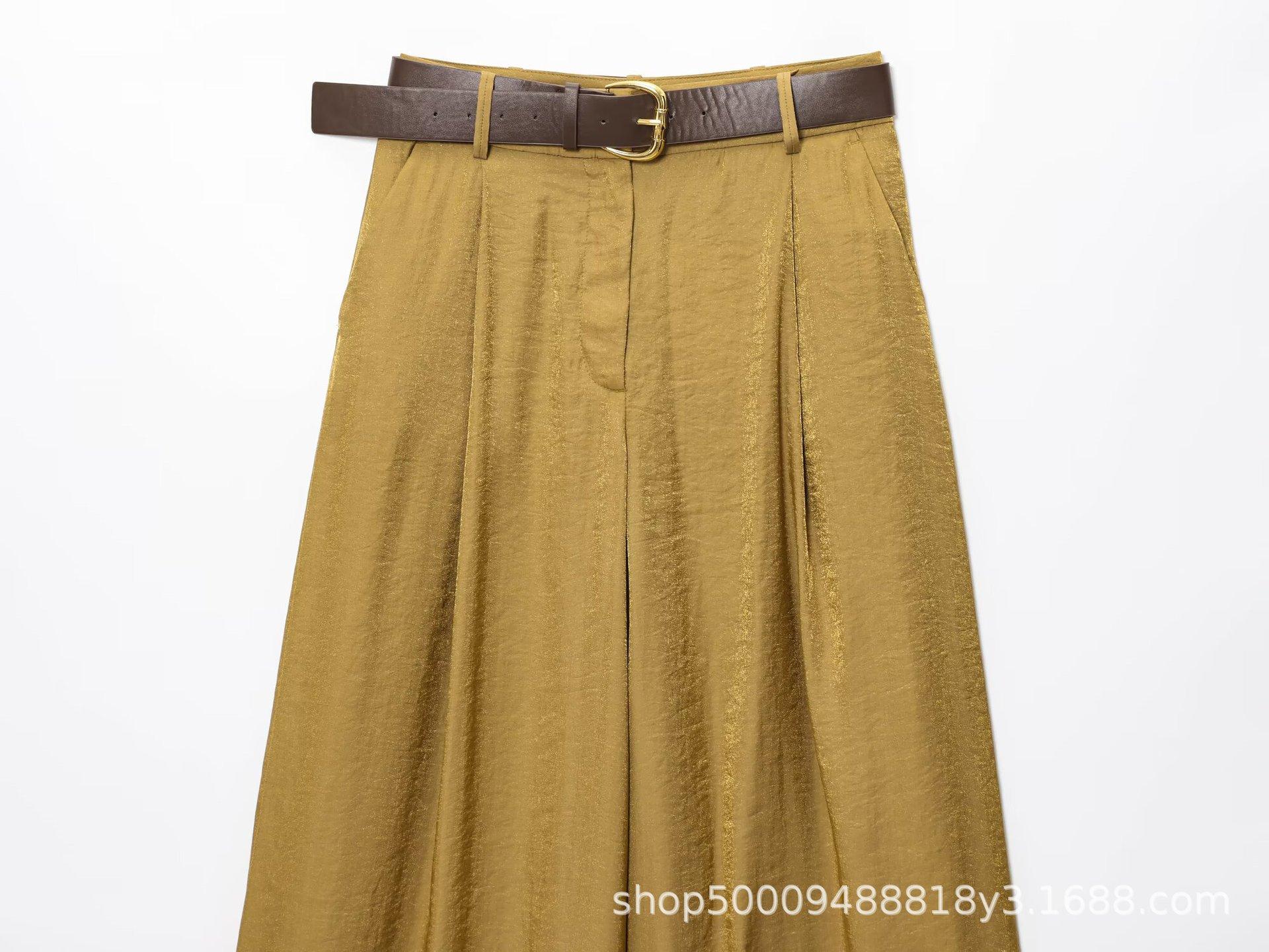 Exportación Transfronteriza 2025 Nuevo Verano para Mujer Estilo Europeo y Americano Pantalones Holgados Slim de Cintura Alta Drapeados de Pierna Ancha con Cinturón