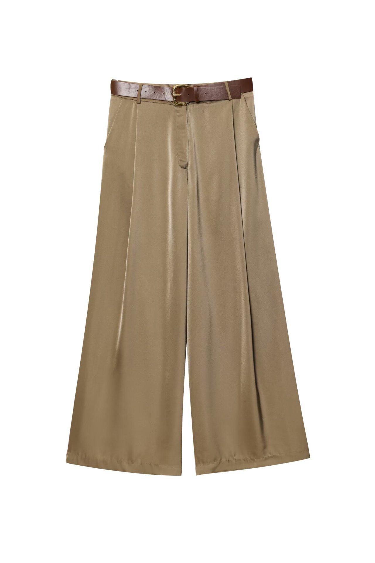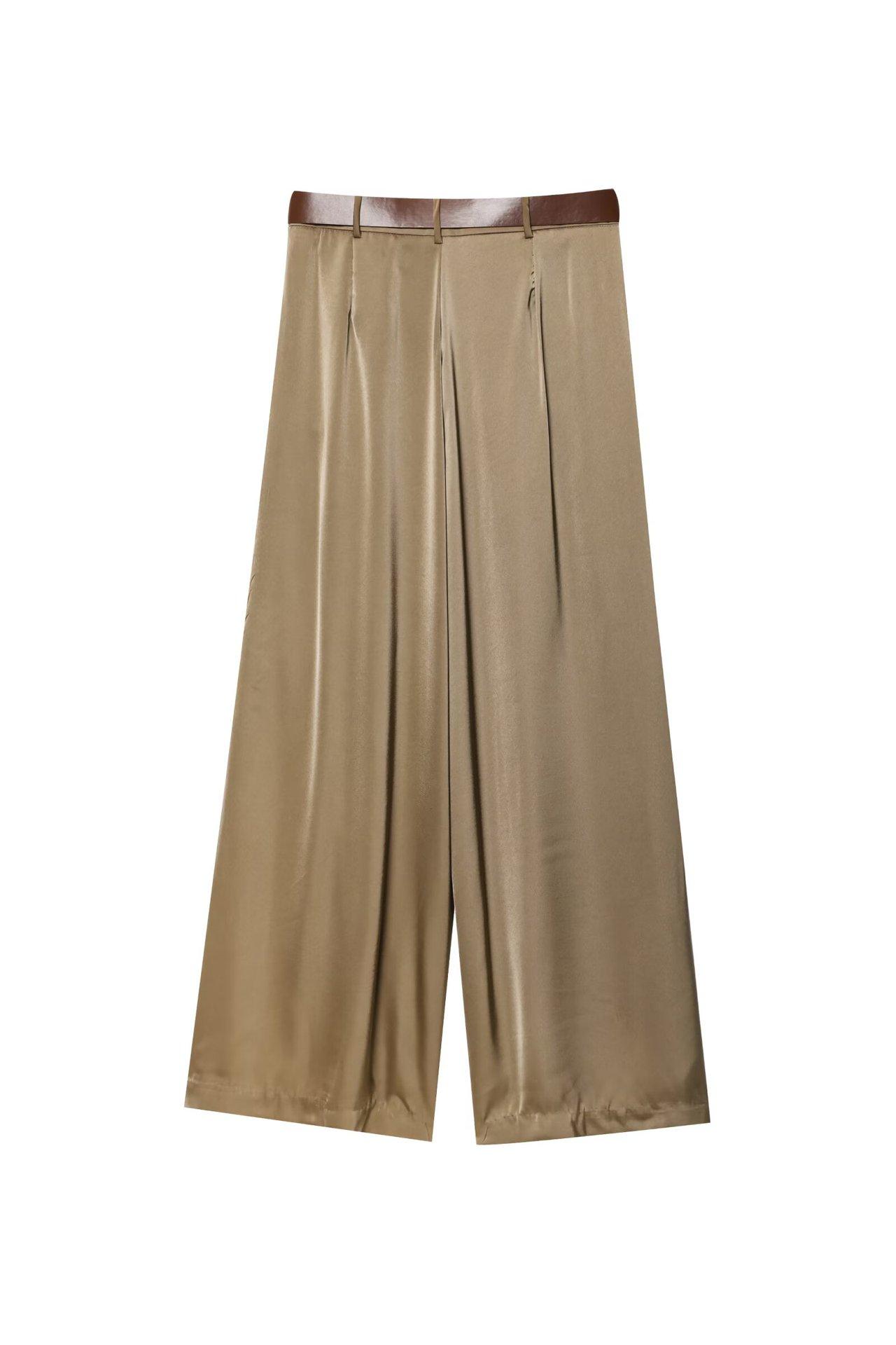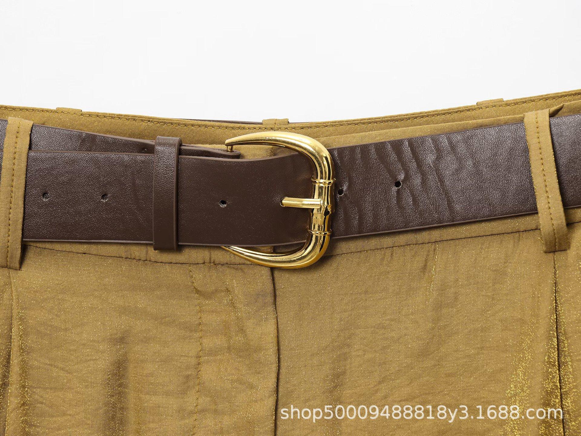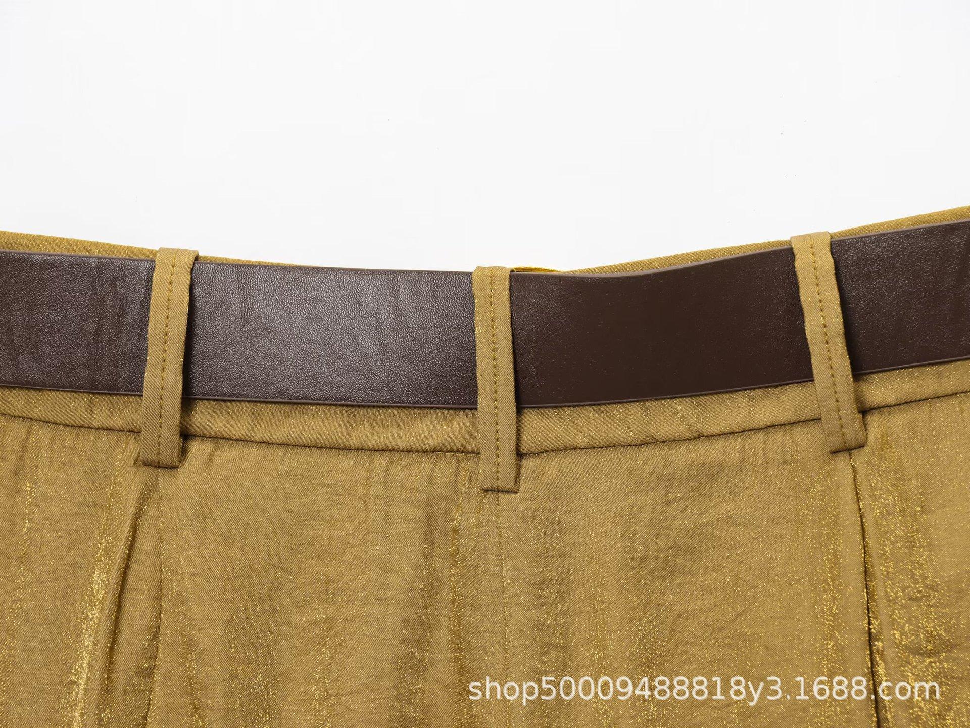 Exportación Transfronteriza 2025 Nuevo Verano para Mujer Estilo Europeo y Americano Pantalones Holgados Slim de Cintura Alta Drapeados de Pierna Ancha con Cinturón