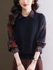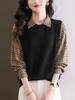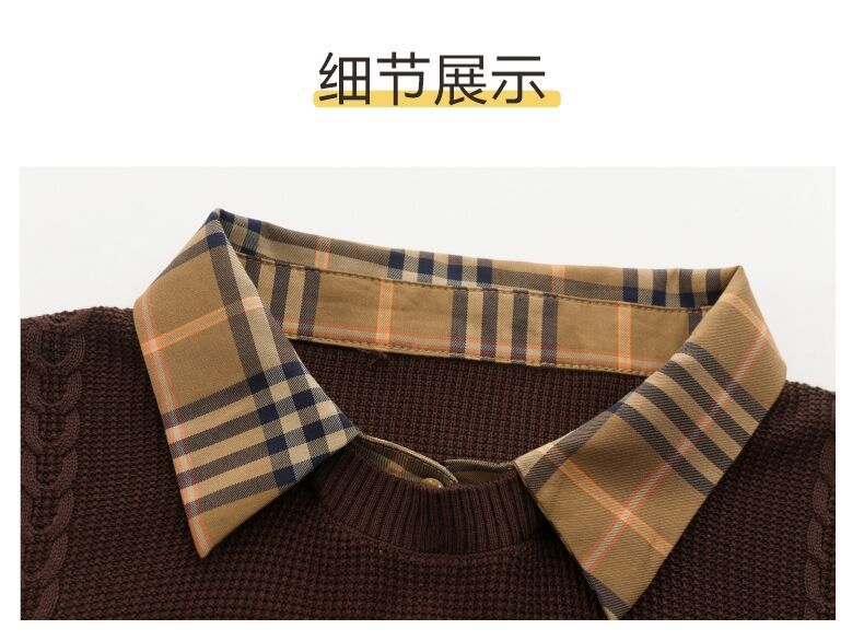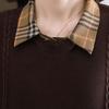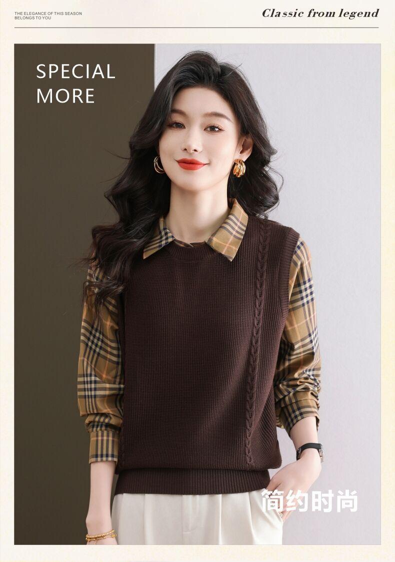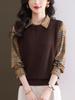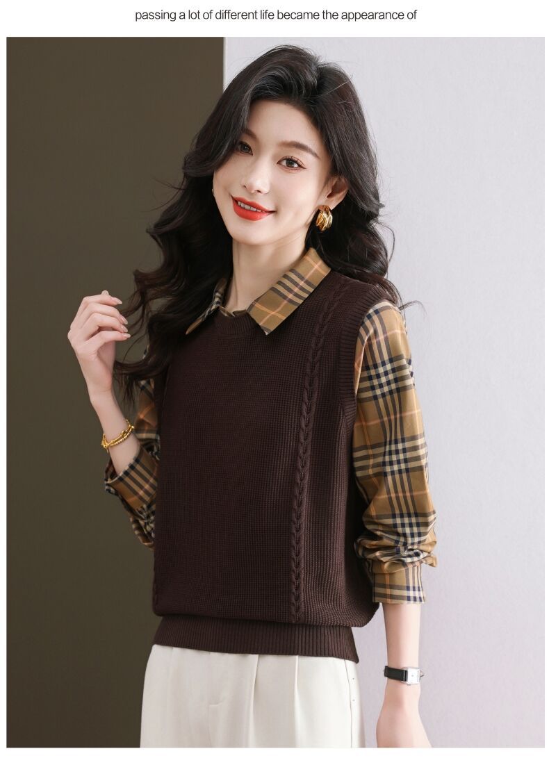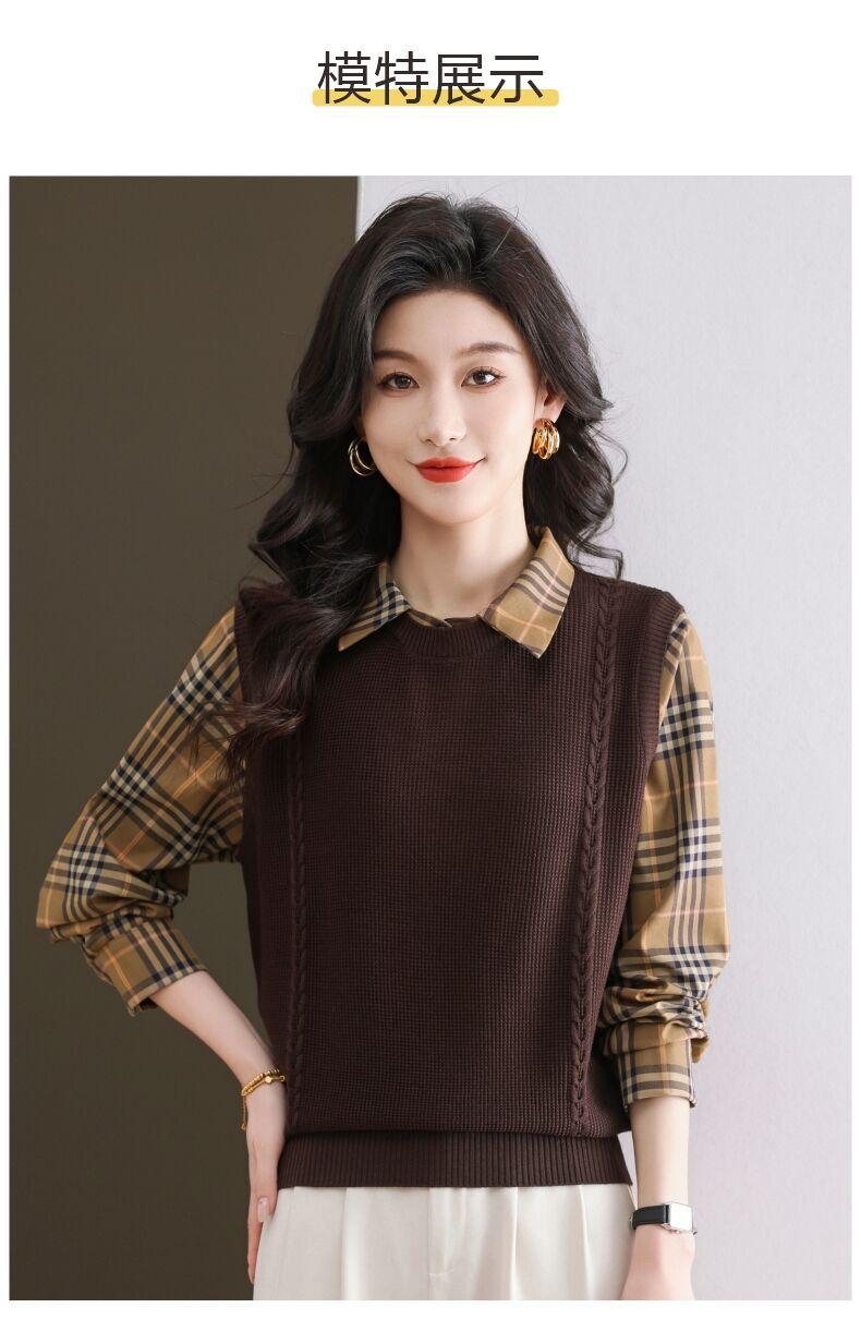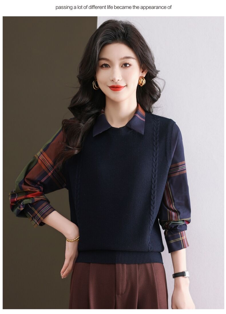 Suéter de Punto Falso de Dos Piezas para Mujer 2025 Otoño Nuevo Top de Solapa Diseño Nicho Bloque de Color a Cuadros Ropa Exterior Suéter