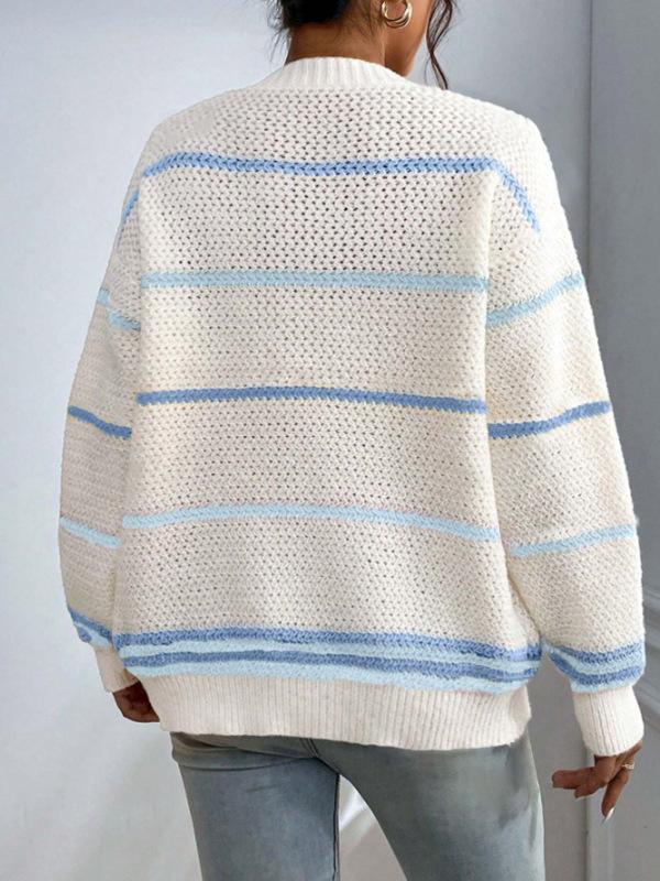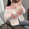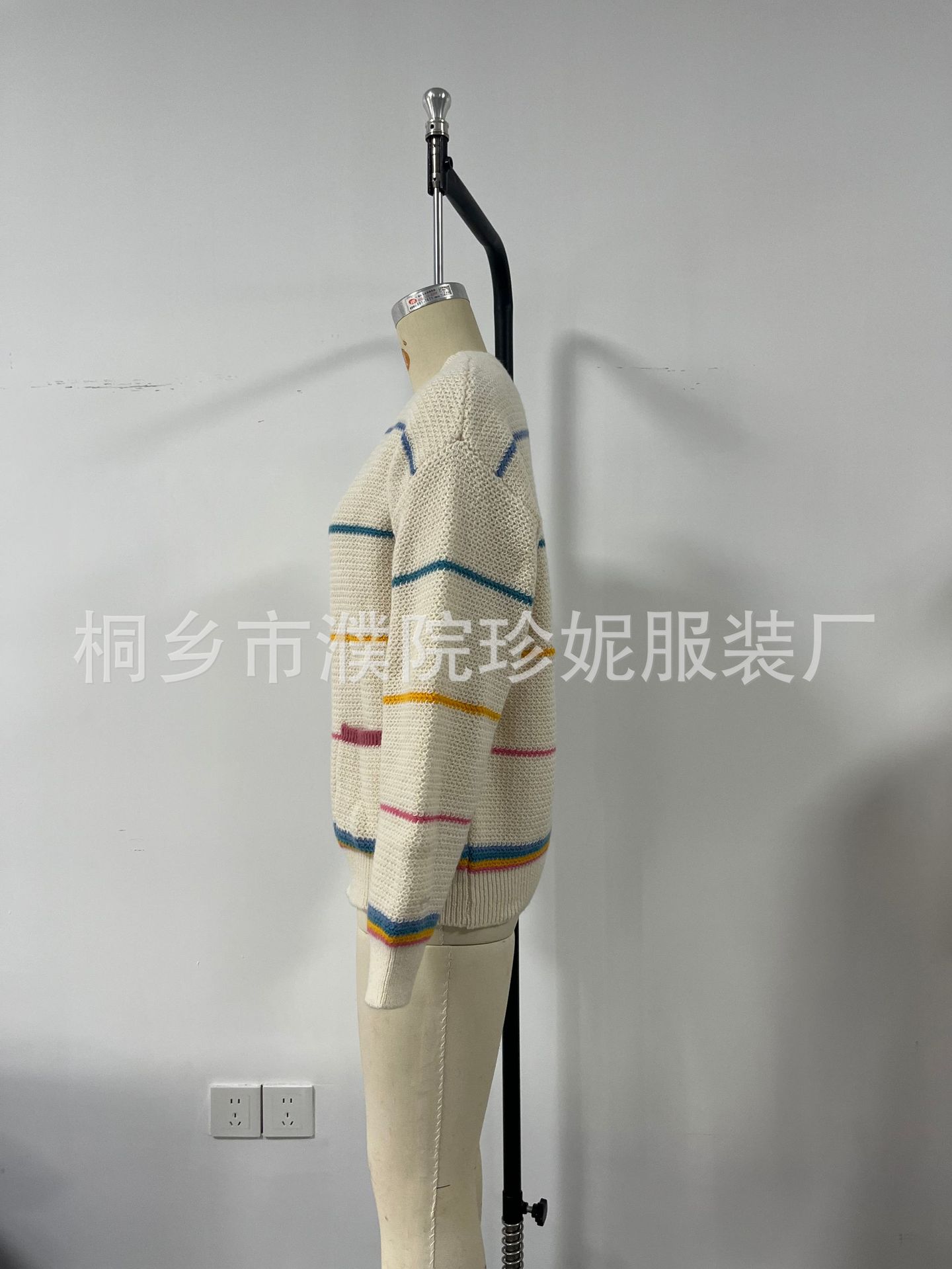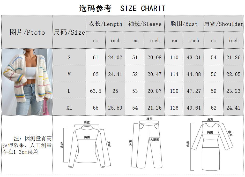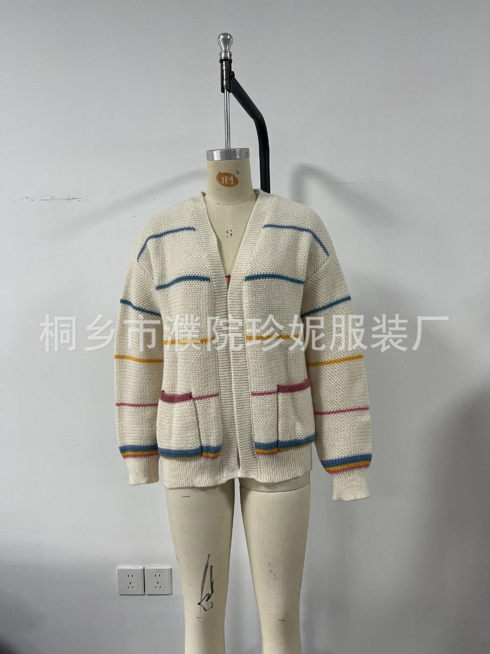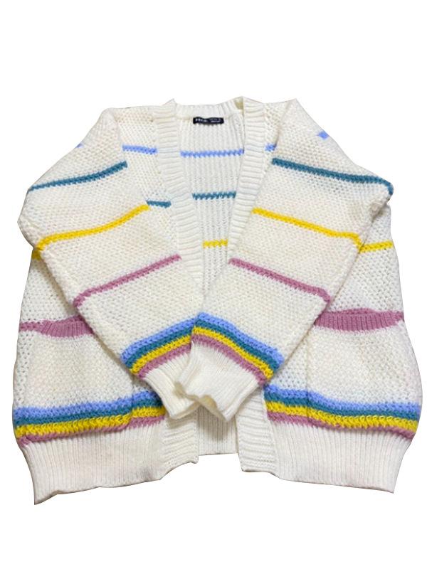 Cárdigan de punto a rayas arcoíris de otoño e invierno Comercio exterior transfronterizo Suéter para mujer Moda Suelto Casual Versátil Chaqueta de punto