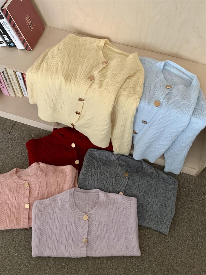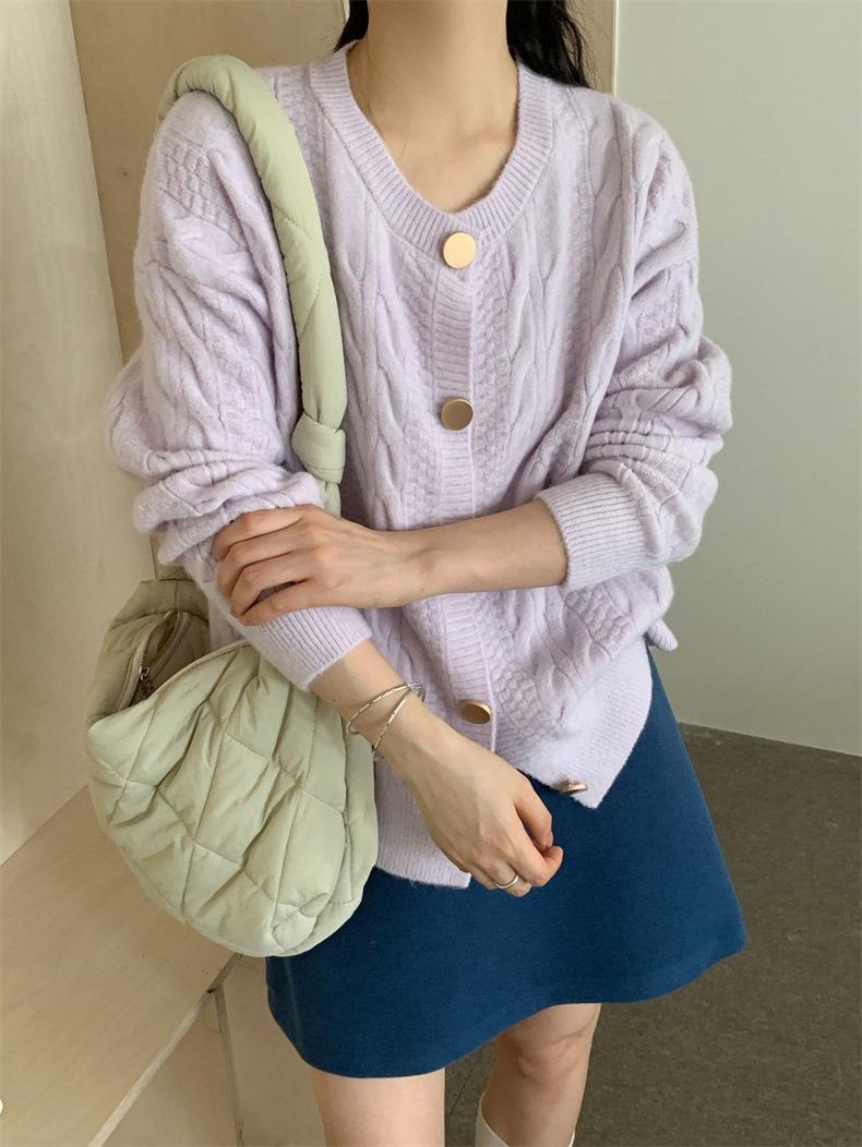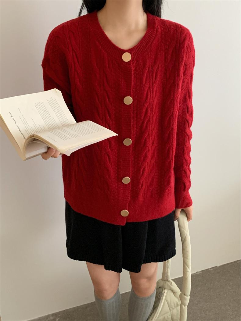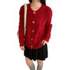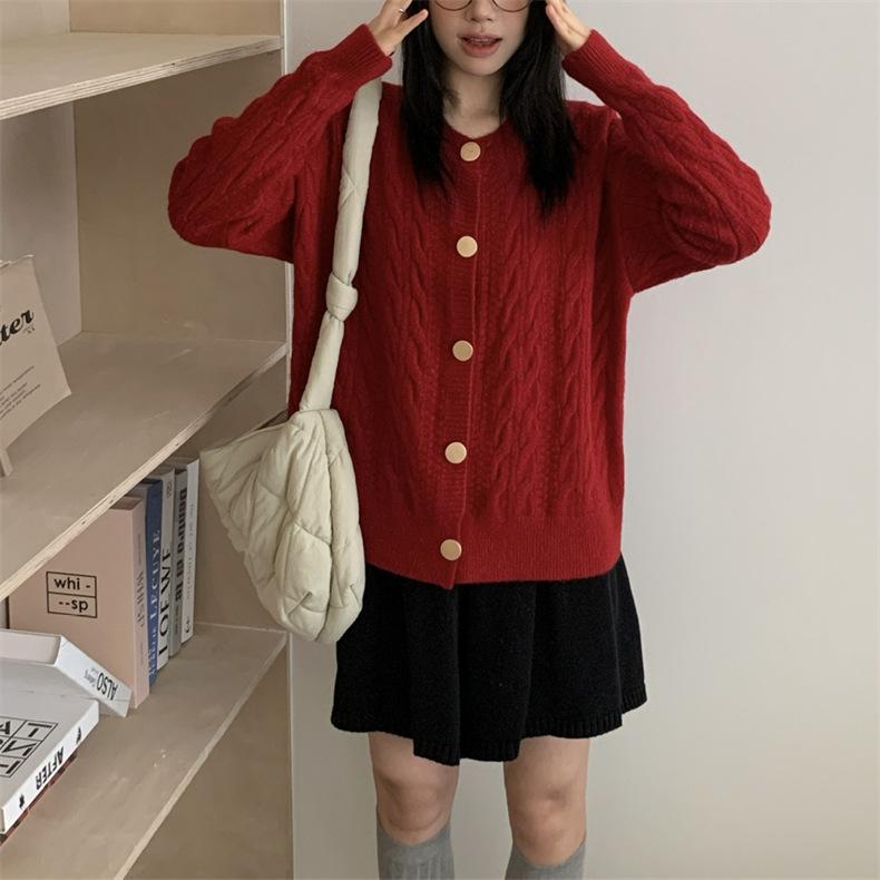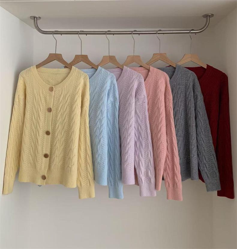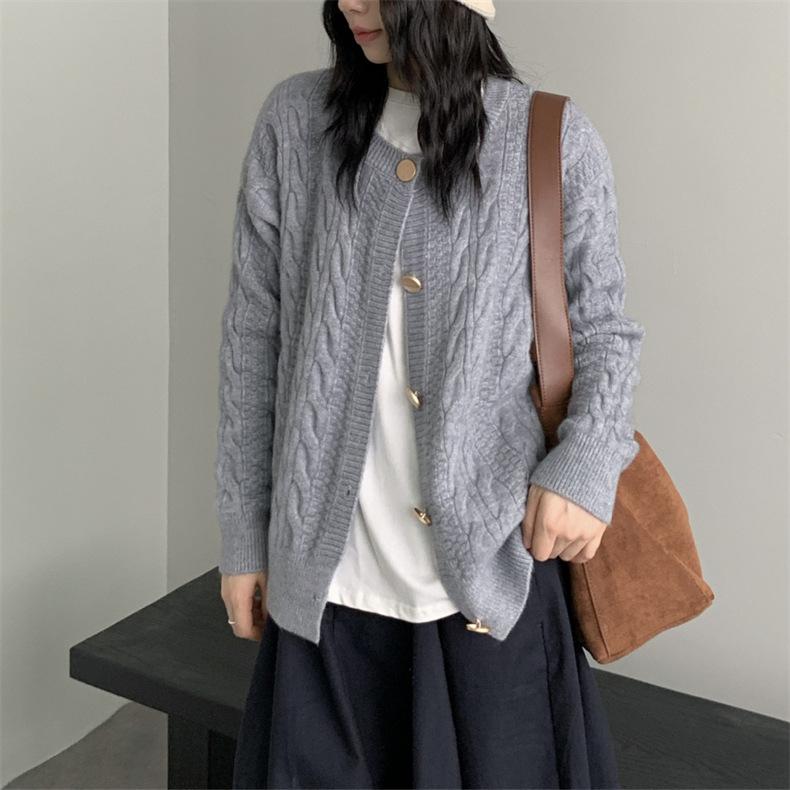 Nuevo Diseño para Mujer Cárdigan Tejido Chaqueta Suéter Holgado de Manga Larga con Torcido de Botonadura Sencilla Otoño e Invierno Top de Color Puro