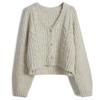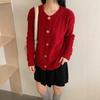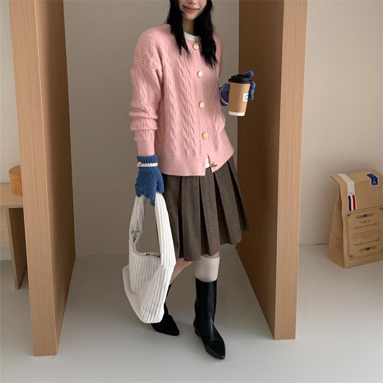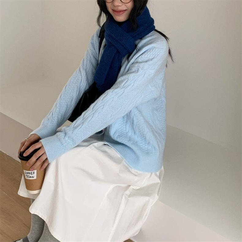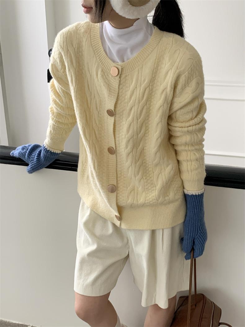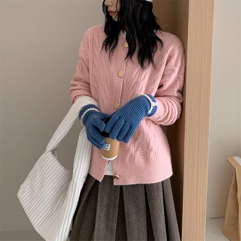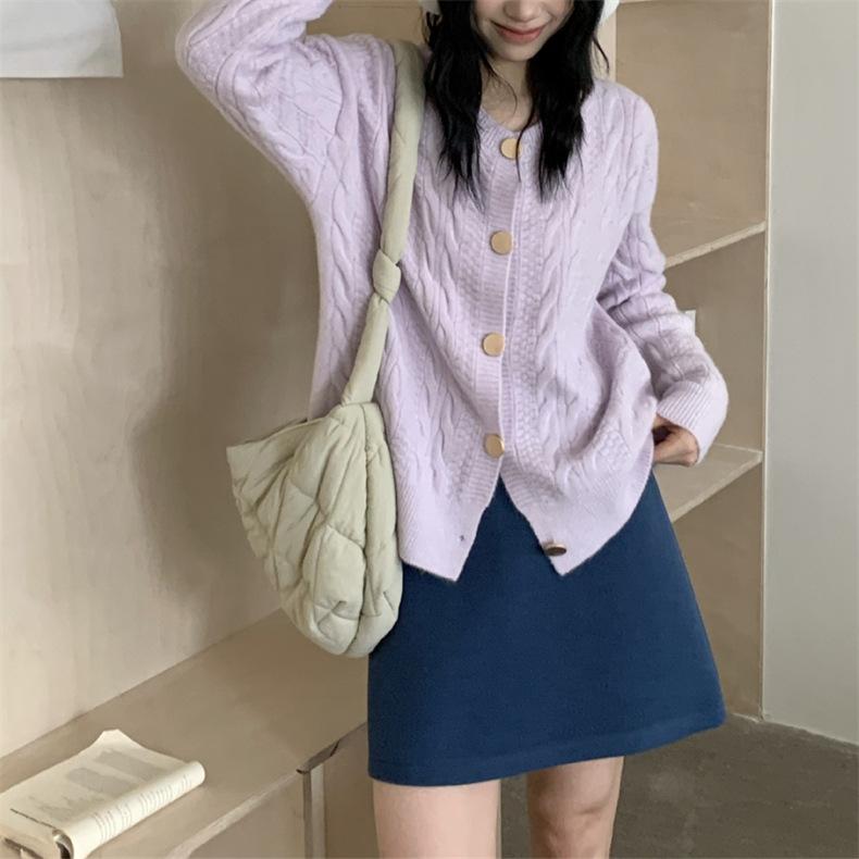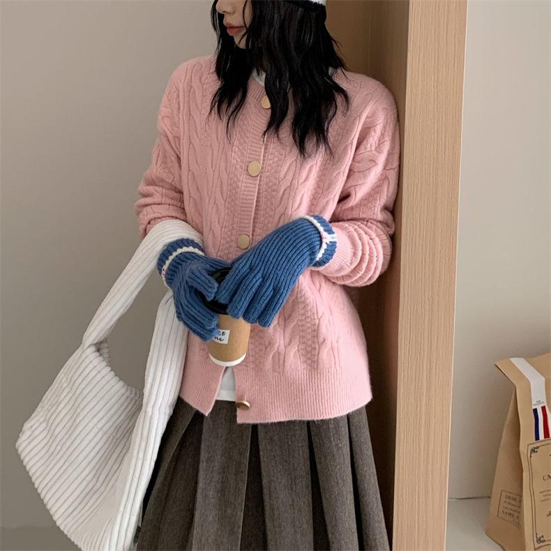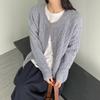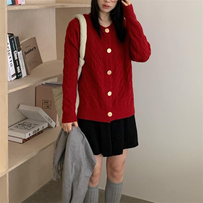 Nuevo Diseño para Mujer Cárdigan Tejido Chaqueta Suéter Holgado de Manga Larga con Torcido de Botonadura Sencilla Otoño e Invierno Top de Color Puro